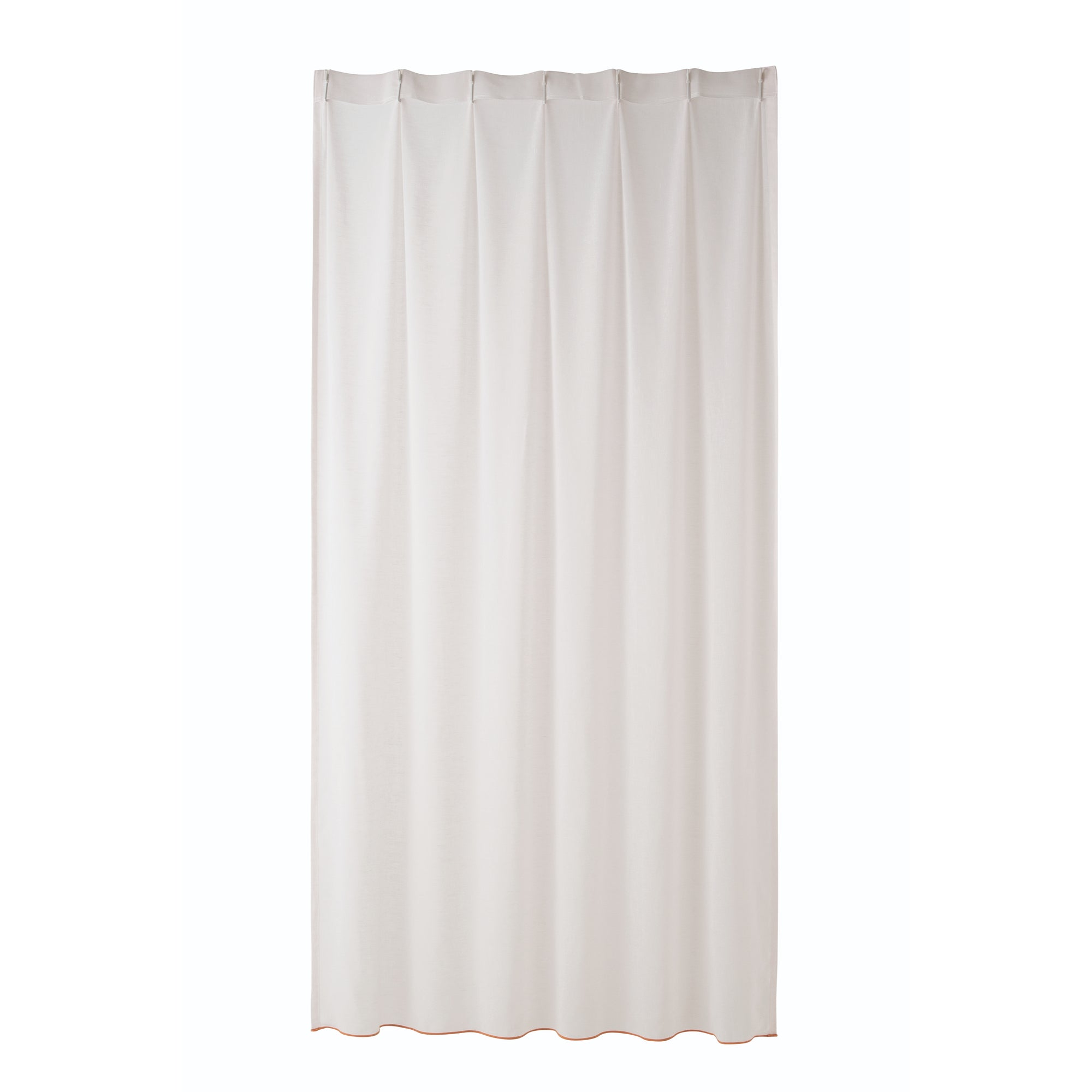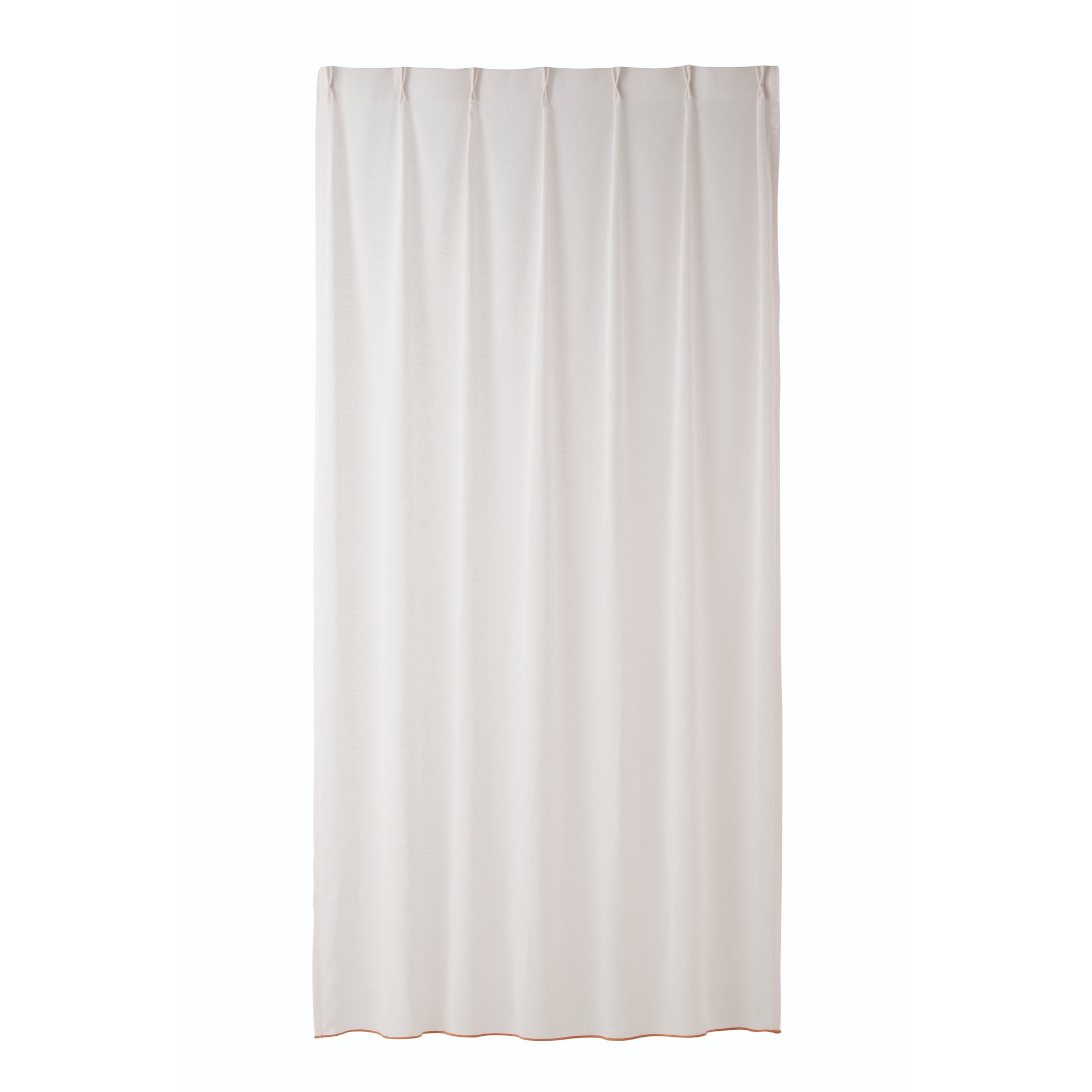 リネンライクな風合いの柔らかい生地のレースカーテンです。アクセントとして裾部分にパイピング加工を施し、ナチュラルにさりげないおしゃれをお楽しみいただけます。薄すぎず厚すぎない絶妙な透け感なので、差し込む光の自然な風合いをお楽しみください。裾のアクセントを生かして、少し床を引きずる「ブレイクスタイル」でトレンド感を演出できるサイズもご用意しています。ご自宅の窓に合うカーテンサイズから、約15~20cm長いサイズをお選びいただくのがおすすめです。※カーテンは全て1枚での販売です。2枚入りではございません。