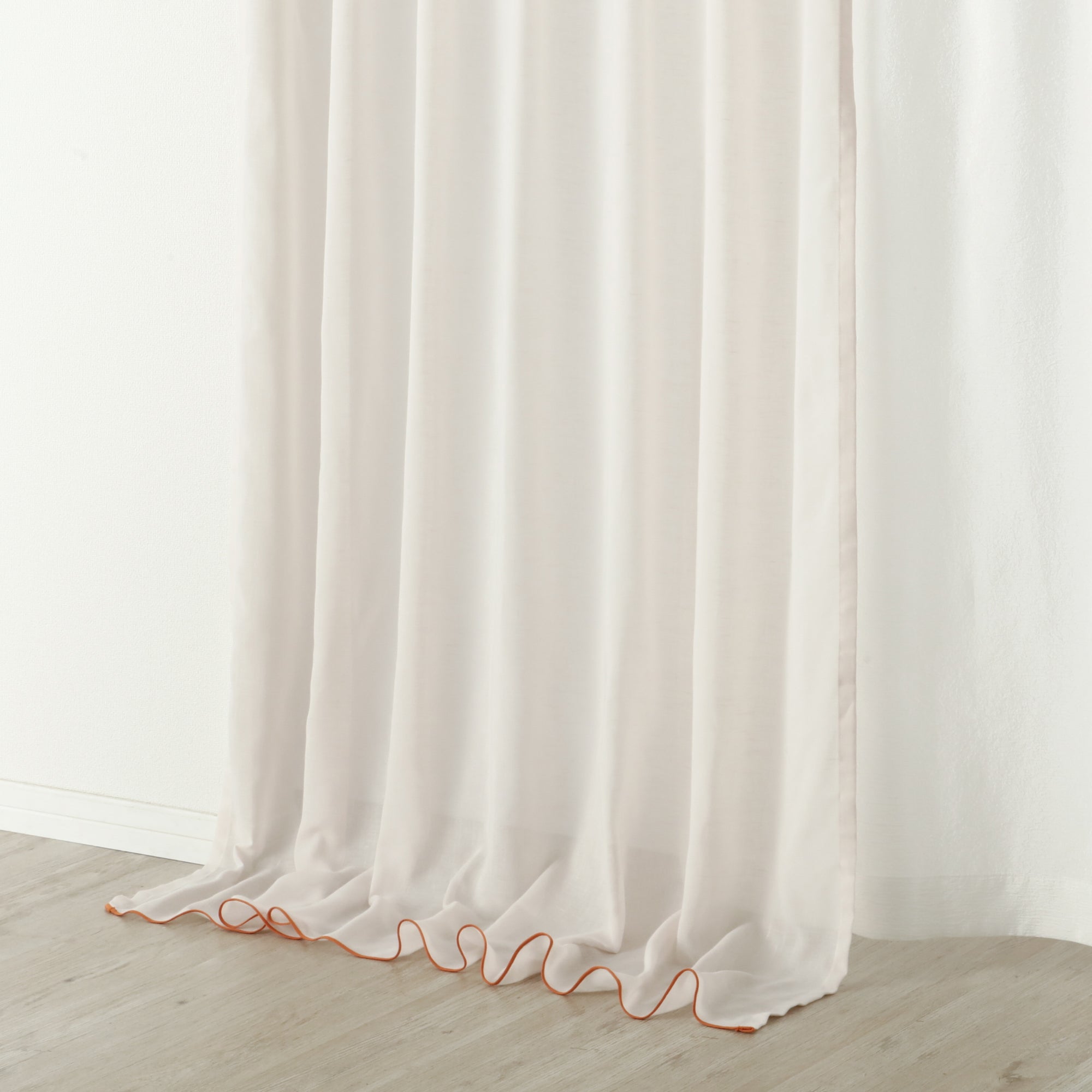 パイピングヘム レースカーテン H2150×W1000 ピンク×オレンジ