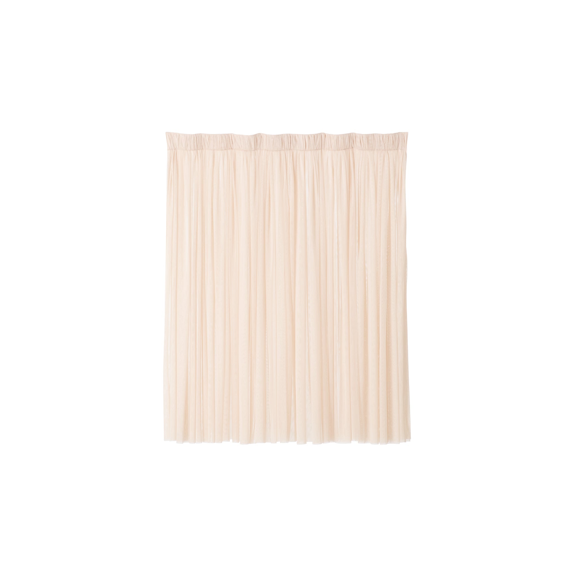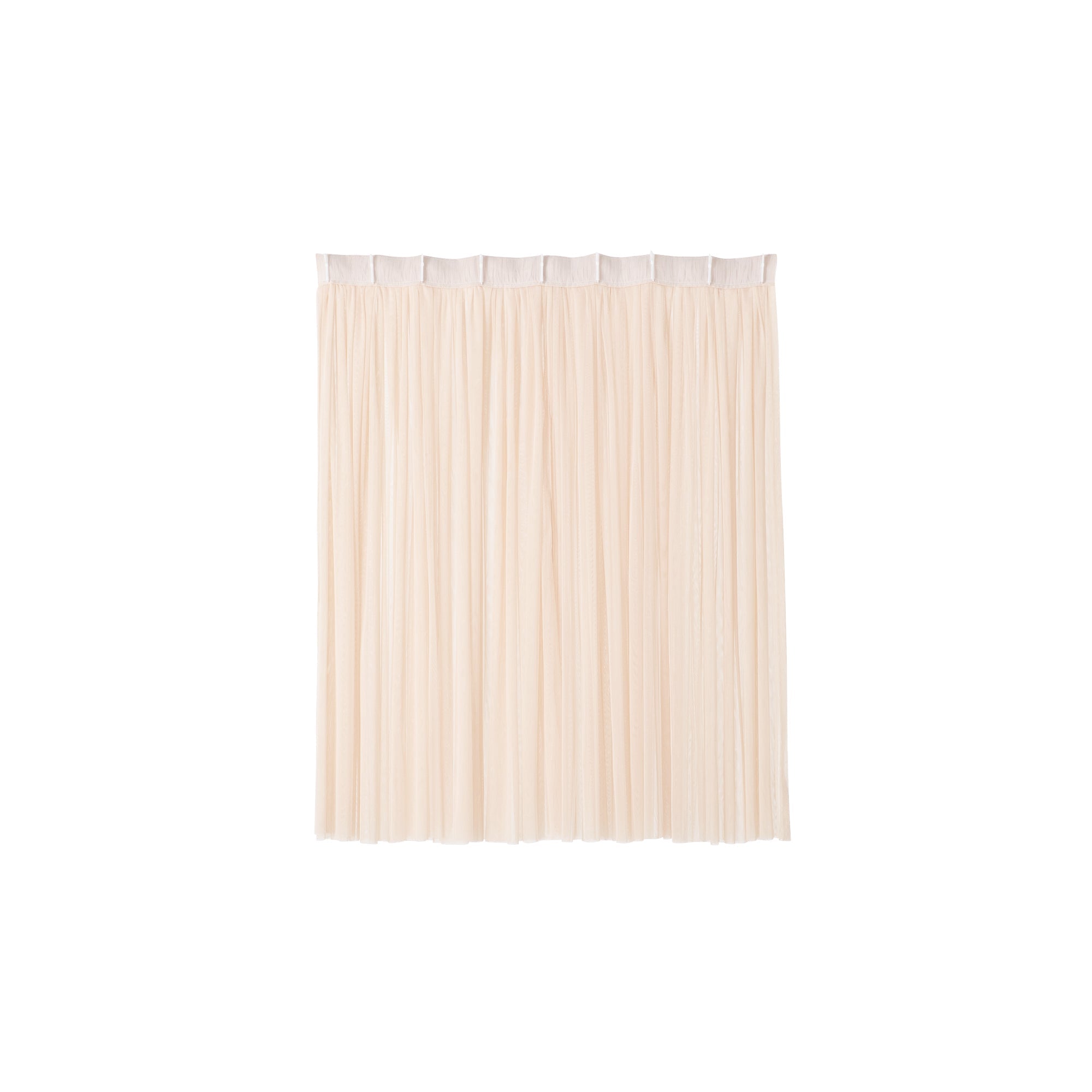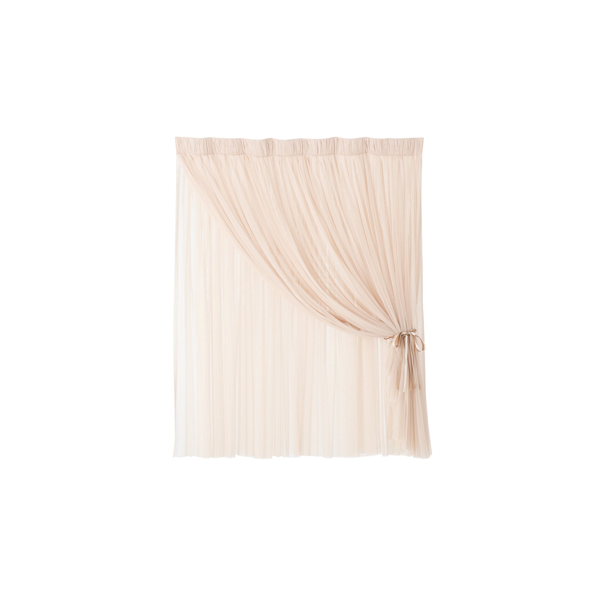 ボリュームたっぷりのチュールを2枚重ねにした、お部屋の主役になれるカーテンです。前後あわせて12mの生地を使用しているため、レース生地でありながら薄地のドレープと同程度のほどよい透け感が楽しめます。細い3本のリボンをタッセル仕様にして、エレガントにもスウィートにもコーディネートできるアイテムに仕上げました。二重縫製の作りを活かし、手前側のチュールだけをリボンでまとめると新たな表情が楽しめます。※カーテンは全て1枚での販売です。2枚入りではございません。