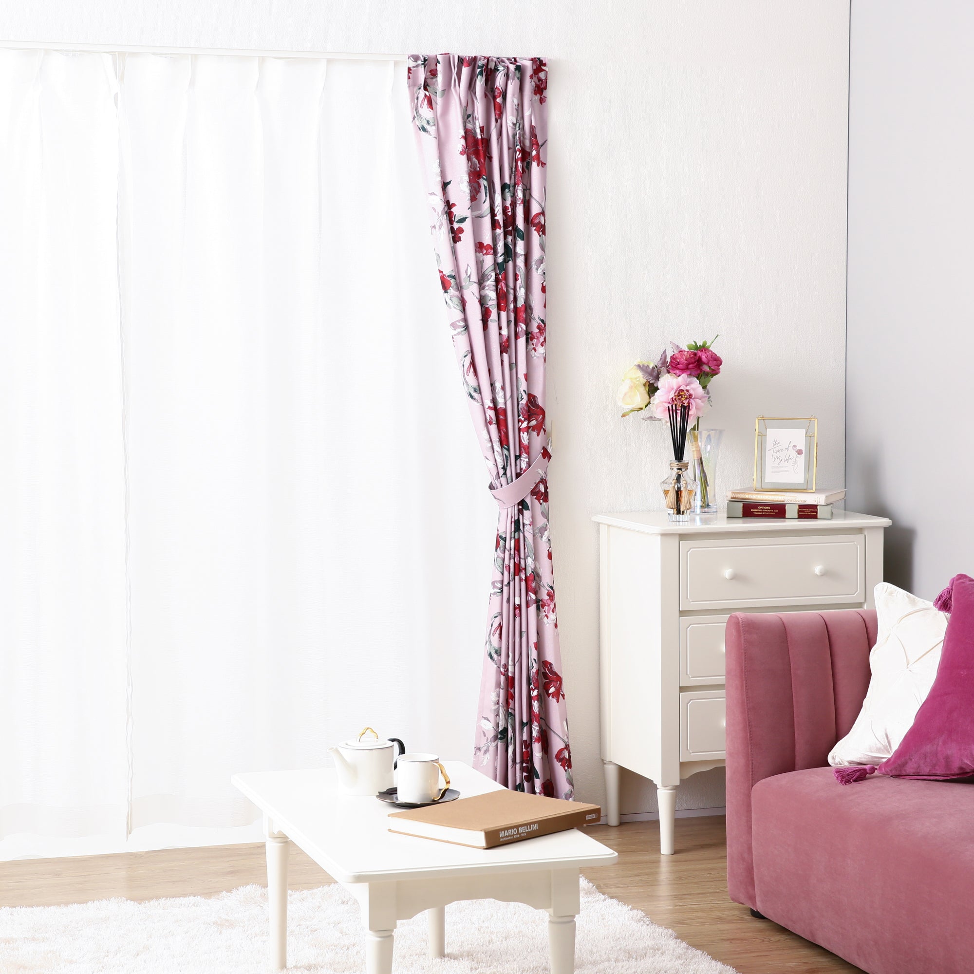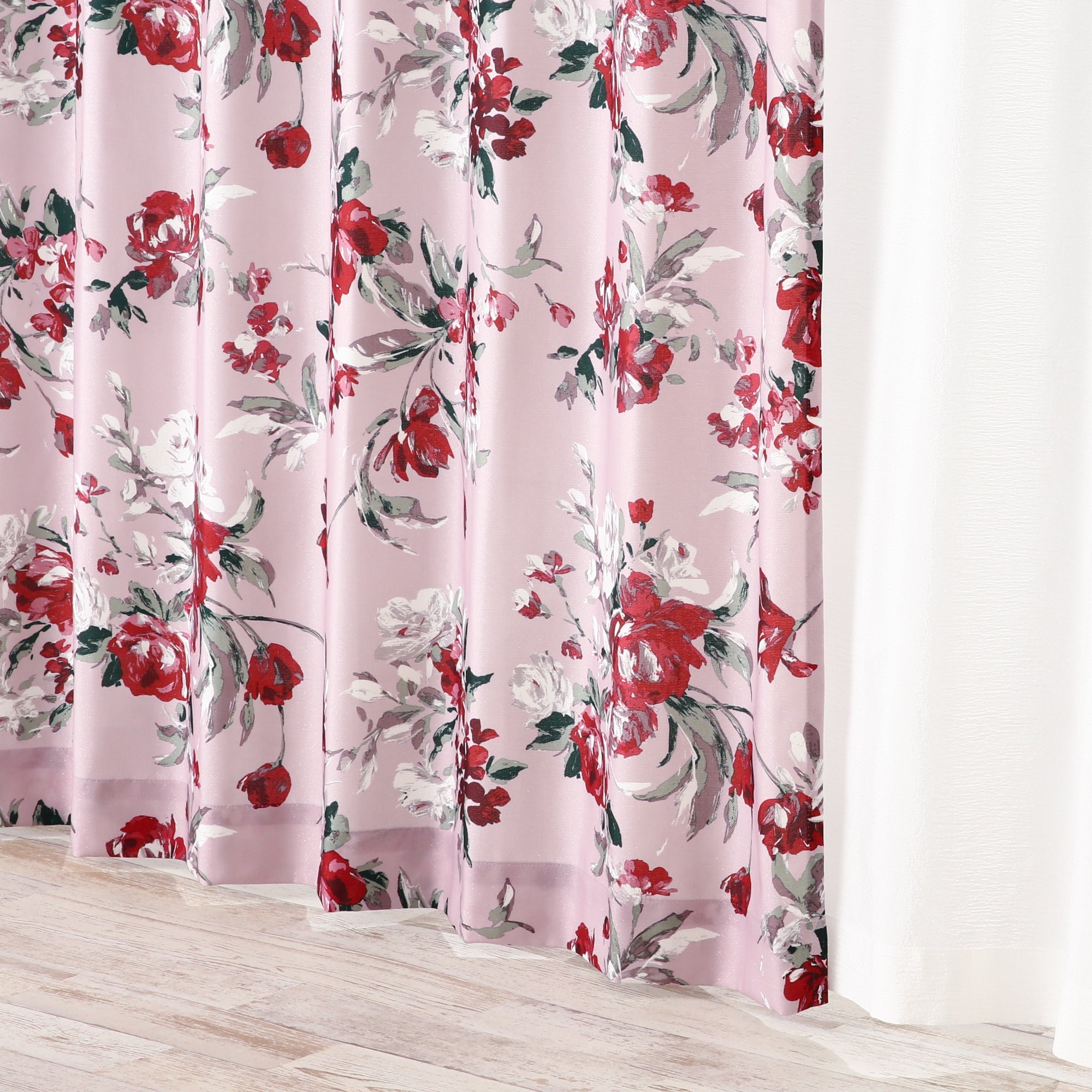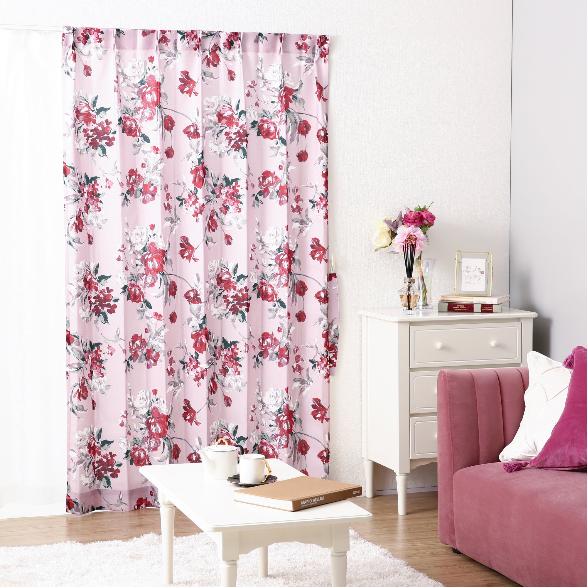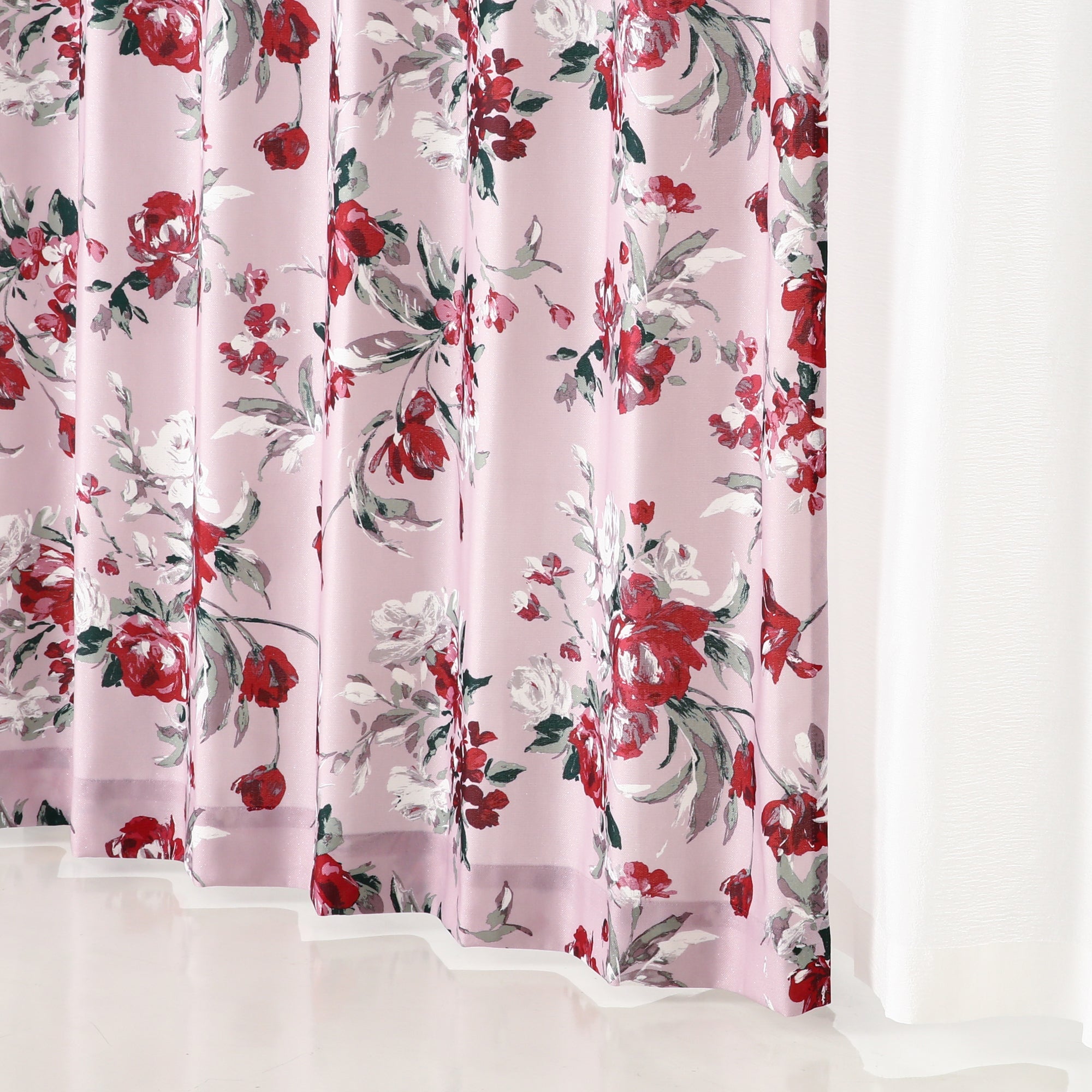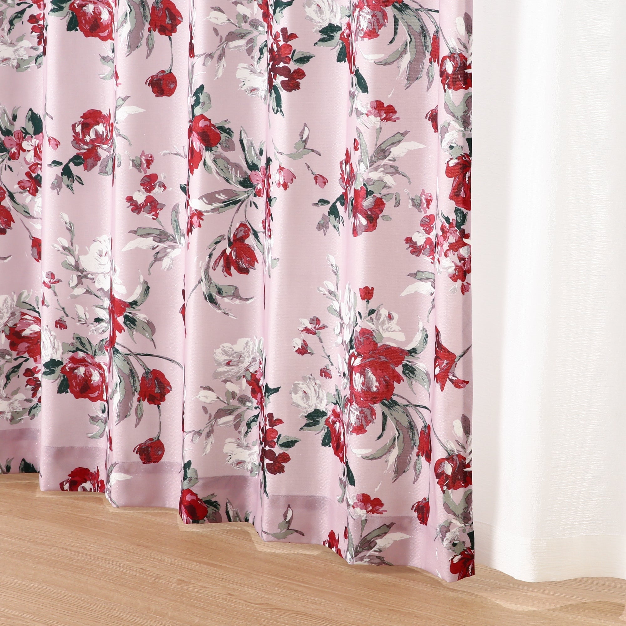 華やかなローズ柄をプリントしたドレープカーテンです。ピンクベースの生地にラメ糸のアクセントをあしらい、色鮮やかなローズ柄のインクジェットプリントを施しました。空間に色彩をプラスしてくれる心躍るアイテムです。※カーテンは全て1枚での販売です。2枚入りではございません。