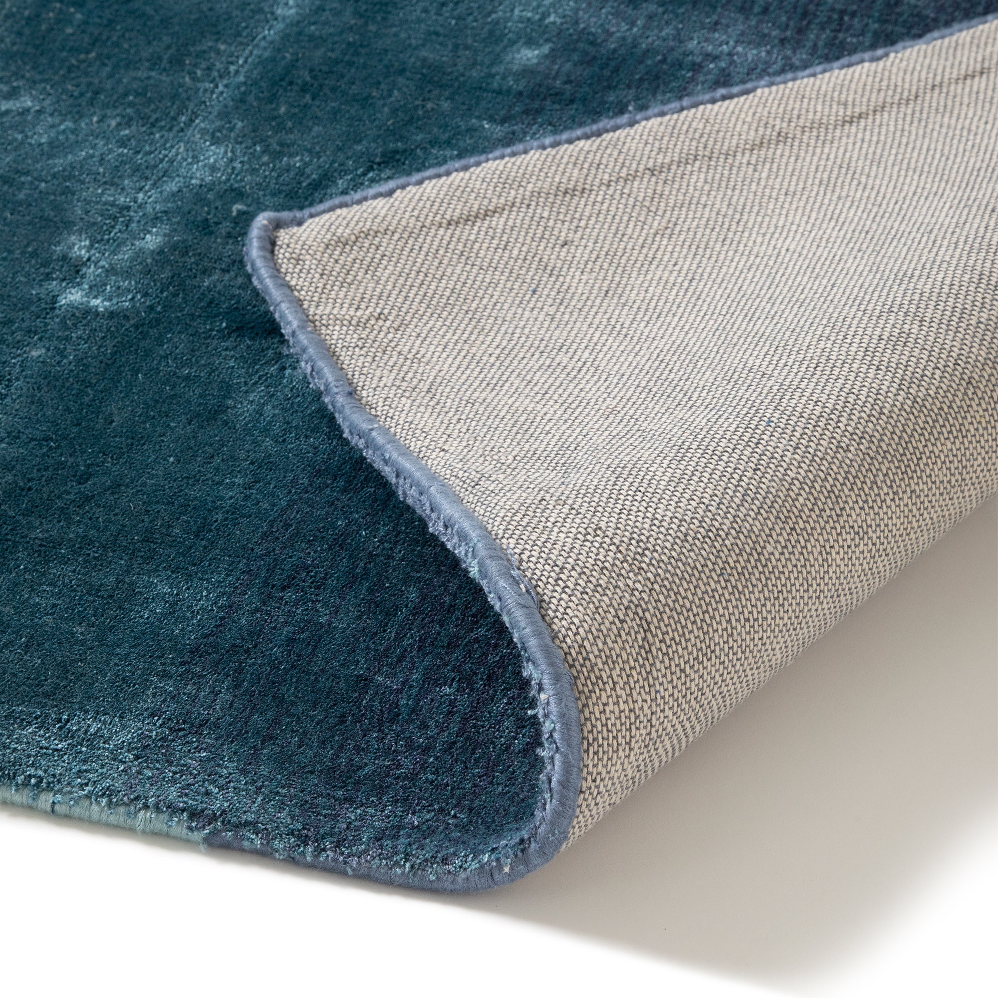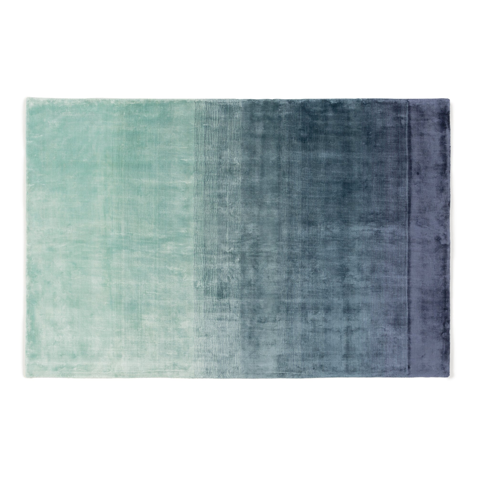 人気のエリージャラグの新色です。色鮮やかなブルーのグラデーションが夏らしい爽やかな印象のラグです。ビスコース素材100%使用のため、上品な光沢感があり、高級感のある仕上がりです。サラサラとしたさわり心地が特徴的で、触れるとひんやりするので暑い季節でも気持ちよくお過ごしいただけます。