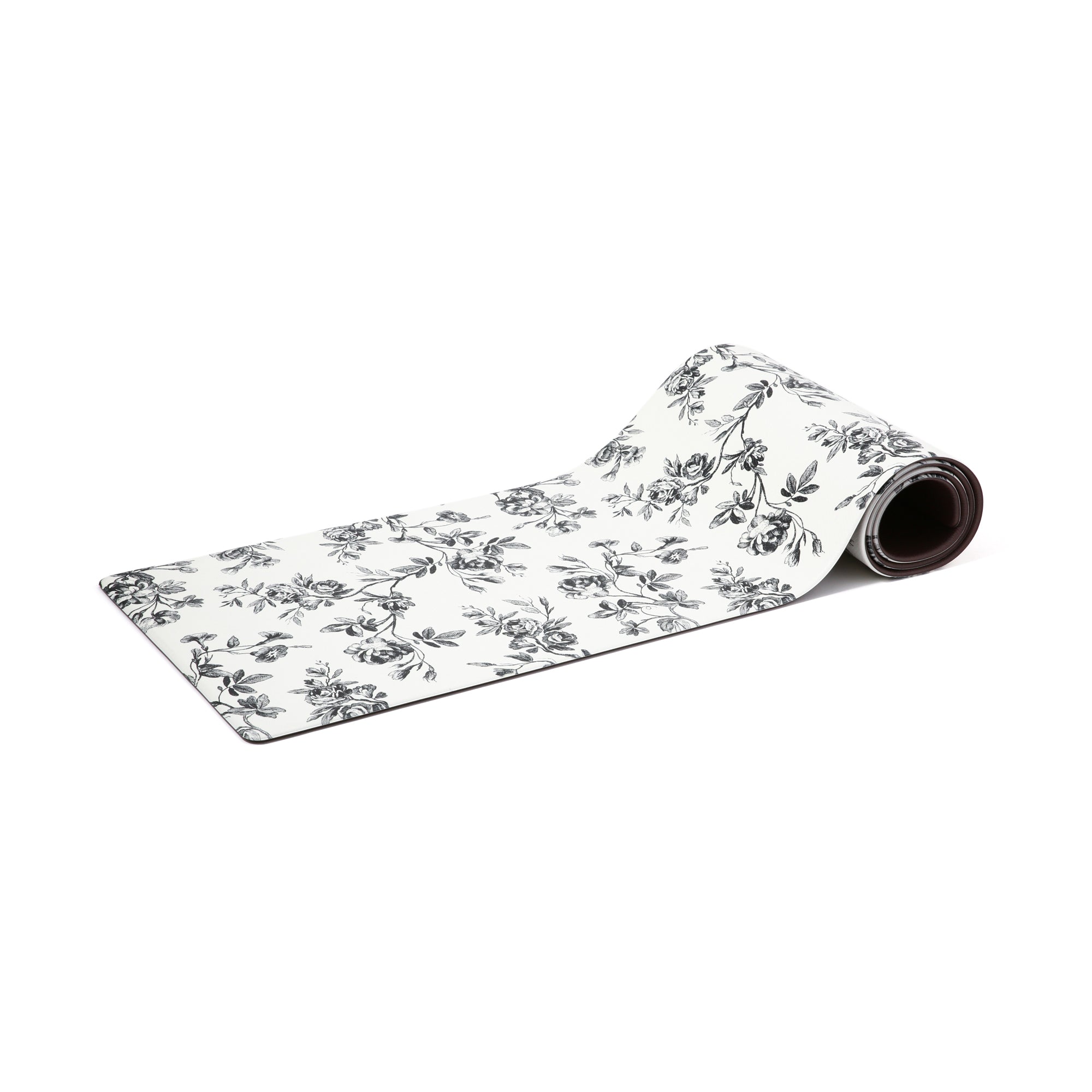 PVCキッチンマット クラシックフラワー L ブラック