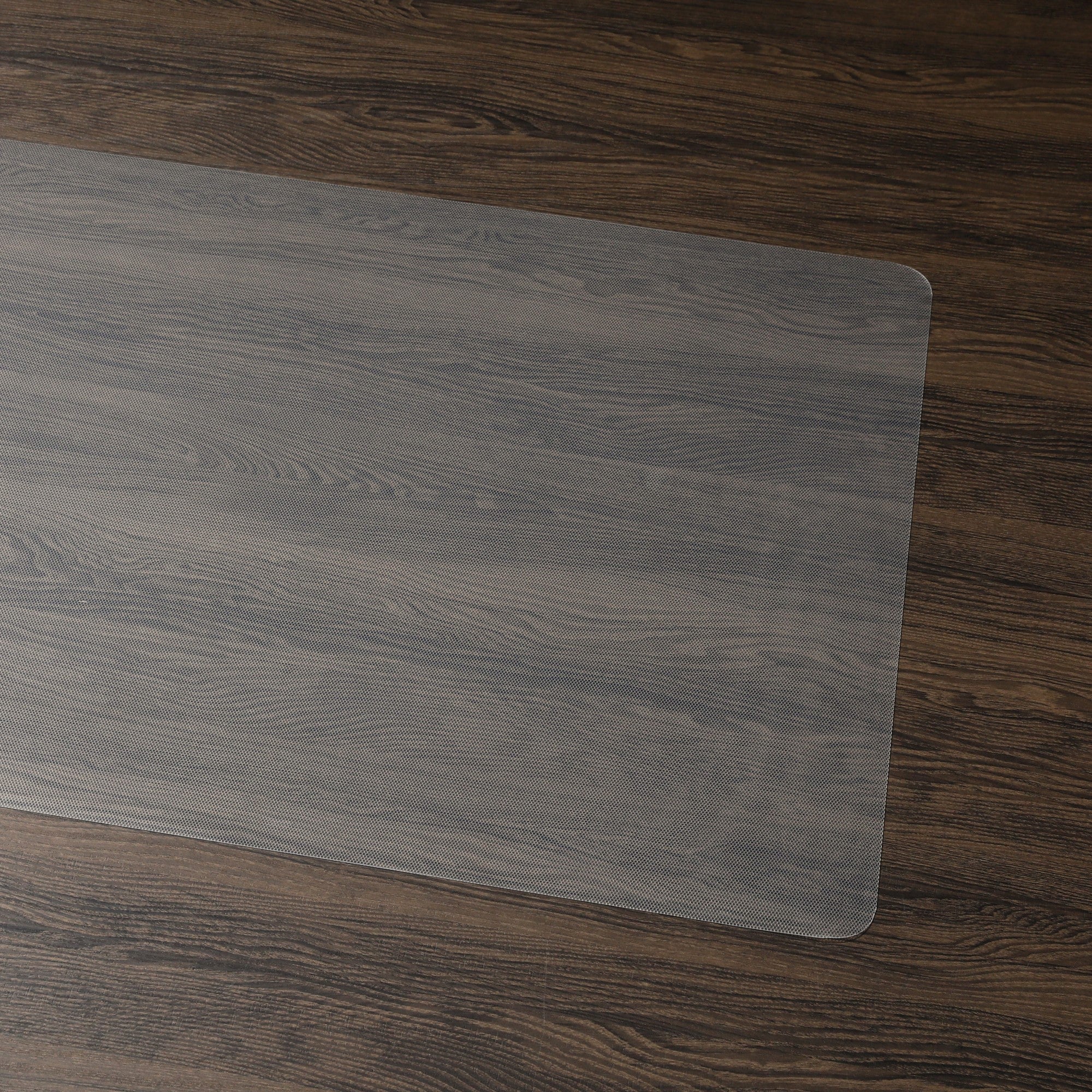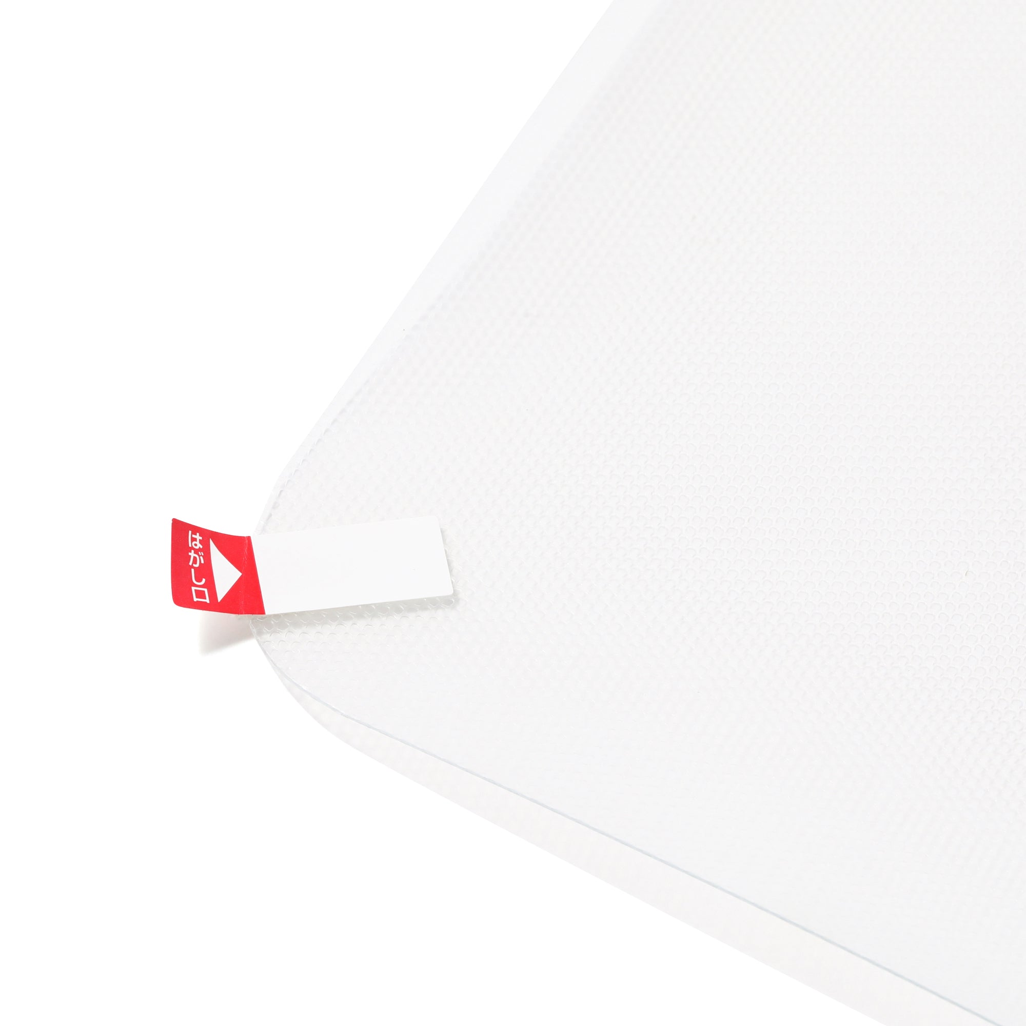 防水仕様の貼ってはがせる透明のキッチンマットです。裏面微粘着加工のため、ズレが気にならないのも嬉しいポイントです。薄いので躓く心配がなく、お掃除ロボットも使用できます。カットすれば設置する場所によってサイズ調整が出来る優れもの。