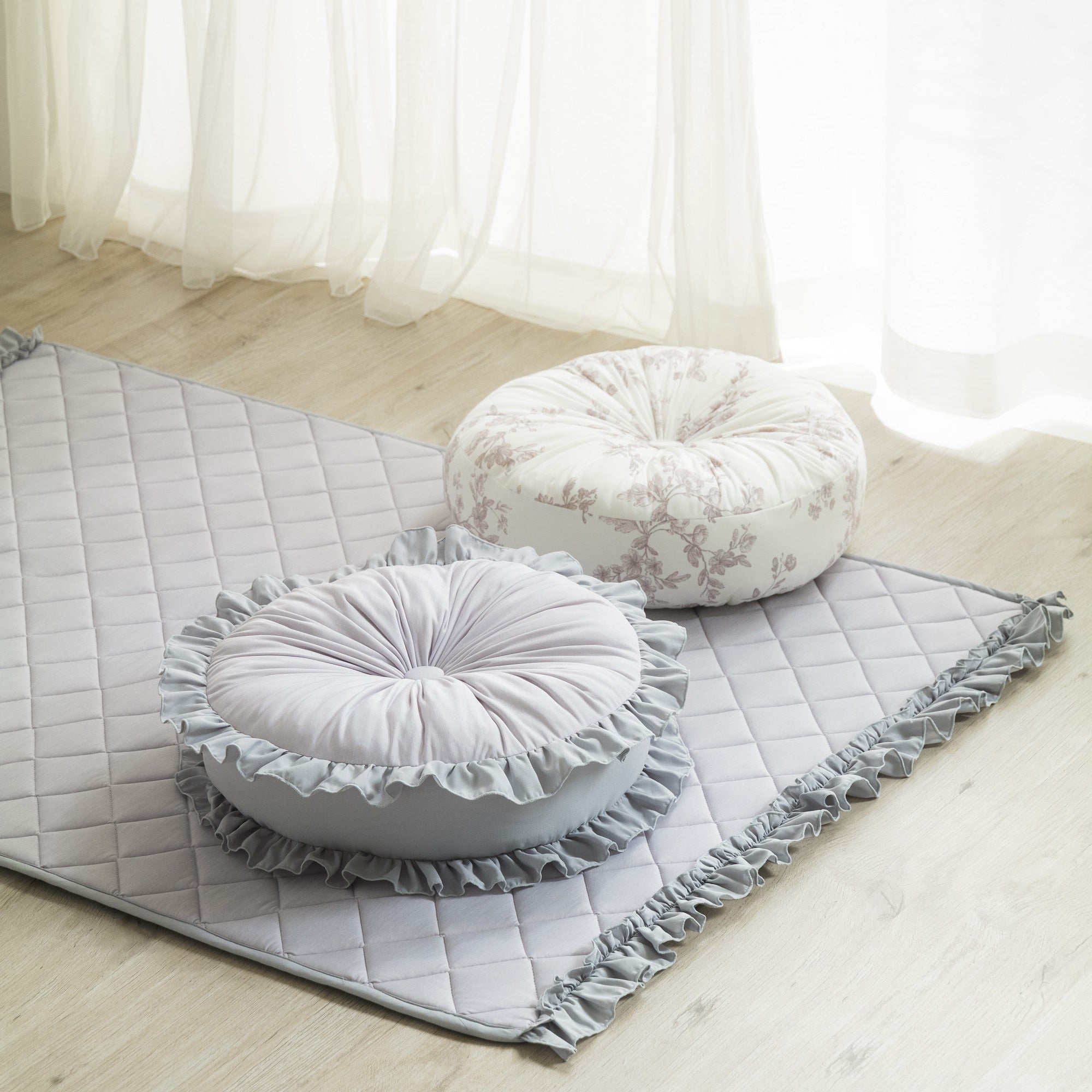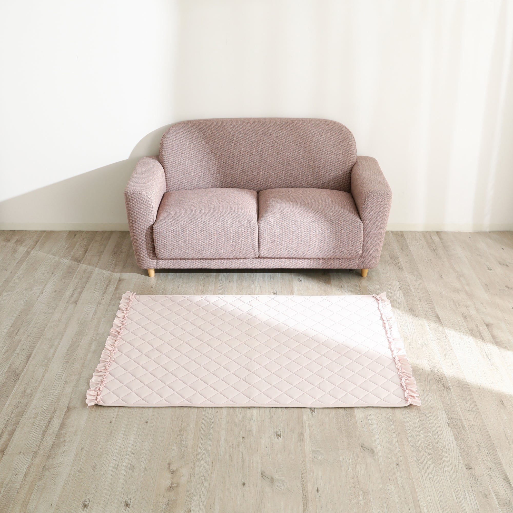 Francfrancらしさたっぷりの可愛らしいデザインにひんやり効果をプラスした冷感ラグです。フリルをふんだんにあしらったスイートなデザインで、華やかさを大切にしたい方におすすめ。どんなお部屋にも合わせやすいシンプルなカラーリングはインテリアを選ばず、さらりとした心地よい手触りとひんやり感で夏のお部屋時間を心地よく演出します。さらりとした質感が気持ちよく、接触冷感素材のひんやり度を示すQ-MAX値は0.34。かわいいデザインと十分なひんやり感の両立を実現しました。薄手で軽いので敷いたり、仕舞ったりも楽々。140×100cmの小さめのサイズ感でひとり暮らしのお部屋にはもちろん、ベッドサイドや書斎などでお使いいただくのもおすすめです。裏には滑り止め加工を施しているので安心してお使いいただけ、おうちでお洗濯ができるのも嬉しいポイント。汗ばむ季節もお手入れしやすく、いつでも快適にお使いいただけます。S、M、Lサイズと豊富なサイズ展開でお部屋の広さに合わせてお選びいただけます。人気の接触冷感寝具シリーズ「ふわろ」や同じ「ひんやり」シリーズのクッションとのコーディネートもおすすめ。暑い夏をひんやり快適にお過ごしください。