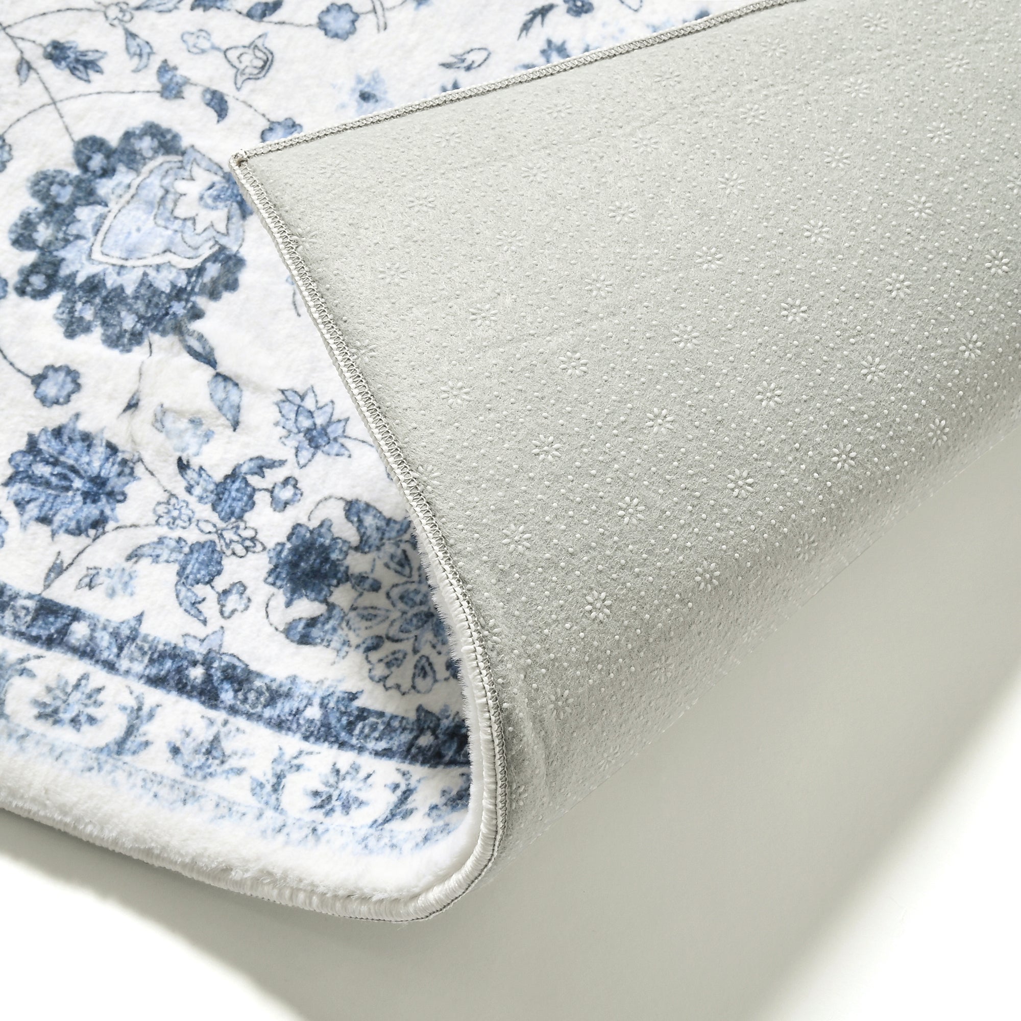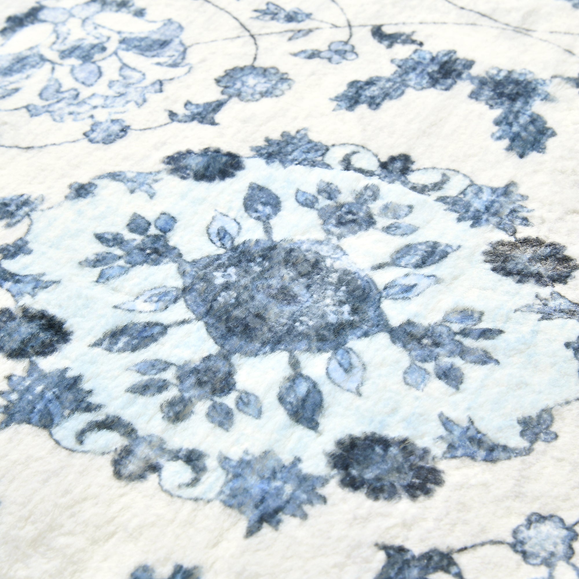 滑らかな手触りのリッチなファー素材に鮮やかなプリントを施したラグです。毛足1cm/目付650gの密度あるファー+低反発ウレタン1.5cmの構造で、ふわふわもっちり気持ちのよい踏み心地です。インテリアの主役になるような存在感のあるプリントを3パターンご用意しています。「ブルーアラベスク」は繊細なアラベスク模様をブルーのカラーリングでプリントしました。ナチュラルインテリアにも韓国風インテリアにも合わせやすい柄です。