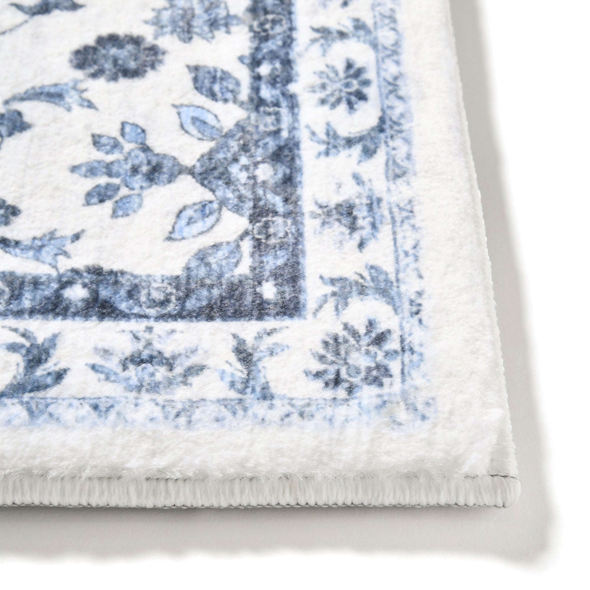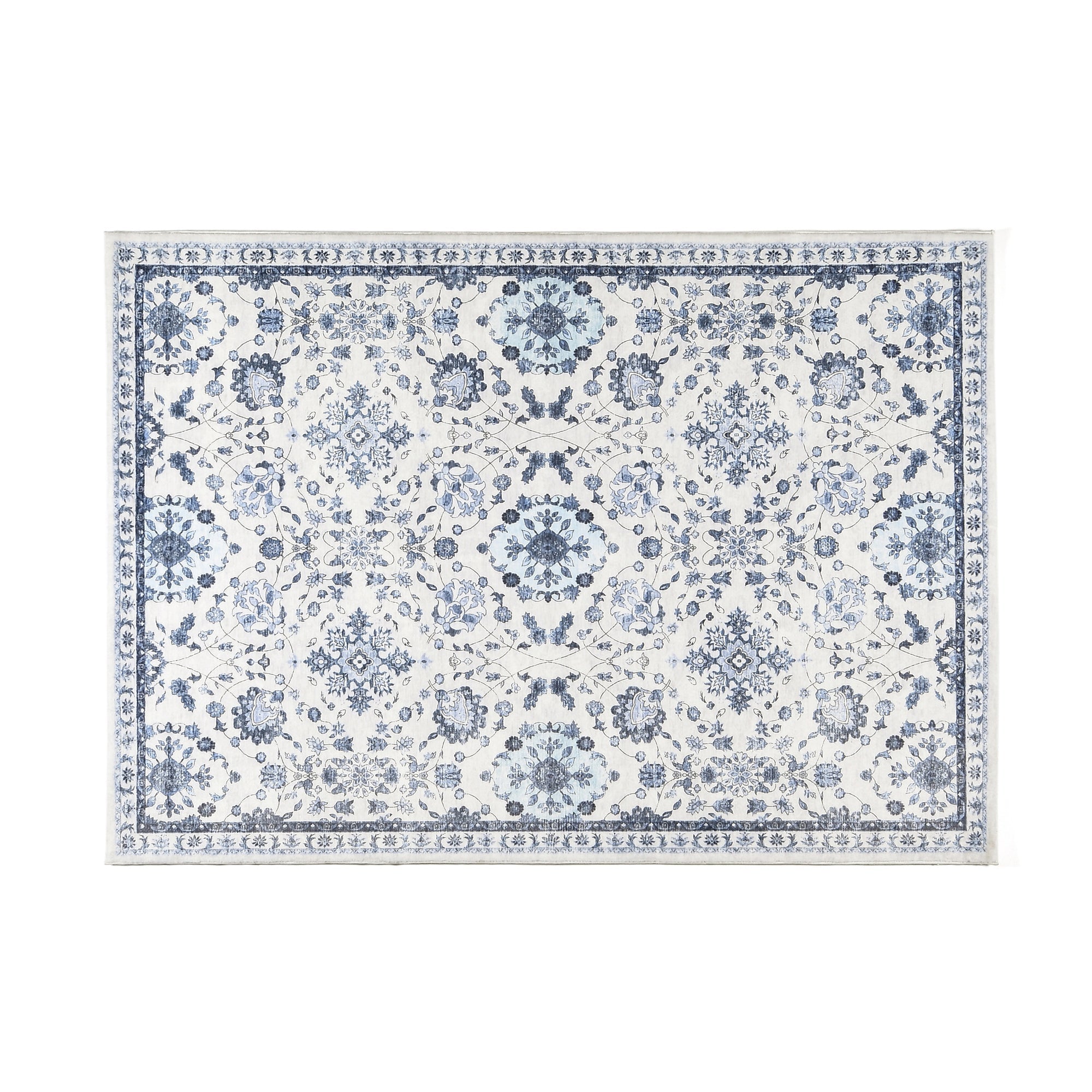 リッチファープリントラグ ブルーアラベスク M 2000×1400 ブルー