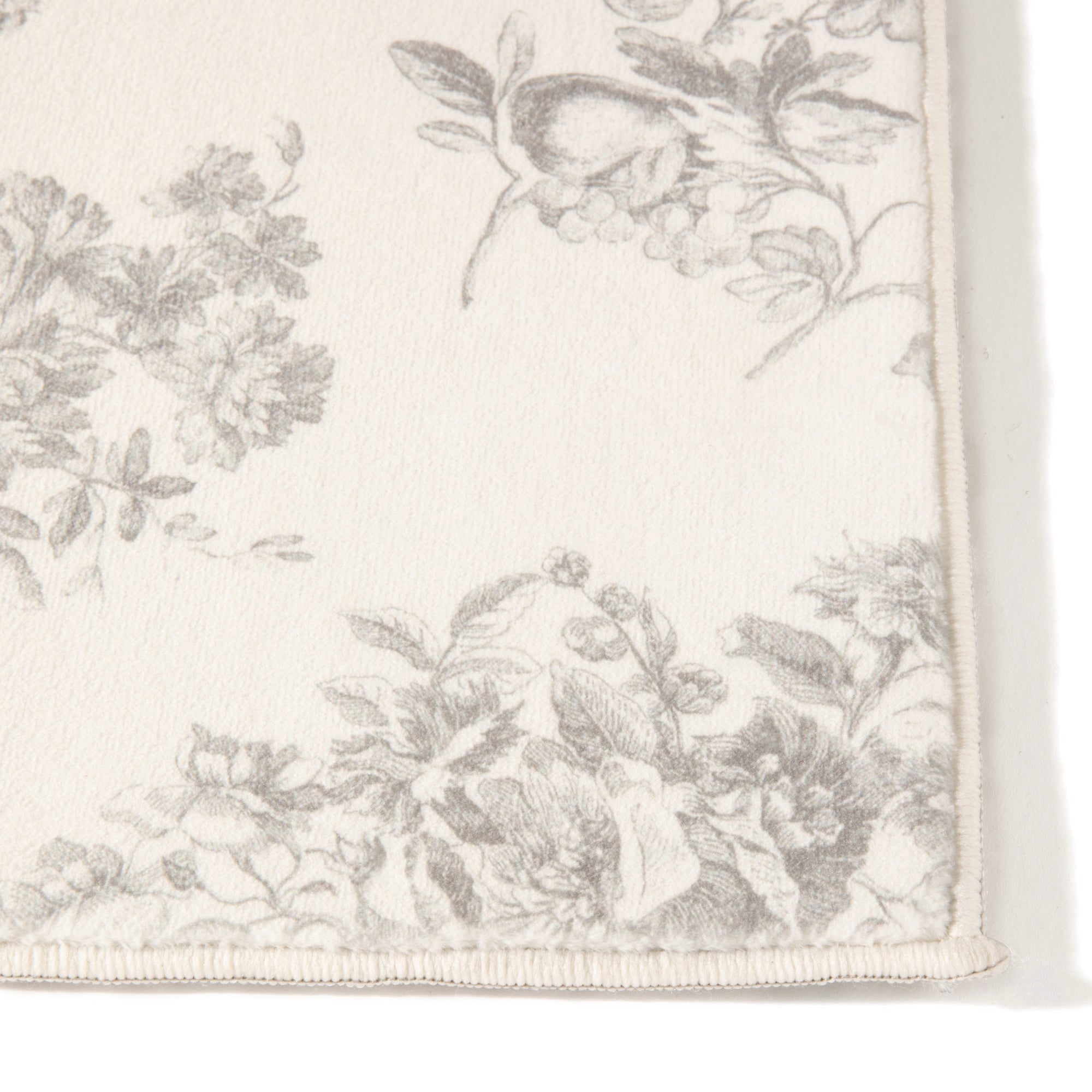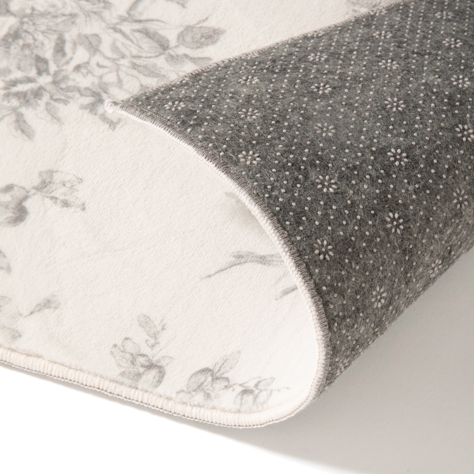 カシミヤタッチの柔らかな素材にプリントを施したデザインマットです。お求めになりやすい価格で、上質な肌ざわりを実現しました。クラシカルなお花をモノトーンで大きくプリントし、大判柄ながら柔らかなグレートーンでお部屋に合わせやすいデザインに仕上げました。薄めで軽いので敷いたり、仕舞ったりもラクラク。80×50cmサイズで玄関やベッドサイドでお使いいただくのがおすすめです。裏には滑り止め加工を施しているので安心してお使いいただけ、おうちでお洗濯ができるのも嬉しいポイントです。柄・サイズ違いも豊富なのでお部屋のテイストや広さにあわせてお選びいただけます。