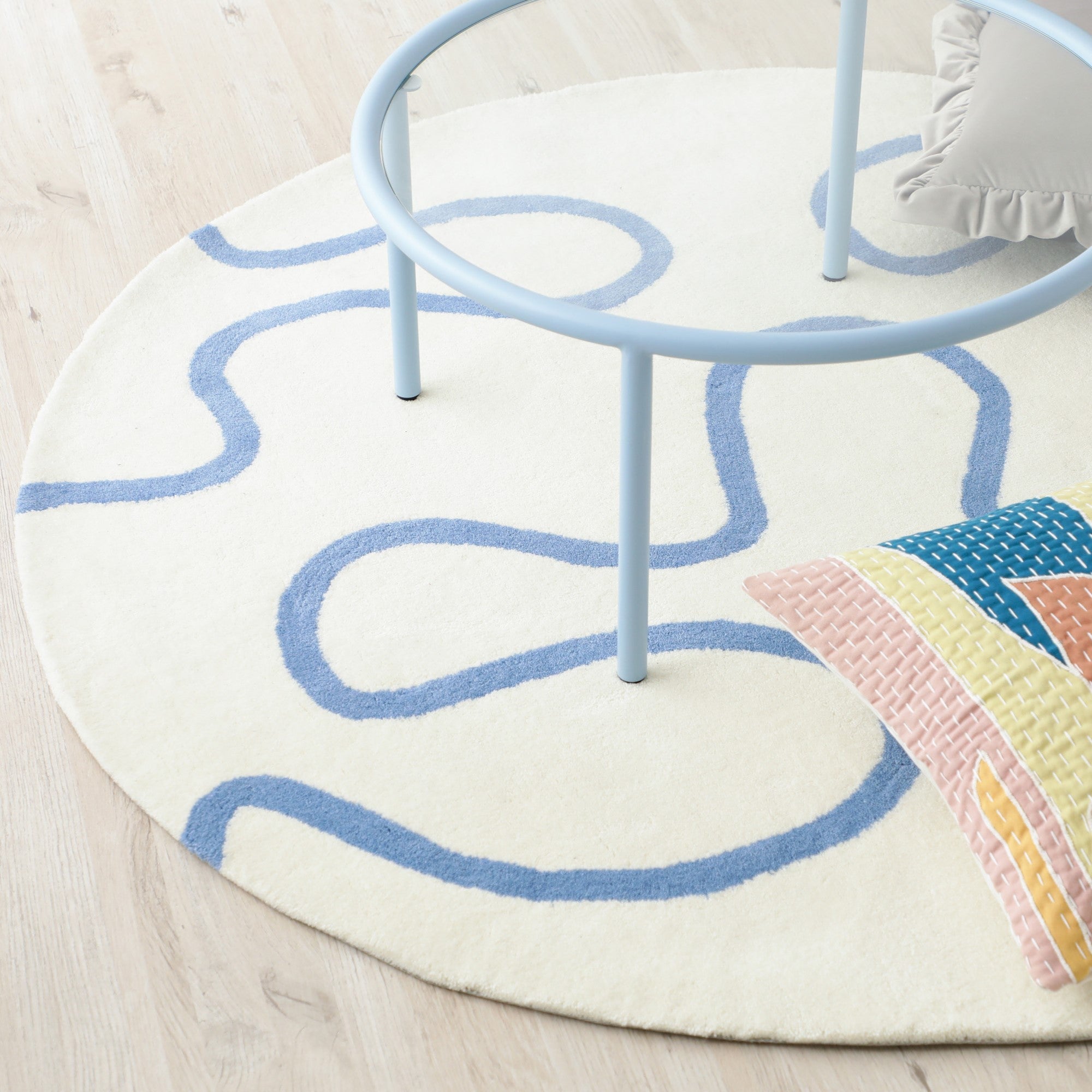 ワンダー ラグ ラウンド Φ1500 アイボリー×ブルー