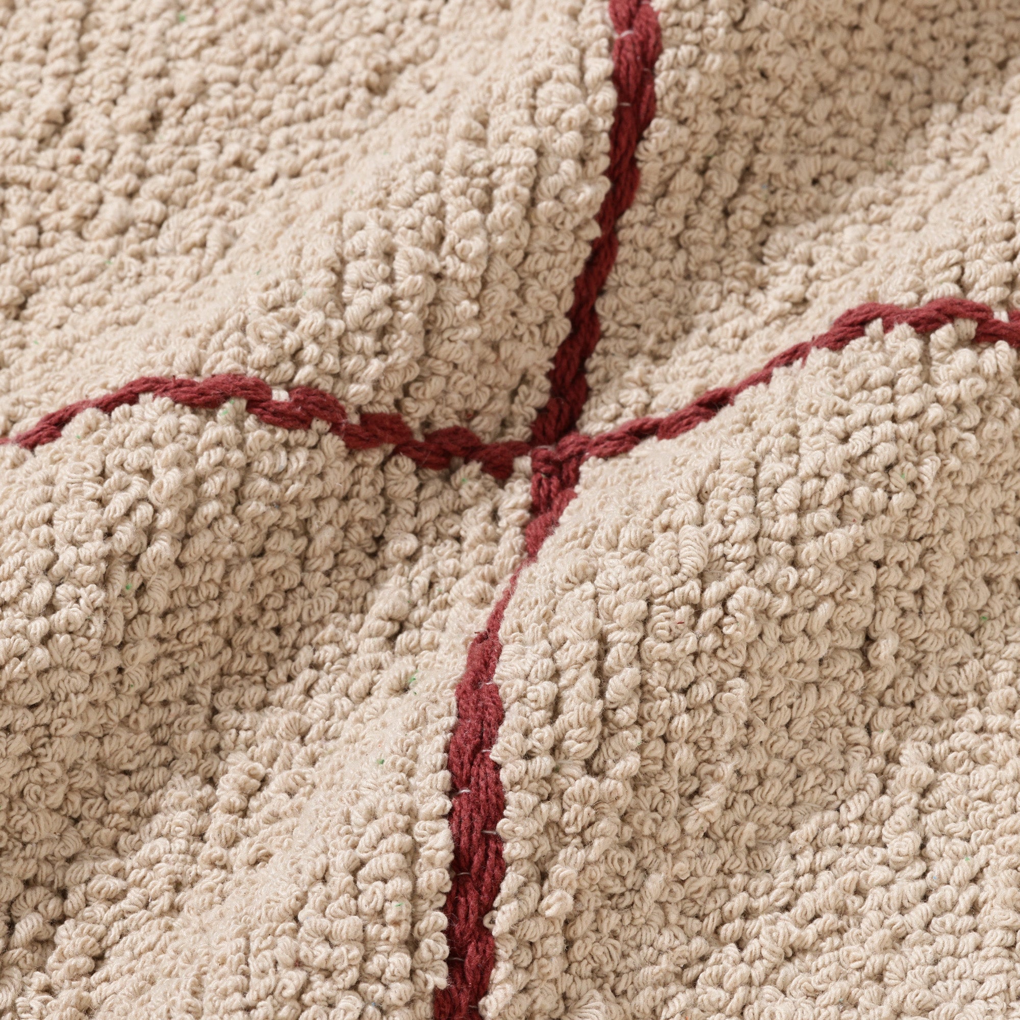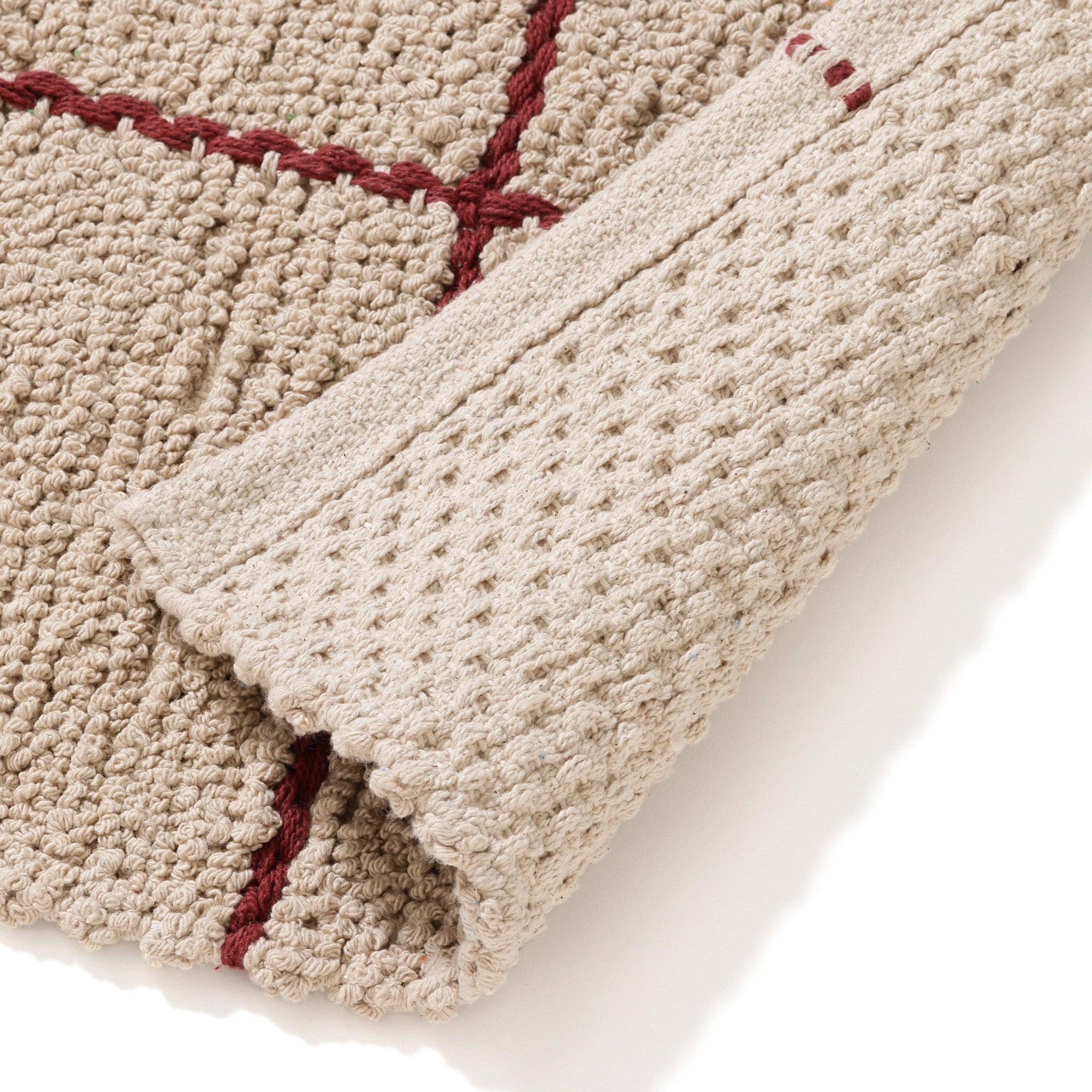 ブークレ調の風合いがトレンドライクなコットンラグです。ウィンドウペン柄がほどよくアクセントになったデザインになっています。カラフルなインテリアにも落ち着いたモダンなインテリアにも合わせやすい配色です。ベージュカラーは汚れが目立ちにくいのも嬉しいポイントです。裏地がないため軽く、折りたたんでコンパクトに収納できます。