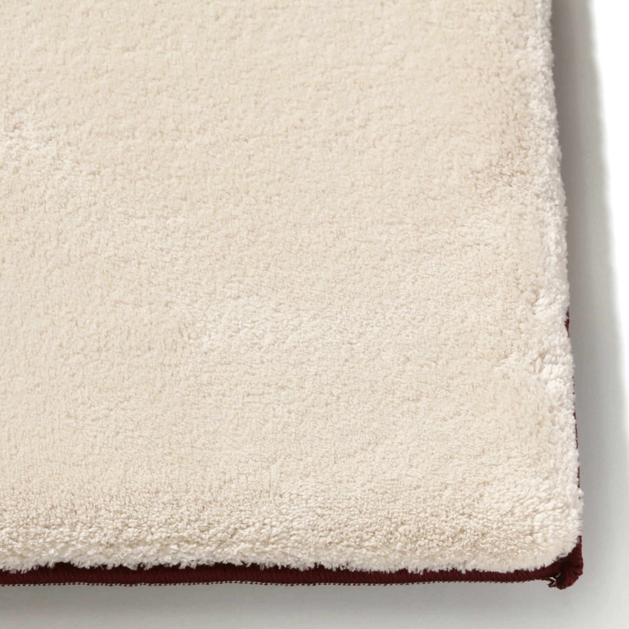 パイピングに本体と別の色を配色しアクセントを加えた、シンプルだけど程よい遊び心のあるデザインのラグです。密度感のあるマイクロファイバー素材を使用し、20mm厚のウレタンと組み合わせる事で、手触りの気持ちよさと座り心地のよさを兼ね備えています。短毛なのでお手入れがしやすく、裏面には滑り止め加工が施されているのも嬉しいポイント。無地ライクなので、様々なシーン、テイストのコーディネートが可能です。本体とエッジがバイカラーである要素や4配色から選べること、インテリアをより素敵に引き立てるラグという意味を込め、フランス語で「カラフル・生き生きとした」という意味がある「コロレ(=colore)」と名付けました。