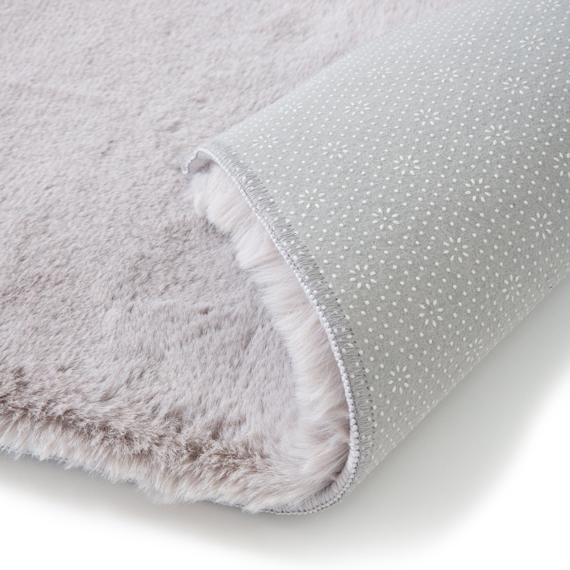 ふかふかでボリューム感のあるフェイクファーのラグです。ふわっと滑らかなラビットファーのような触り心地が気持ち良い素材感です。しっかりと目付を付ける事で、ふんわりとボリューム感を持たせました。単色で上品な色味のため、コーディネートしやすくお部屋に取り入れやすいデザインです。優しい色味のグレーがお部屋を柔らかい雰囲気にしてくれます。ずっと触っていたくなるようなふわふわの感触がたまらないラグマットです。裏面の材質も軽く、持ち運びや収納時にも便利。ホットカーペットにもお使いいただけて、手洗いも可能なので長くご愛用いただける商品となっております。