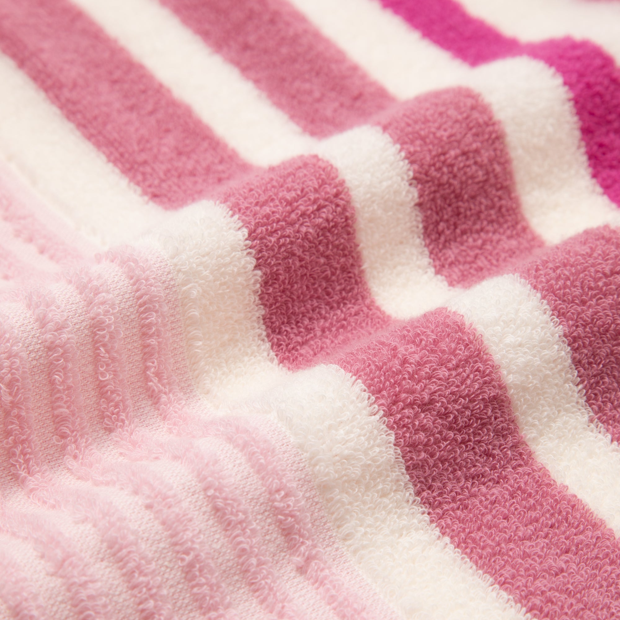 夏の暑い時期にぴったりなタオル生地が気持ちいいタオルケットです。表面は立体感があるパイルのストライプが見た目にも楽しく、それでいてパイル部分は少なめなので涼しげに見えます。お洗濯ができるので、いつでも清潔にお使いいただけます。