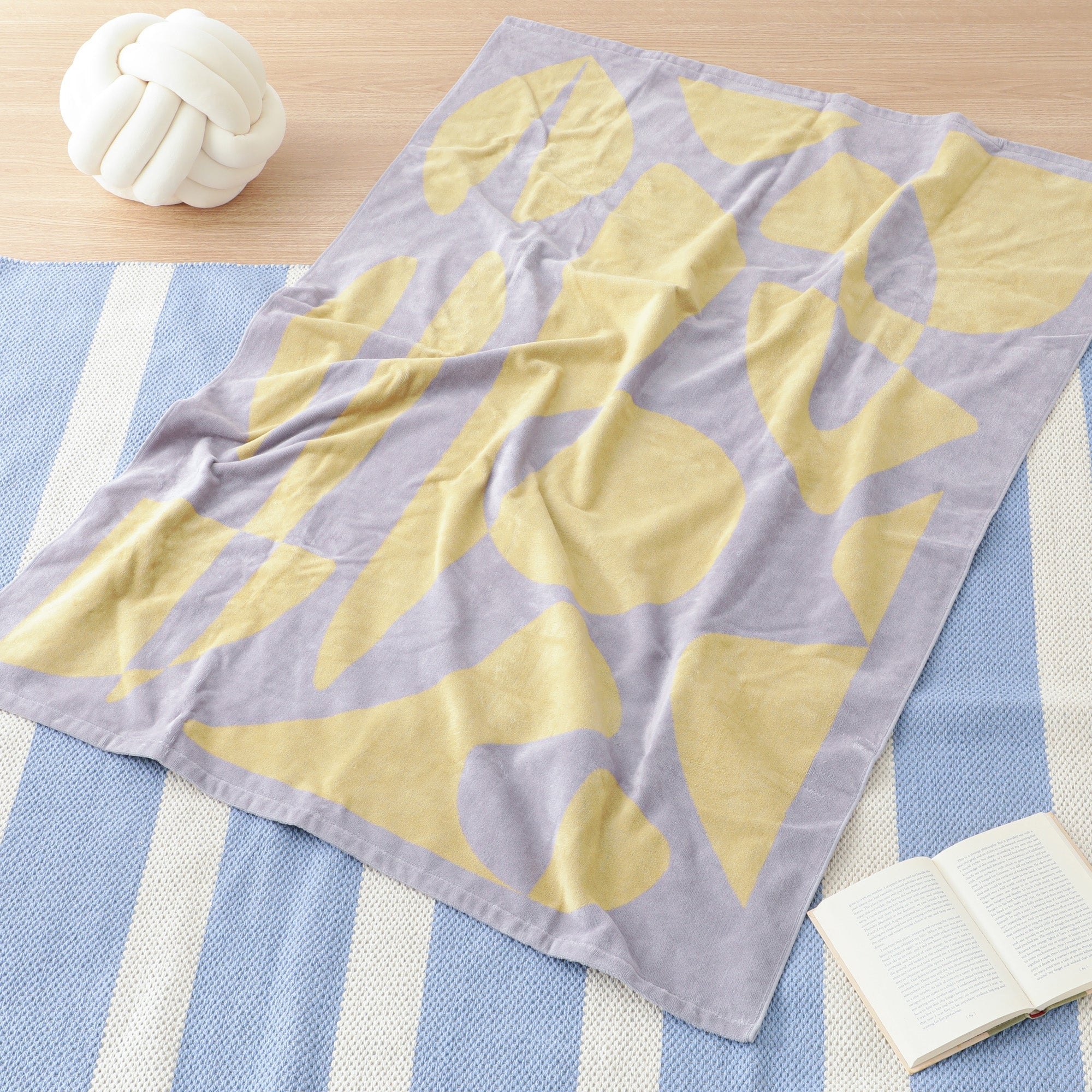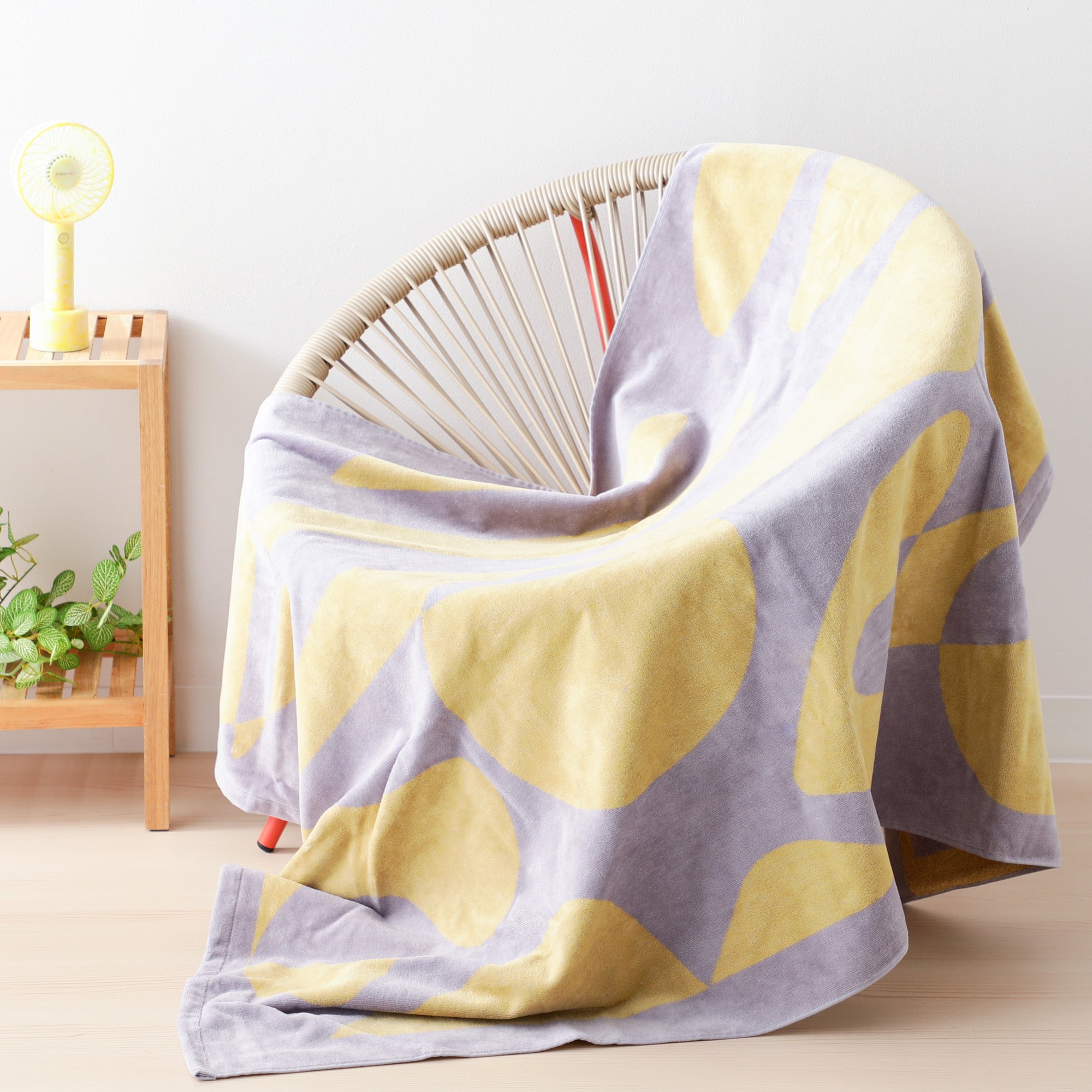 アートタオルケット ジオメトリック ハーフ パープル×イエロー
