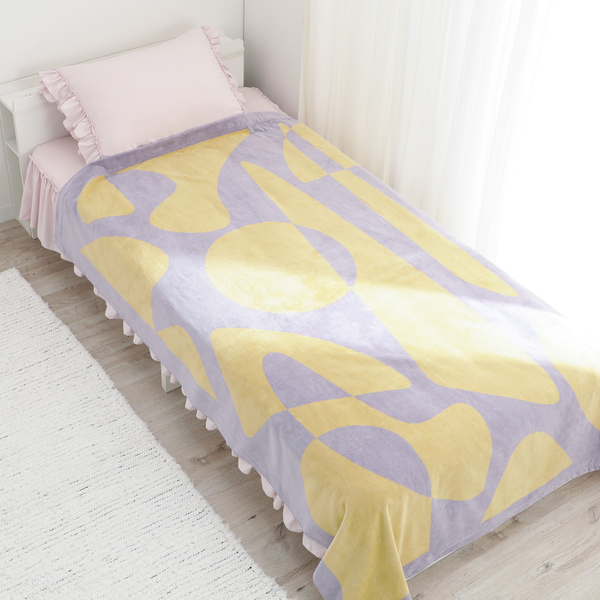 アートタオルケット ジオメトリック ダブル パープル×イエロー
