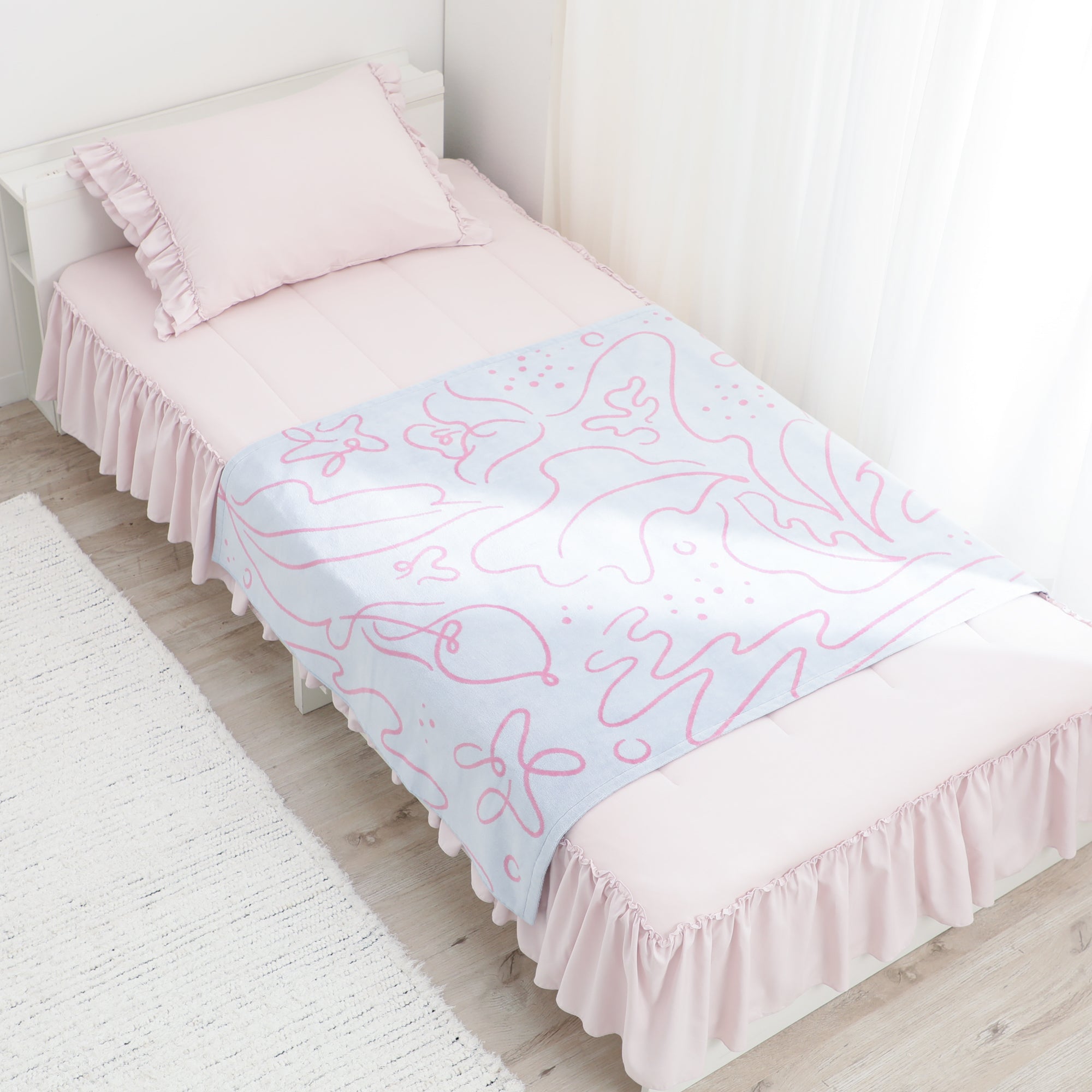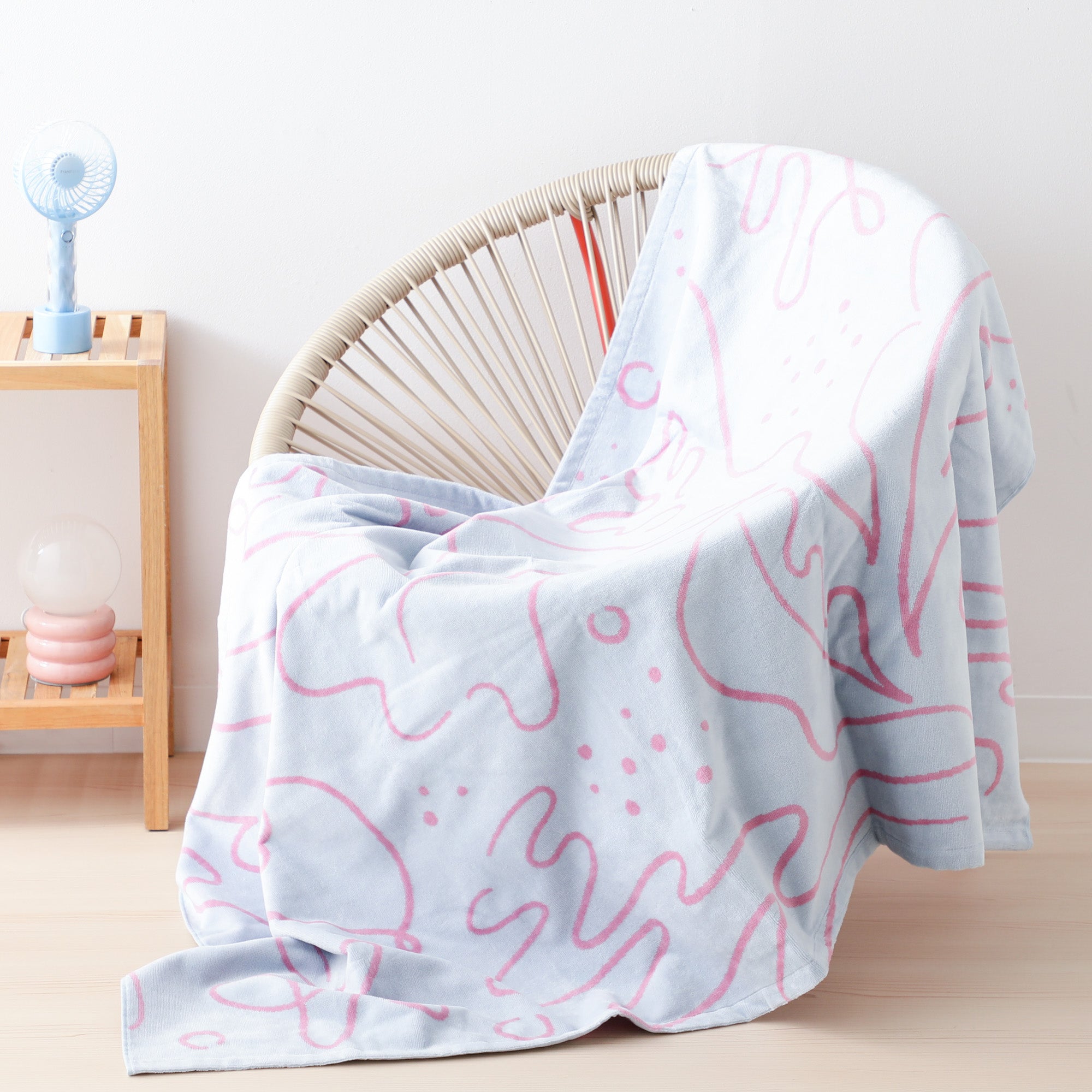 アートタオルケット ドローイング ハーフ ライトブルー×ピンク