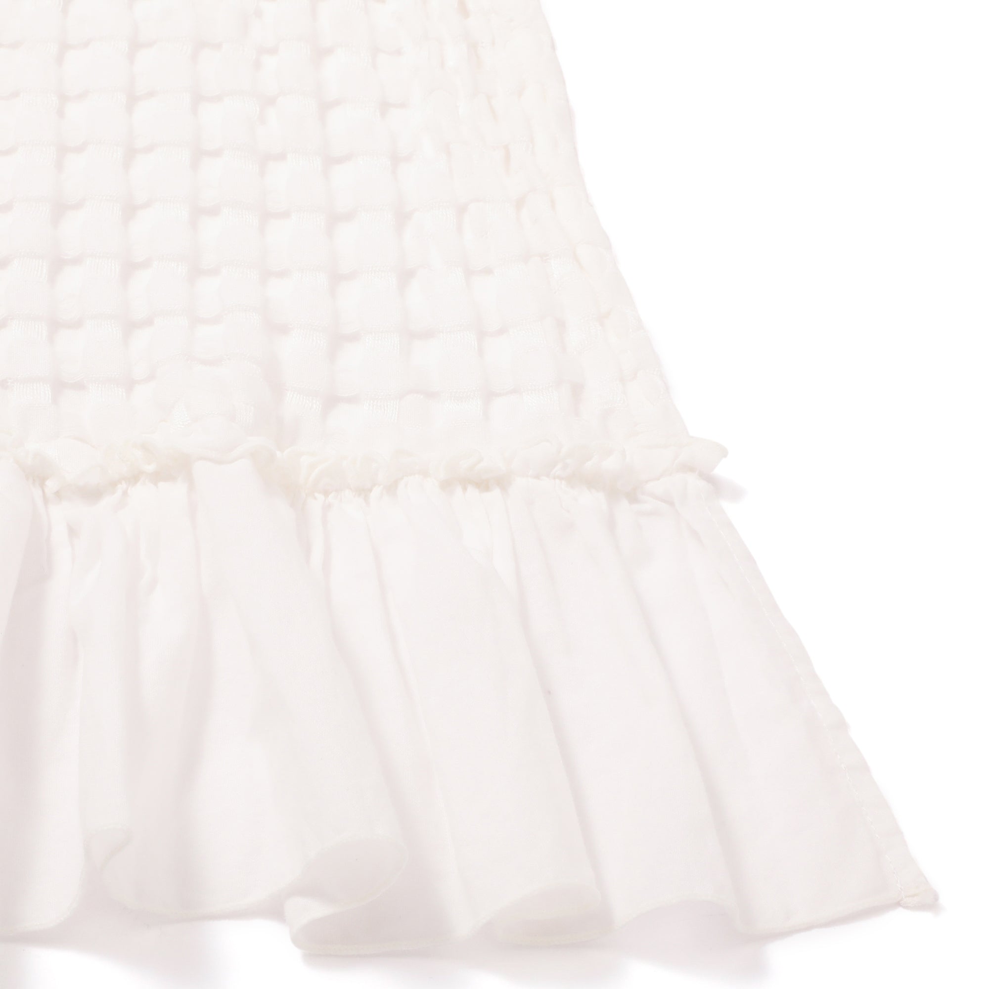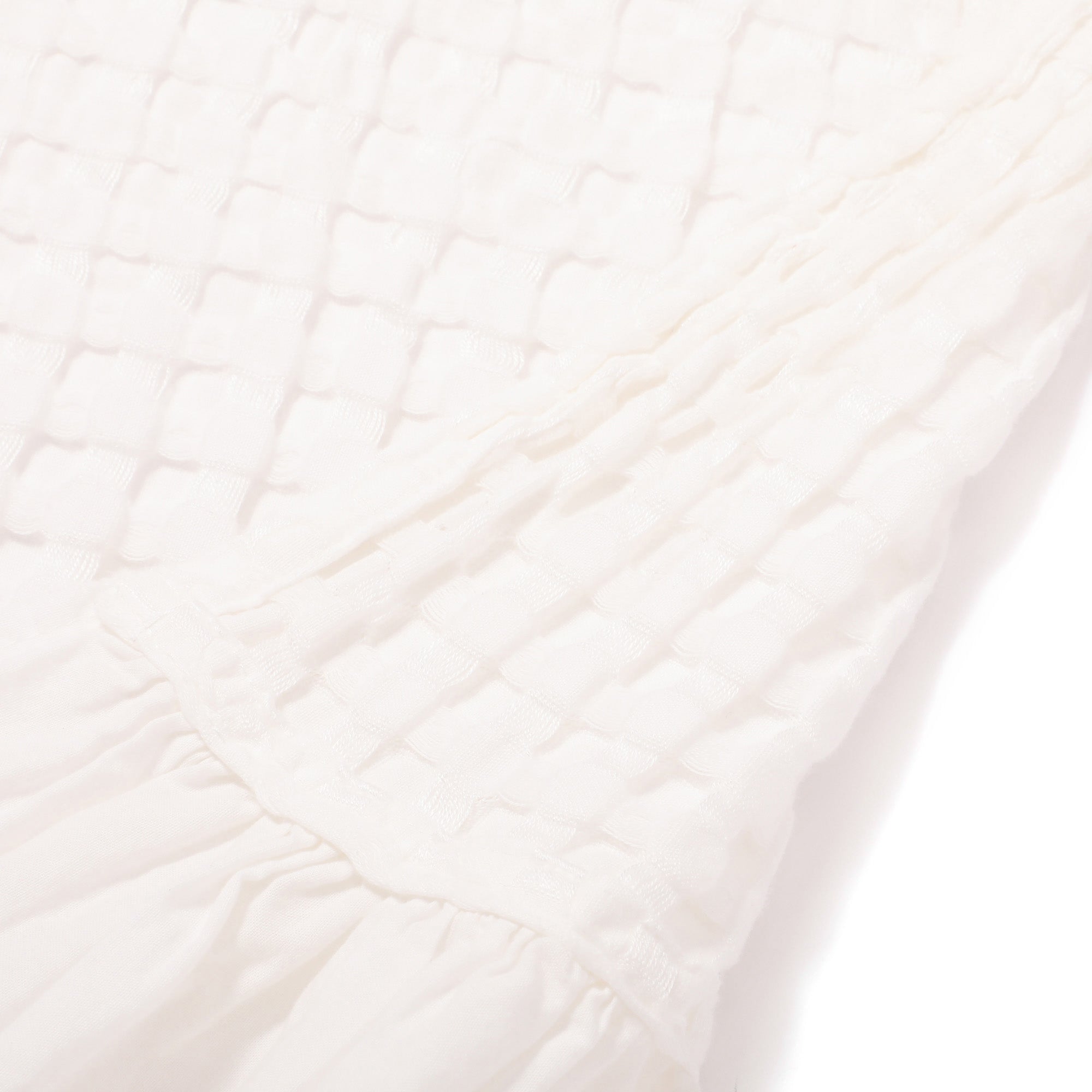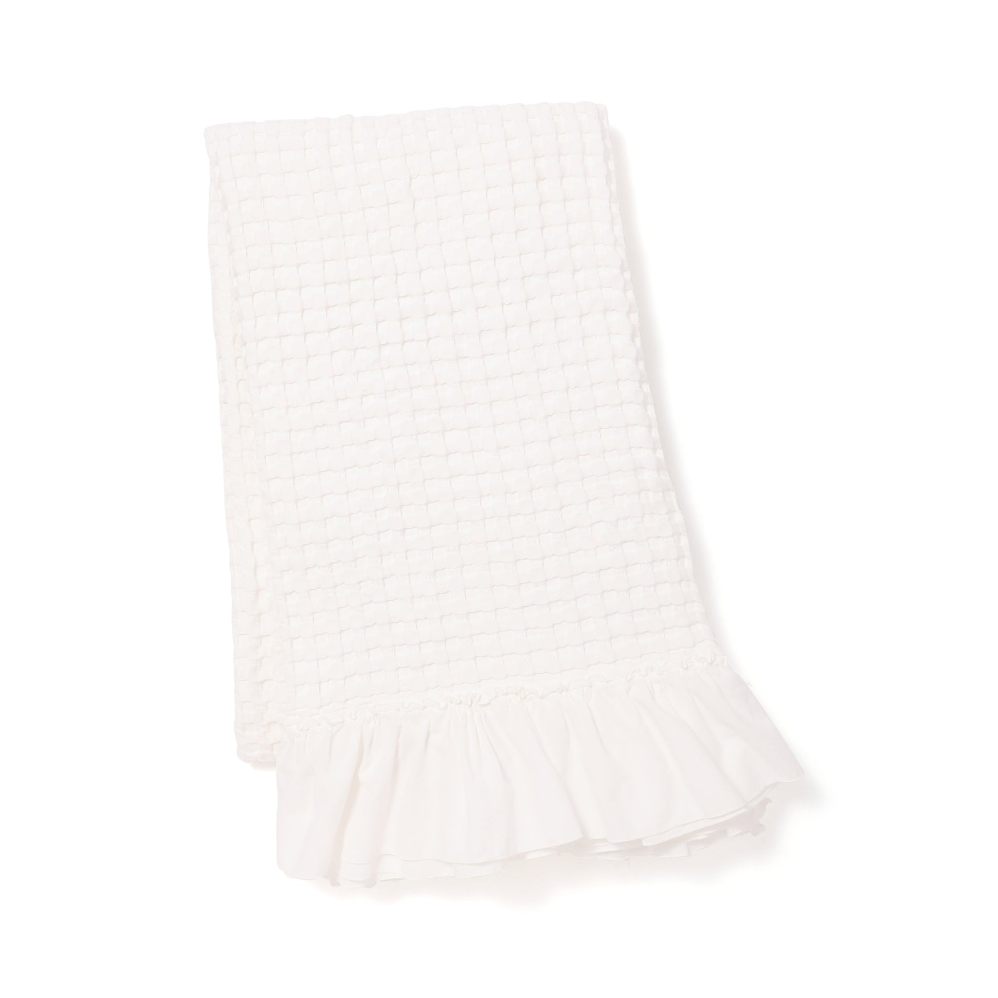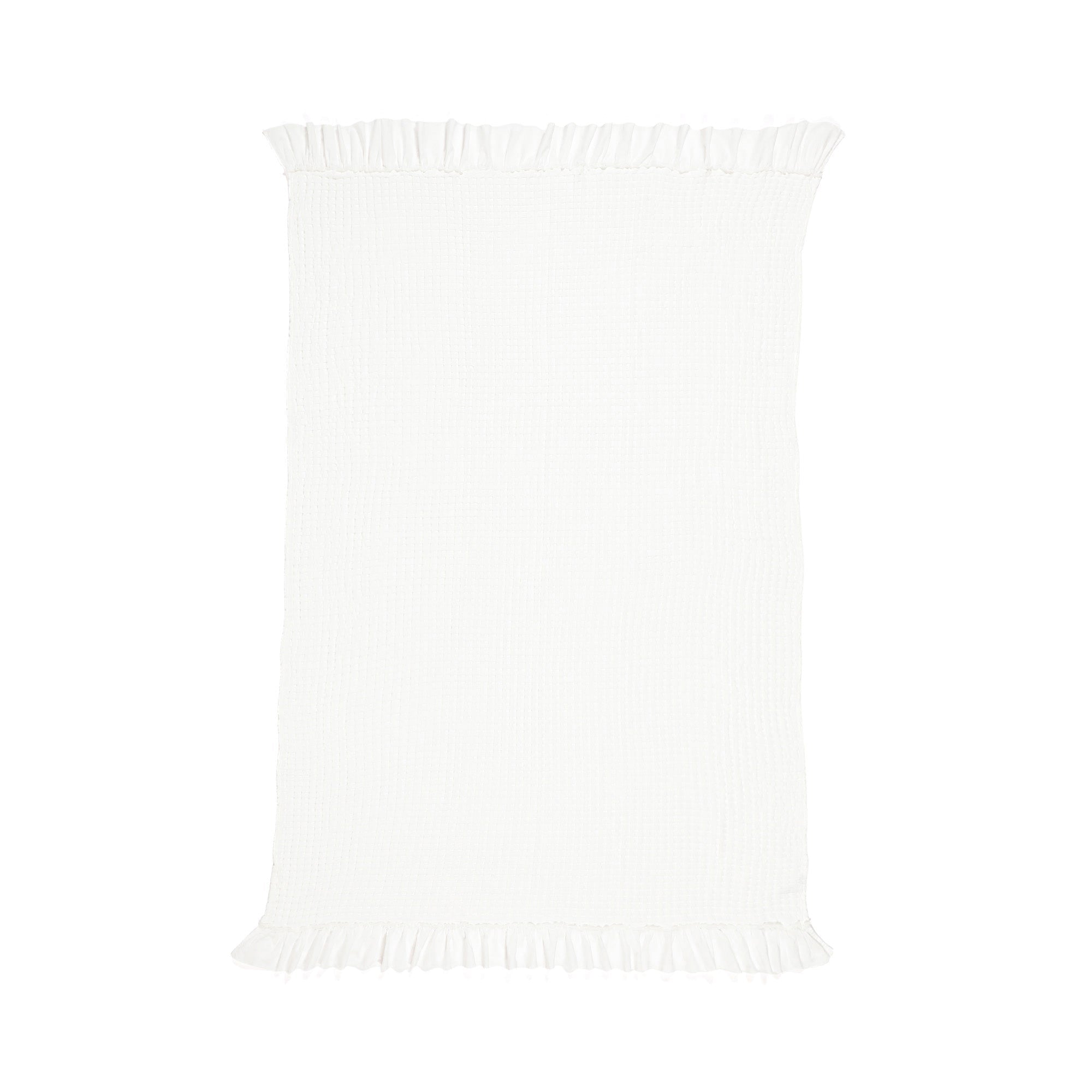 表情豊かなワッフル織りのブランケットです。大きめのワッフルと両端にあしらったフリルがガーリーなポイントです。レーヨンを混ぜることでしっとりなめらかな肌ざわりを実現しました。水洗い・クリーニング可能なので汗をかきやすい季節も清潔にお使いいただけます。
