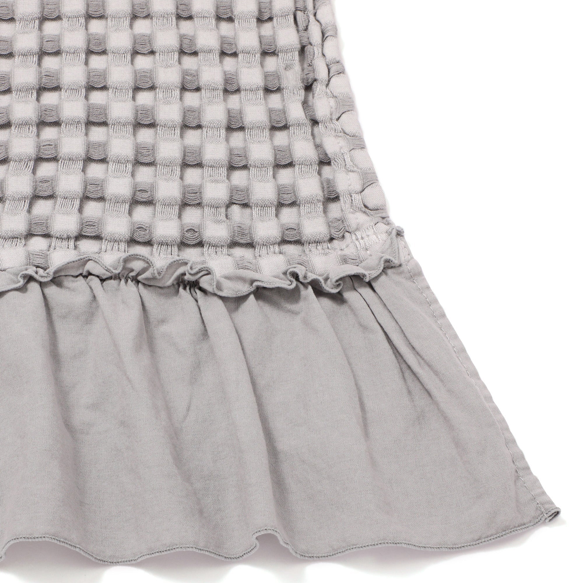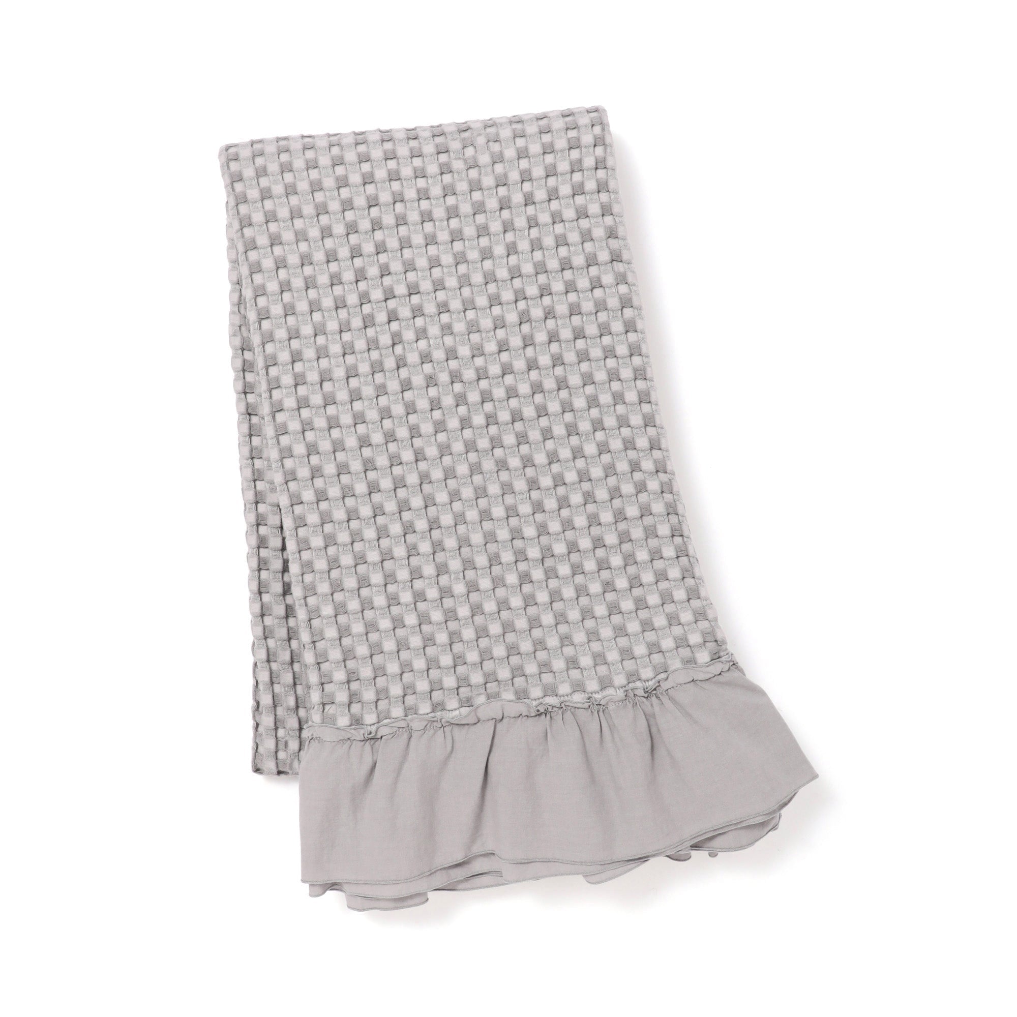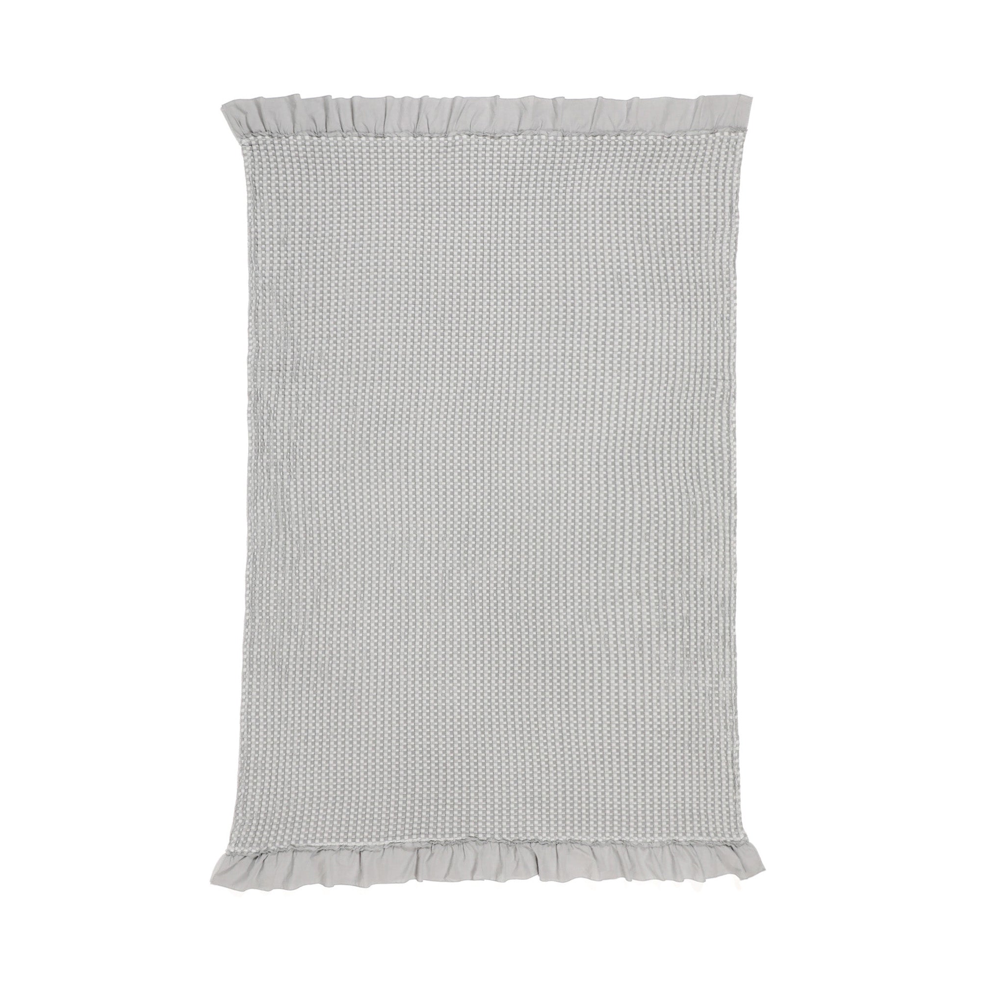 表情豊かなワッフル織りのブランケットです。大きめのワッフルと両端にあしらったフリルがガーリーなポイントです。レーヨンを混ぜることでしっとりなめらかな肌ざわりを実現しました。水洗い・クリーニング可能なので汗をかきやすい季節も清潔にお使いいただけます。