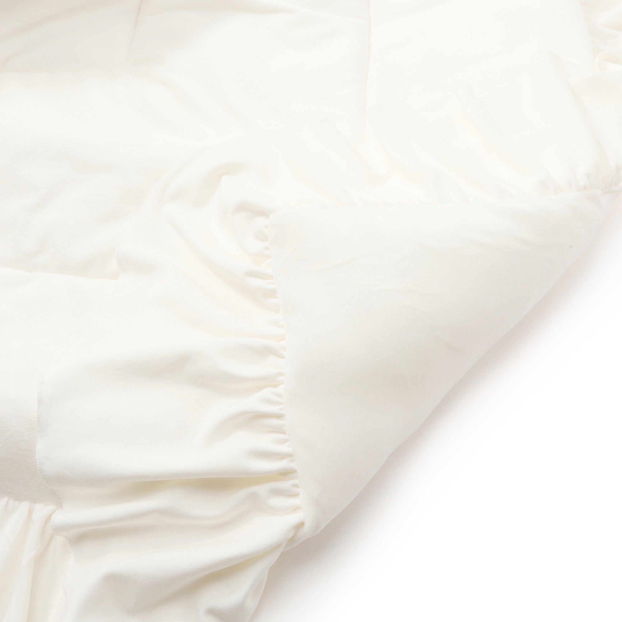 アルガンオイル加工を施した生地で、しっとり、もちもち感のある肌触りが心地よい掛け布団です。 しっとり、もちもちとした生地感と中わたが組み合わさり、さらにもちもち感を感じていただける仕様。布団に入った時のヒヤっと感が少なく、秋冬の快適な入眠をサポートします。 中わたには抗菌防臭効果のある中わたを使用していることに加え、カバーの着脱不要で丸洗い可能なためより清潔に保つことができます。 無地のためコーディネートに取り入れやすく、周囲に施したフリルが華やかさを演出します。 いつまでも包まれていたい快適さをお楽しみください。