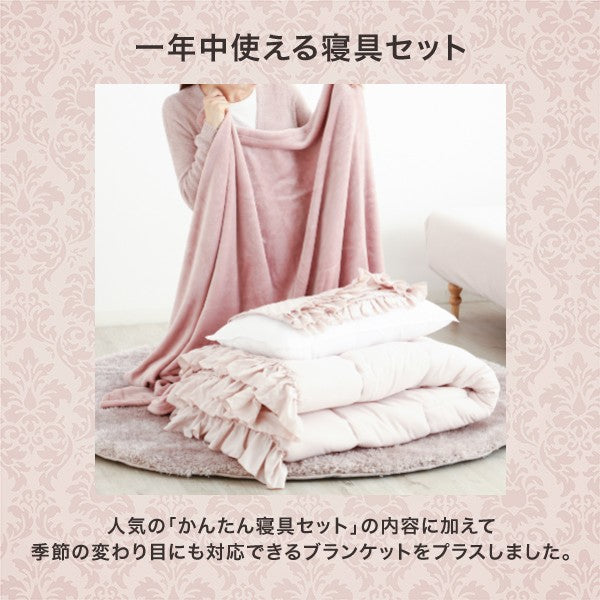 かんたん寝具セット プラス フリル セミダブル ピンク