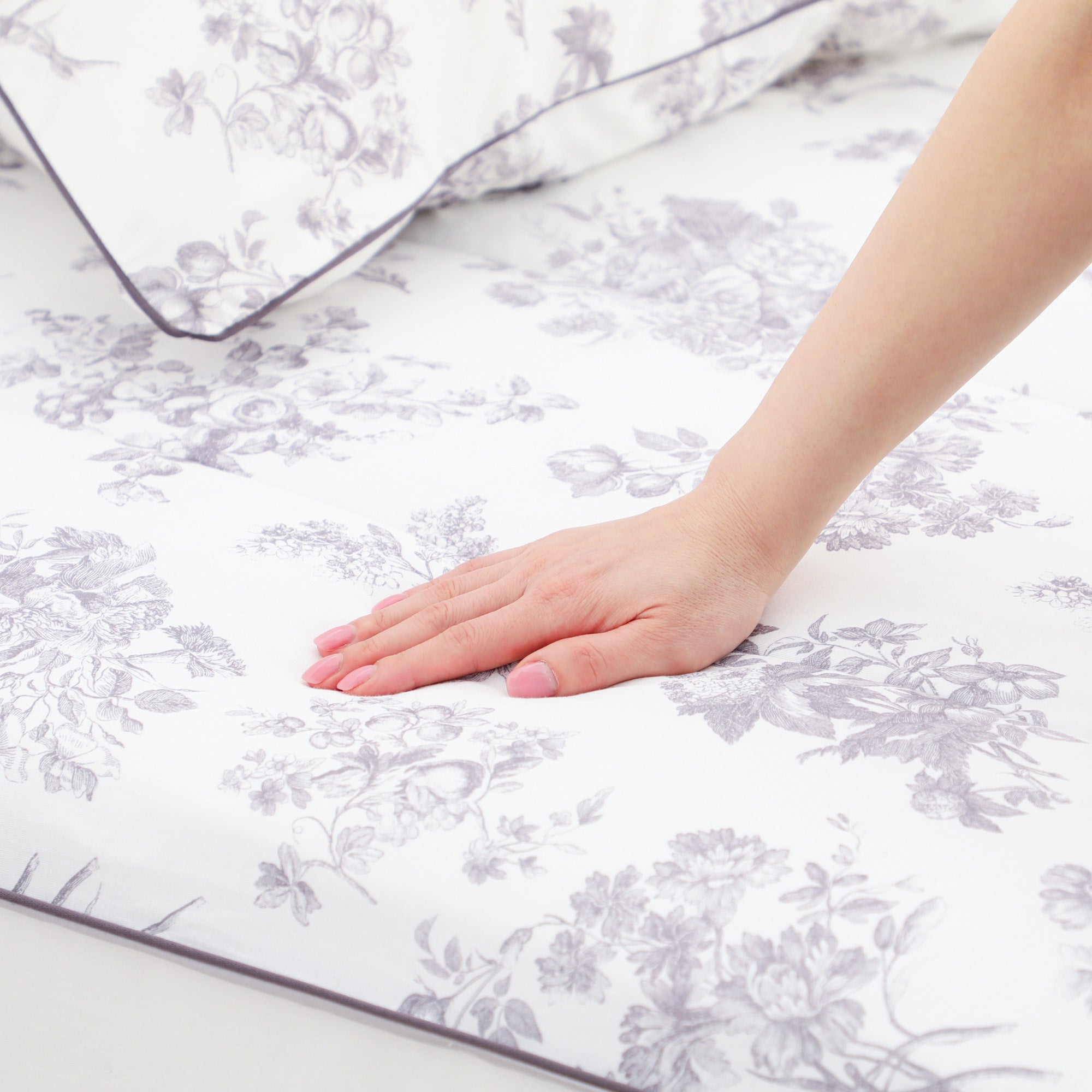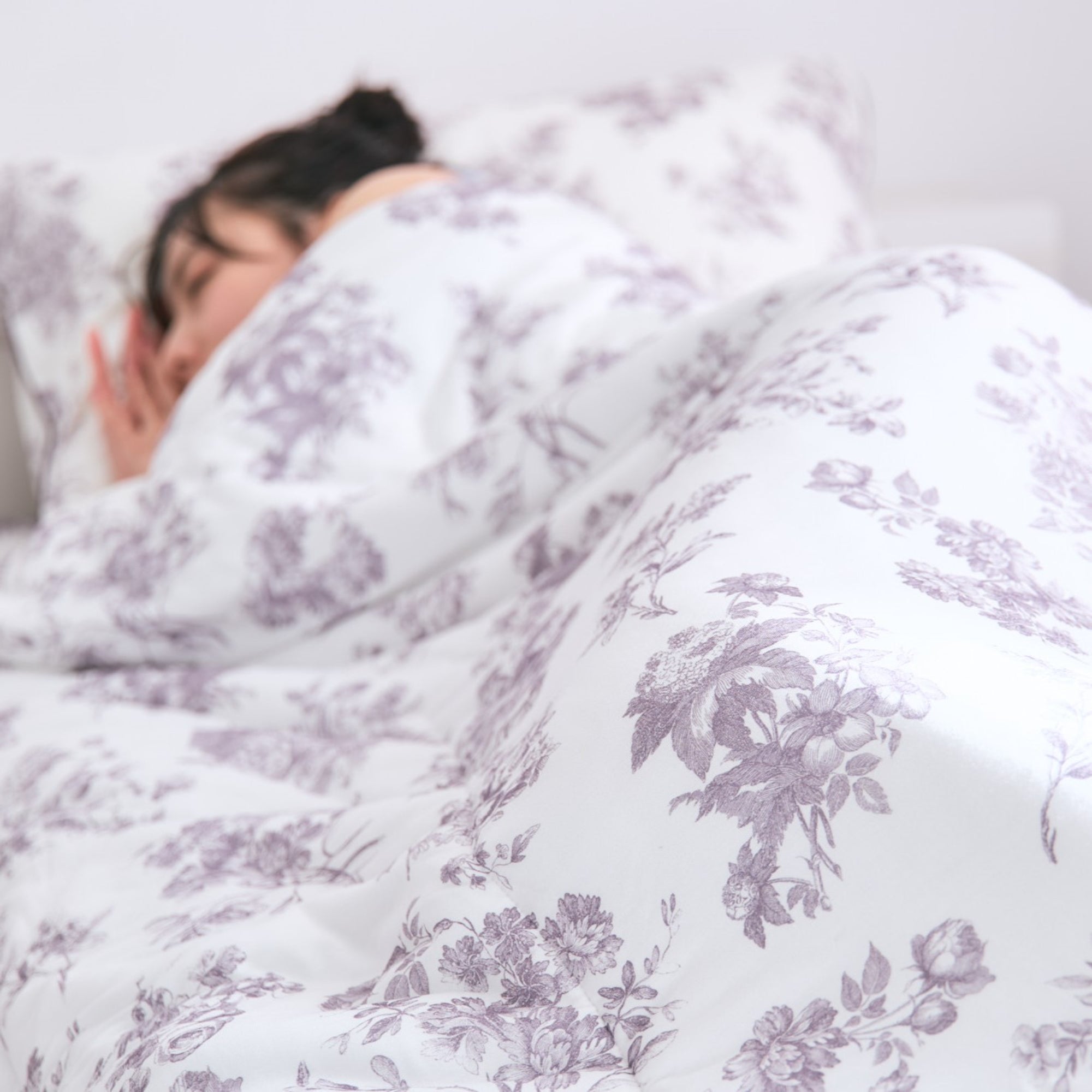 自然なひんやり感と滑らかな肌触りが気持ちいい、人気のふわろシリーズの冷感肌掛けふとんです。繊細な線で表現した花柄と細身のパイピングが上品なベッドコーディネートを叶えてくれます。表はプリント柄、裏は無地となっており、お好みに合わせてリバーシブルでご使用いただけます。表裏面ともに、自然なひんやり感のある滑らかな肌触りの天竺素材を使用しているので、春夏にぴったりの気持ちの良い肌触りをお楽しみいただけます。中わたにはマイクロわたをふんだんに使用し、とろみのあるもちもちとした感触をお楽しみいただけます。ぜいたくな厚手のつくりでふわふわと包まれるような使用感、頬ずりしたくなるような肌触りで快適にお過ごしいただけます。抗菌防臭効果のある中わたを使用しています。繊維上の菌の増殖を抑制することで防臭効果を発揮し、清潔にご使用いただけます。※効果は永続的ではありません。