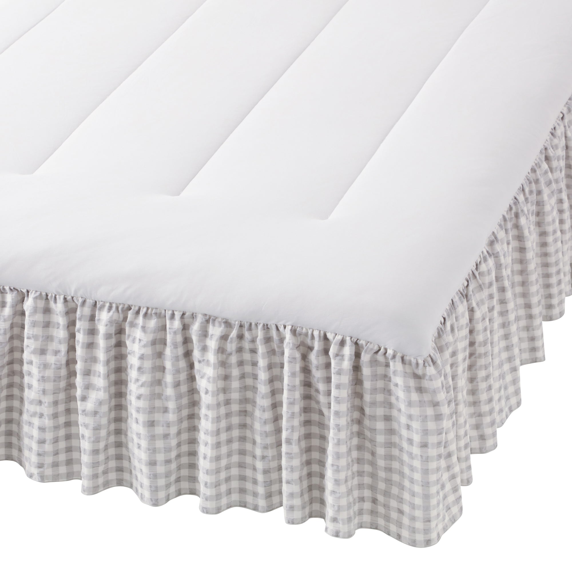 ふわろ 夏でもひんやりもちもち ベッドパッド フリルチェック ダブル ホワイト×グレー