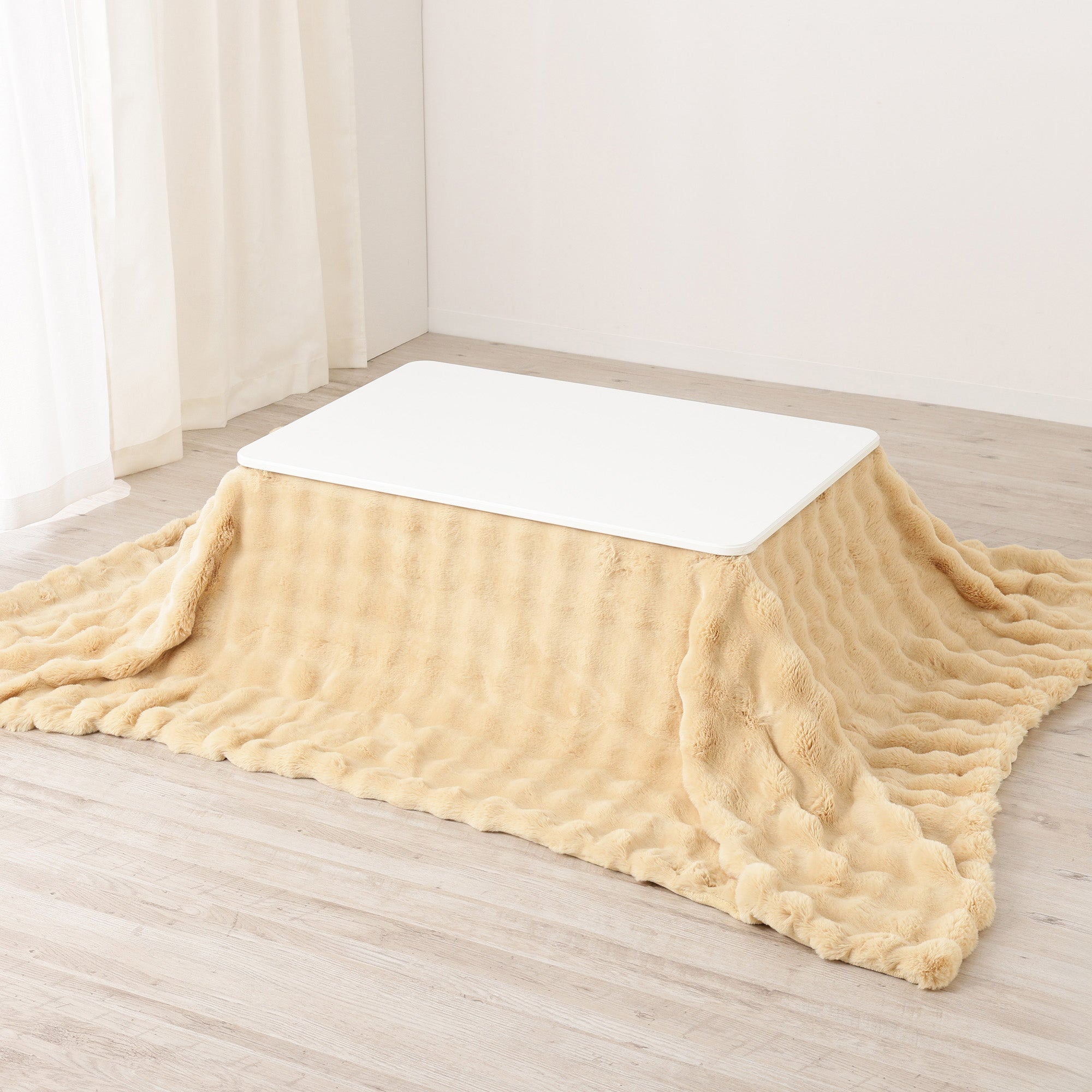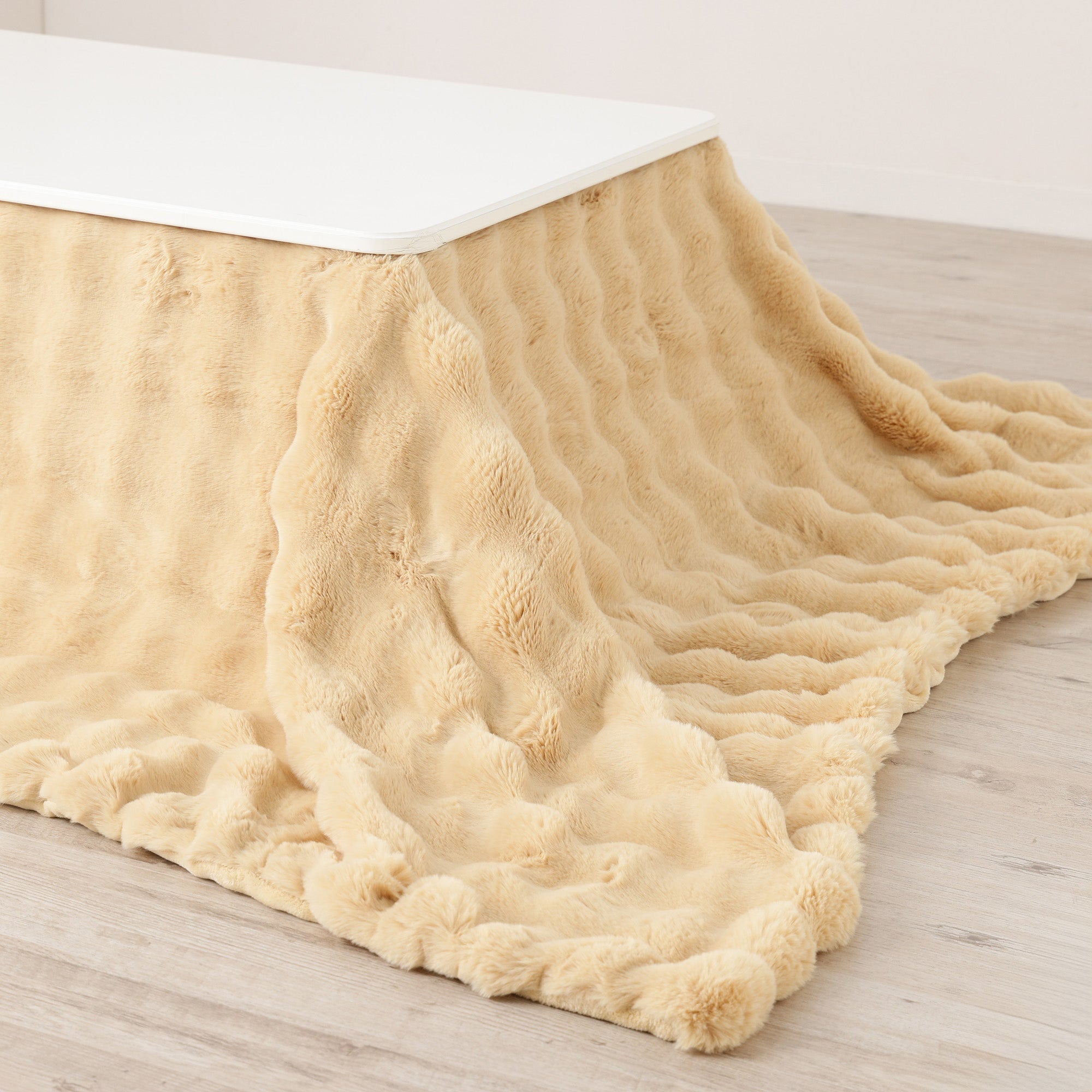 ポコポコとした凹凸感のあるデザインが可愛らしい、こたつ布団カバーにもなるブランケットです。ブランケットとして使うのはもちろん、お手持ちのこたつ布団に重ねてこたつ布団カバーとして使うのもおすすめ。中わたが入っていないので気軽にお洗濯できます。表側のファーはふわふわと肌触りがよく、裏側には肌触り滑らかなマイクロファイバー生地を使用しました。韓国インテリアのトレンドを取り入れた、コーディネートのアクセントになるデザインです。