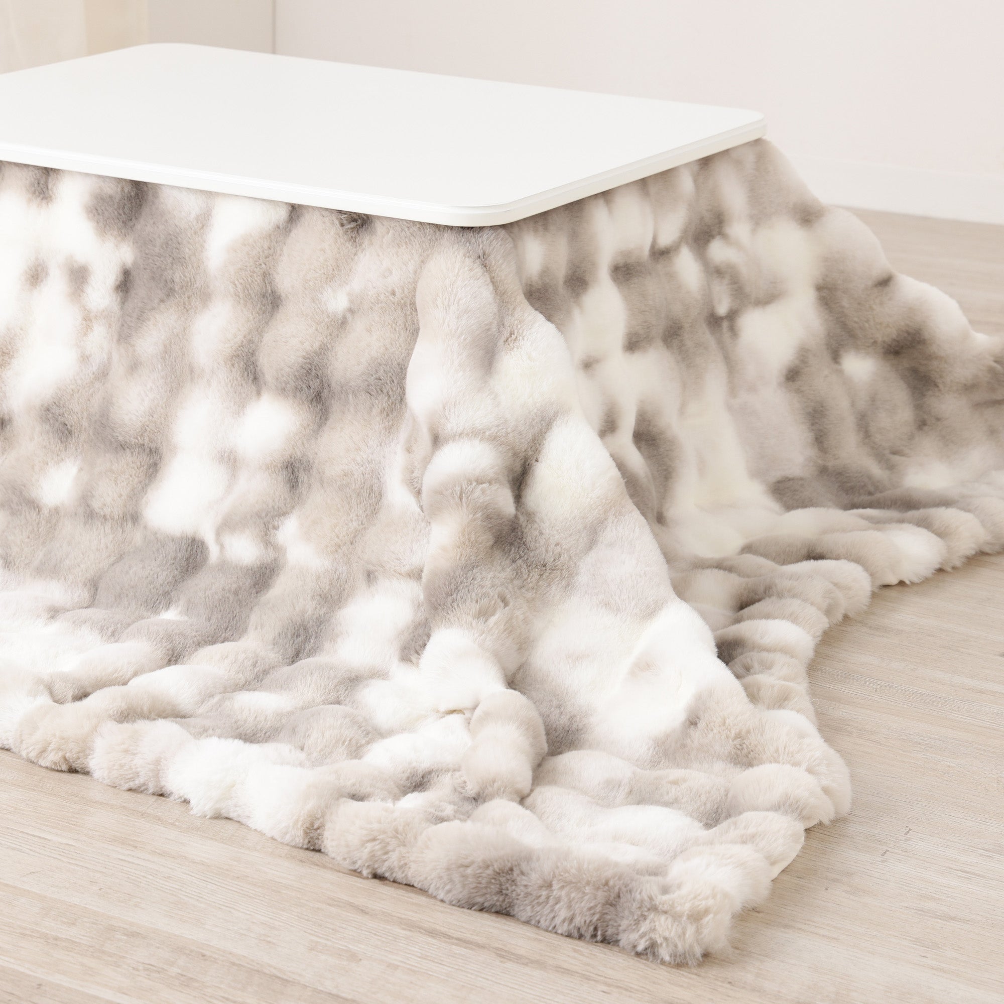 ポコポコとした凹凸感のあるデザインが可愛らしい、こたつ布団カバーにもなるブランケットです。ブランケットとして使うのはもちろん、お手持ちのこたつ布団に重ねてこたつ布団カバーとして使うのもおすすめ。中わたが入っていないので気軽にお洗濯できます。表側のファーはふわふわと肌触りがよく、裏側には肌触り滑らかなマイクロファイバー生地を使用しました。韓国インテリアのトレンドを取り入れた、コーディネートのアクセントになるデザインです。