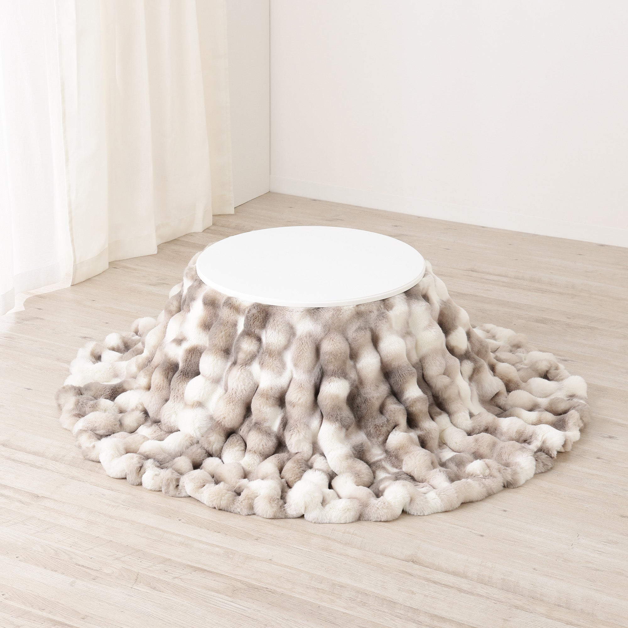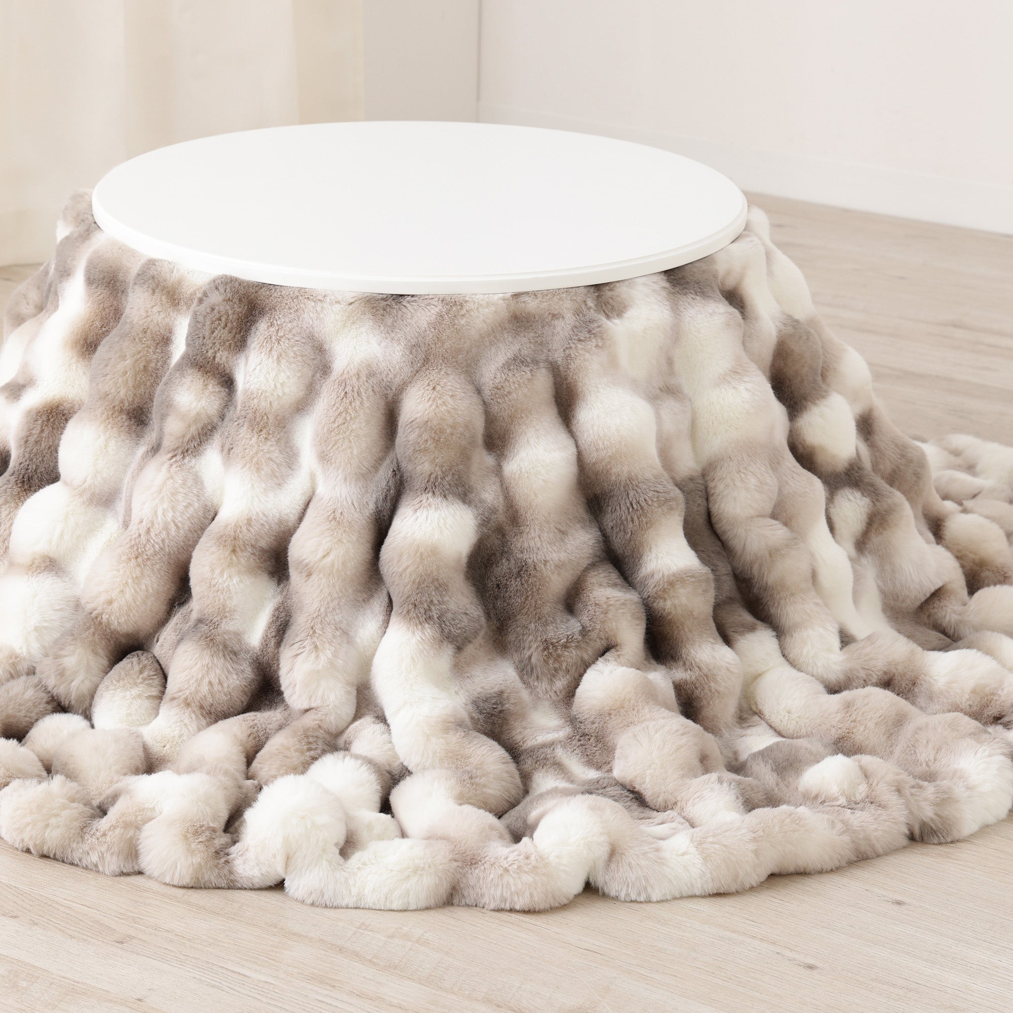 ポコポコとした凹凸感のあるデザインが可愛らしい、こたつ布団カバーにもなるブランケットです。ブランケットとして使うのはもちろん、お手持ちのこたつ布団に重ねてこたつ布団カバーとして使うのもおすすめ。中わたが入っていないので気軽にお洗濯できます。表側のファーはふわふわと肌触りがよく、裏側には肌触り滑らかなマイクロファイバー生地を使用しました。韓国インテリアのトレンドを取り入れた、コーディネートのアクセントになるデザインです。