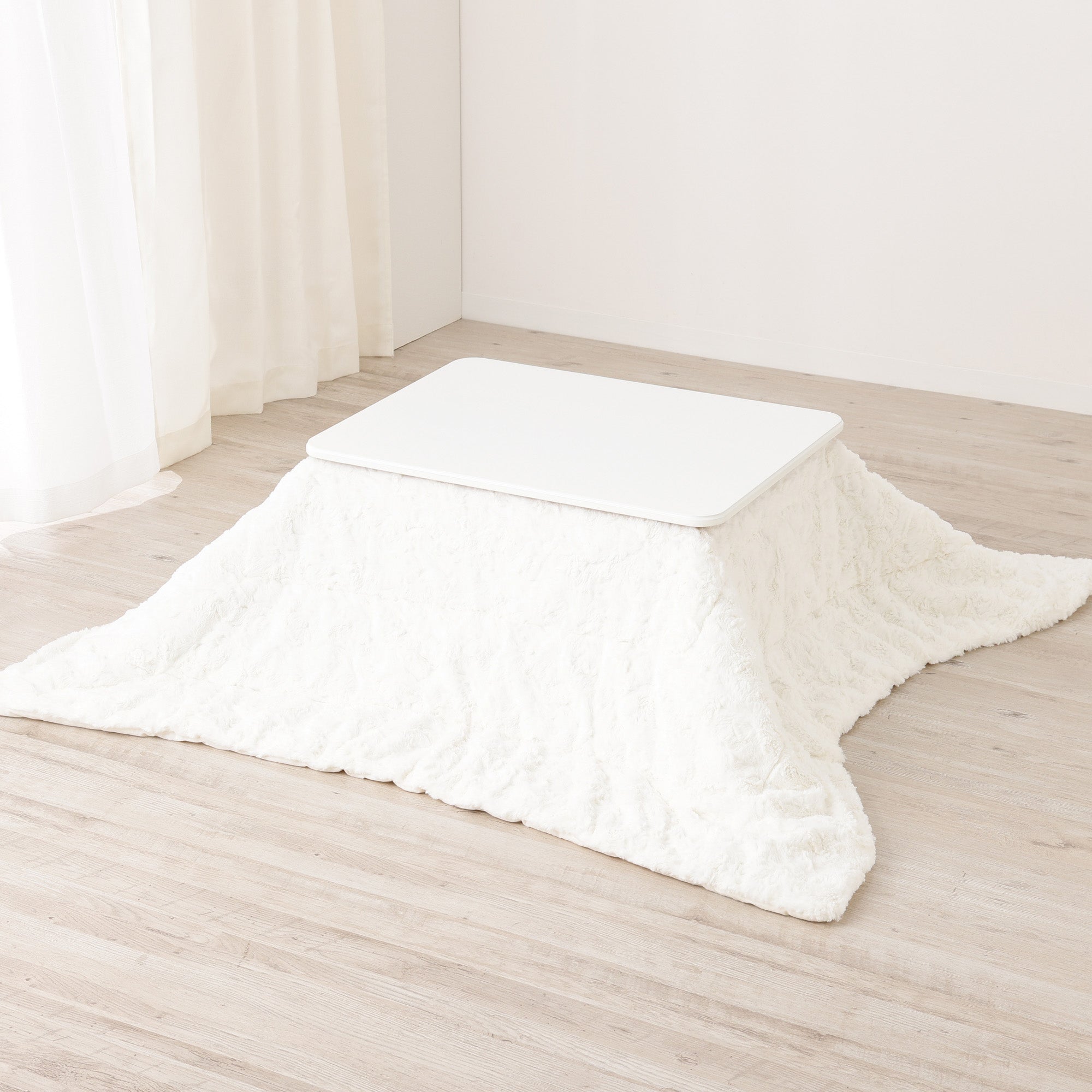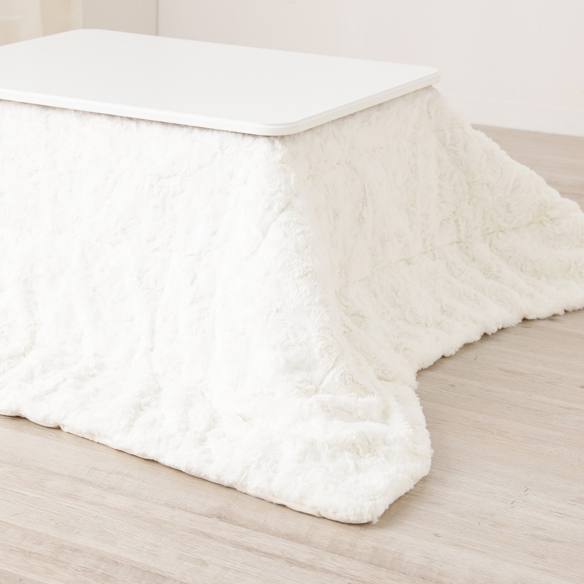 ふわふわふっくらで気持ちいい、ファー素材のこたつ布団です。毛足に動きのあるファーがインテリアコーディネートの華やかなアクセントになってくれます。 表面にファー生地を使用し、裏面は無地のマイクロファイバーを使用しているため、視覚的なふっくら感、ふわふわとした触感をお楽しみいただけます。無地のデザインなので、座布団やクッションで個性を出すのもおすすめです。お気に入りのコーディネートで、寒い季節も楽しんでください。