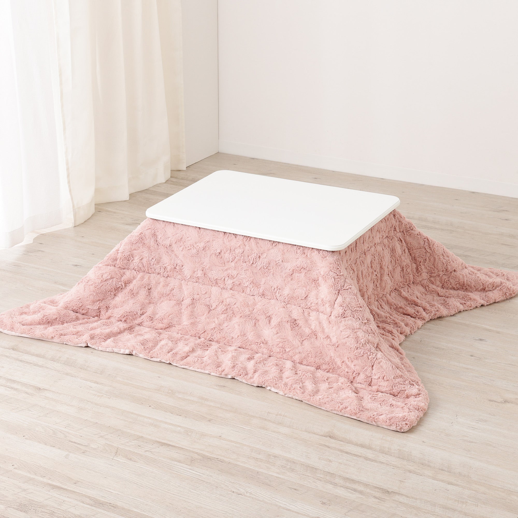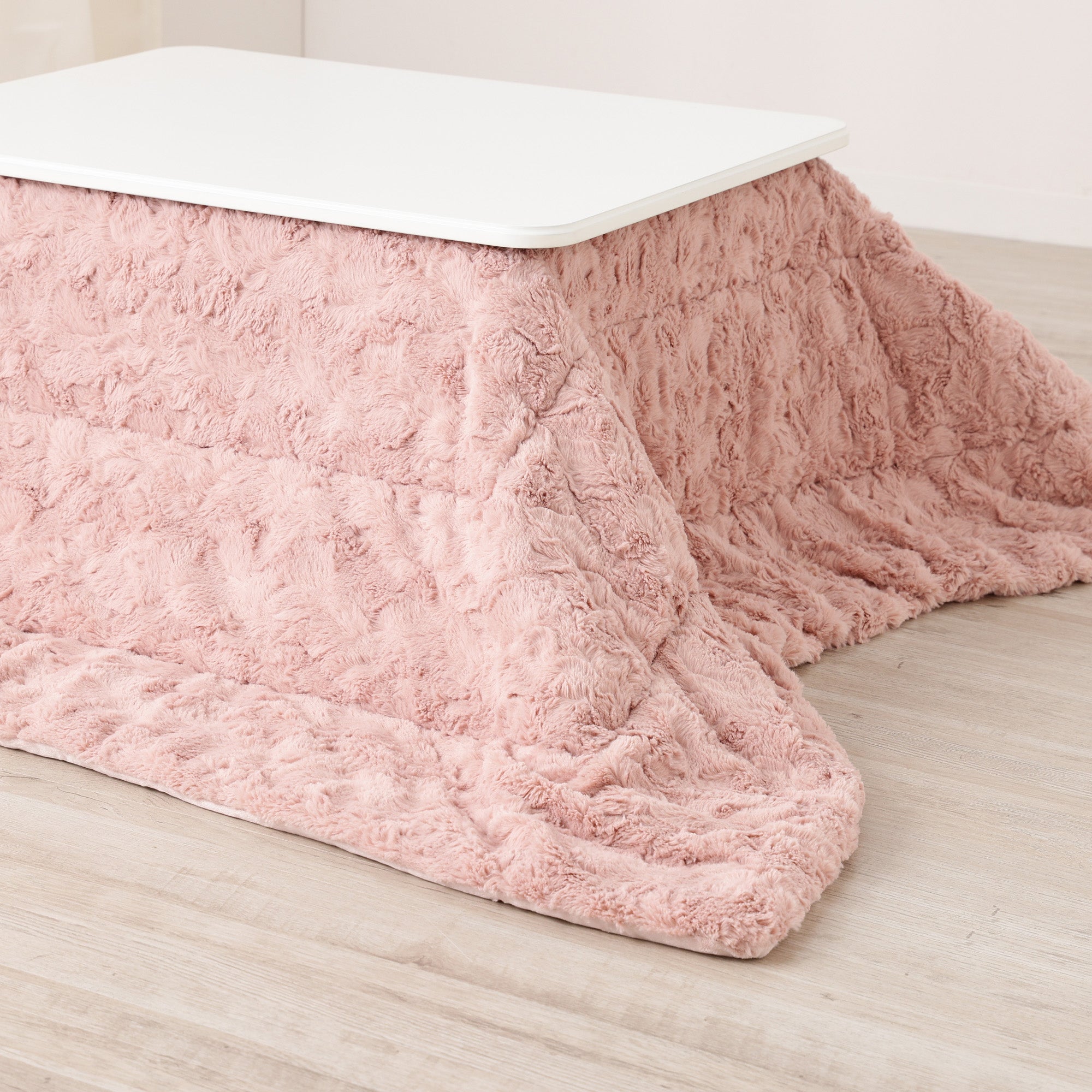 ふわふわふっくらで気持ちいい、ファー素材のこたつ布団です。毛足に動きのあるファーがインテリアコーディネートの華やかなアクセントになってくれます。 表面にファー生地を使用し、裏面は無地のマイクロファイバーを使用しているため、視覚的なふっくら感、ふわふわとした触感をお楽しみいただけます。無地のデザインなので、座布団やクッションで個性を出すのもおすすめです。お気に入りのコーディネートで、寒い季節も楽しんでください。