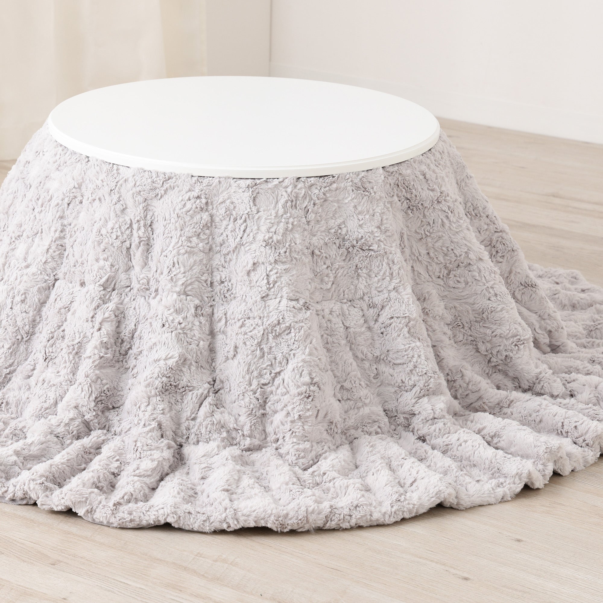 ふわふわふっくらで気持ちいい、ファー素材のこたつ布団です。毛足に動きのあるファーがインテリアコーディネートの華やかなアクセントになってくれます。 表面にファー生地を使用し、裏面は無地のマイクロファイバーを使用しているため、視覚的なふっくら感、ふわふわとした触感をお楽しみいただけます。無地のデザインなので、座布団やクッションで個性を出すのもおすすめです。お気に入りのコーディネートで、寒い季節も楽しんでください。