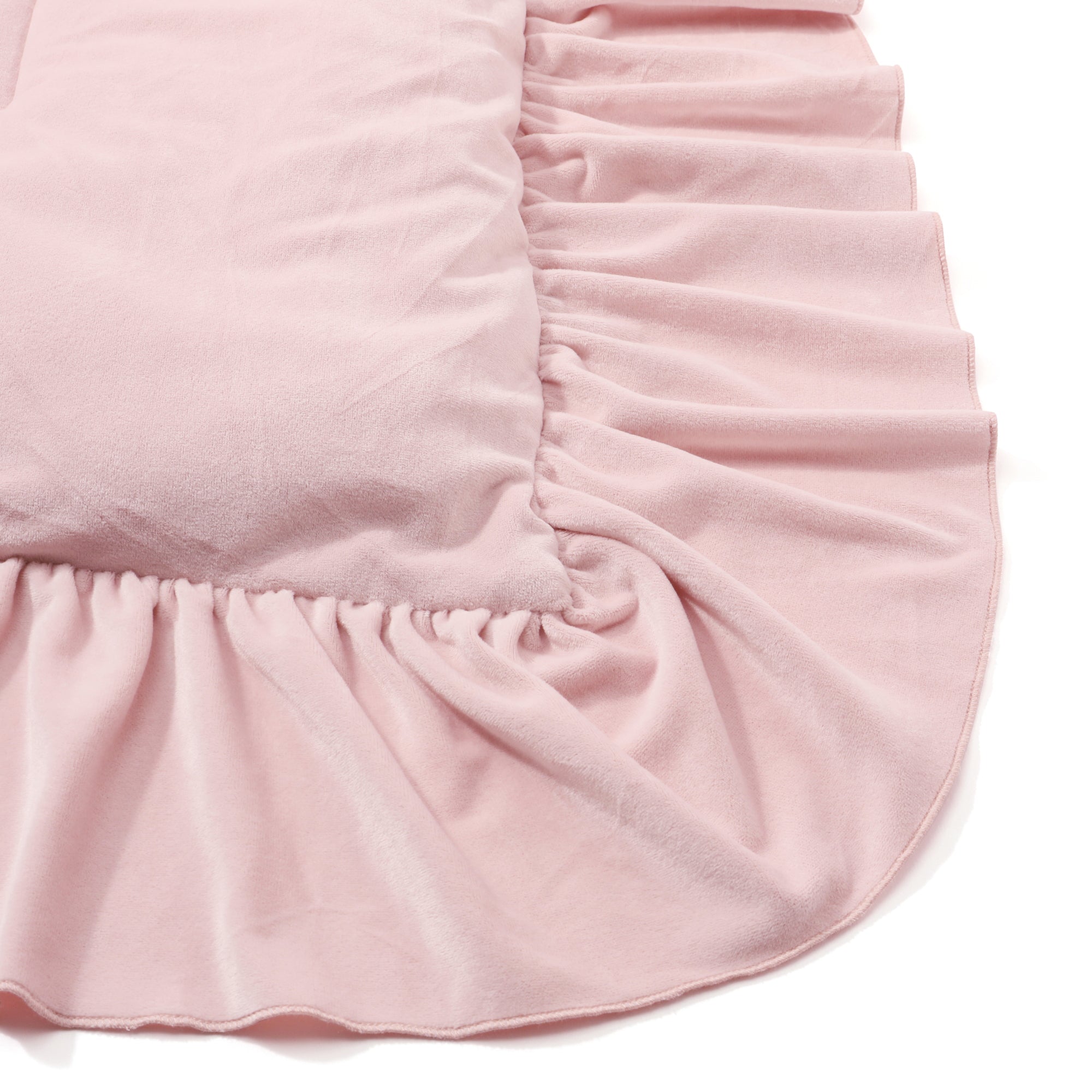 アルガンオイル加工を施した生地で、しっとり、もちもち感のある肌触りが心地よい掛けふとんです。しっとり、もちもちとした生地感と中わたが組み合わさり、さらにもちもち感を感じていただける仕様。布団に入った時のヒヤっと感が少なく、秋冬の快適な入眠をサポートします。中わたには抗菌防臭効果のある中わたを使用していることに加え、カバーの着脱不要で丸洗い可能なため、より清潔に保つことができます。無地のためコーディネートに取り入れやすく、周囲に施したフリルが華やかさを演出します。いつまでも包まれていたい快適さをお楽しみください。