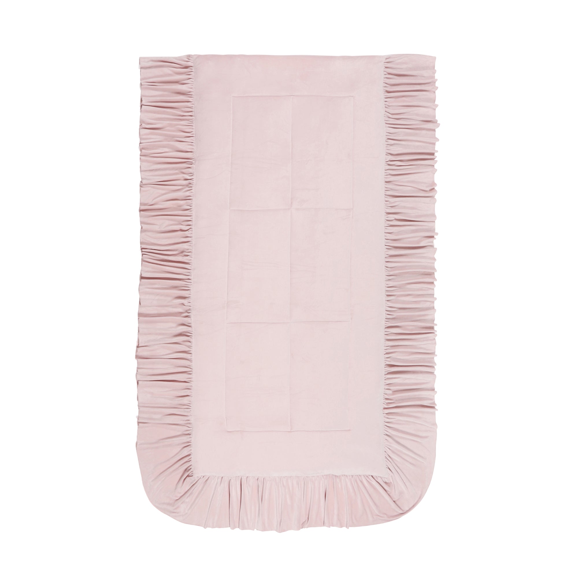 アルガンオイル加工を施した生地で、しっとり、もちもち感のある肌触りが心地よいベッドパッドです。吸湿発熱効果・抗菌防臭効果のある中わたを使用しているから、身体から発散する水分を熱に変換してくれる嬉しい効果で、寒い季節でも心地よく、清潔にお過ごしいただけます。お洗濯も可能なためより清潔に保つことができます。25cmのフリルで厚みのあるマットレスでもしっかり側面を隠してくれるから、華やかなコーディネートを演出してくれます。しっとりもちもちとした生地感で、いつまでも包まれていたい快適さをお楽しみください。