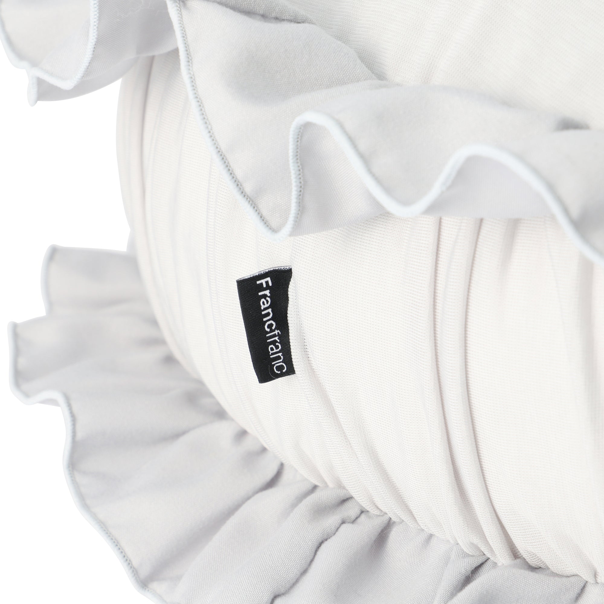 Francfrancらしさたっぷりの可愛らしいデザインにひんやり効果をプラスした冷感クッションです。ボリュームのある丸形クッションにフリルをあしらってスイートなデザインに仕上げました。どんなお部屋にも合わせやすいシンプルな無地のカラーリングはインテリアを選びません。表生地にはひんやりキルトラグと同じ素材を使用。中綿にはマイクロファイバー綿を使った、ひんやりもちもちとした手ざわりが楽しめるアイテムです。