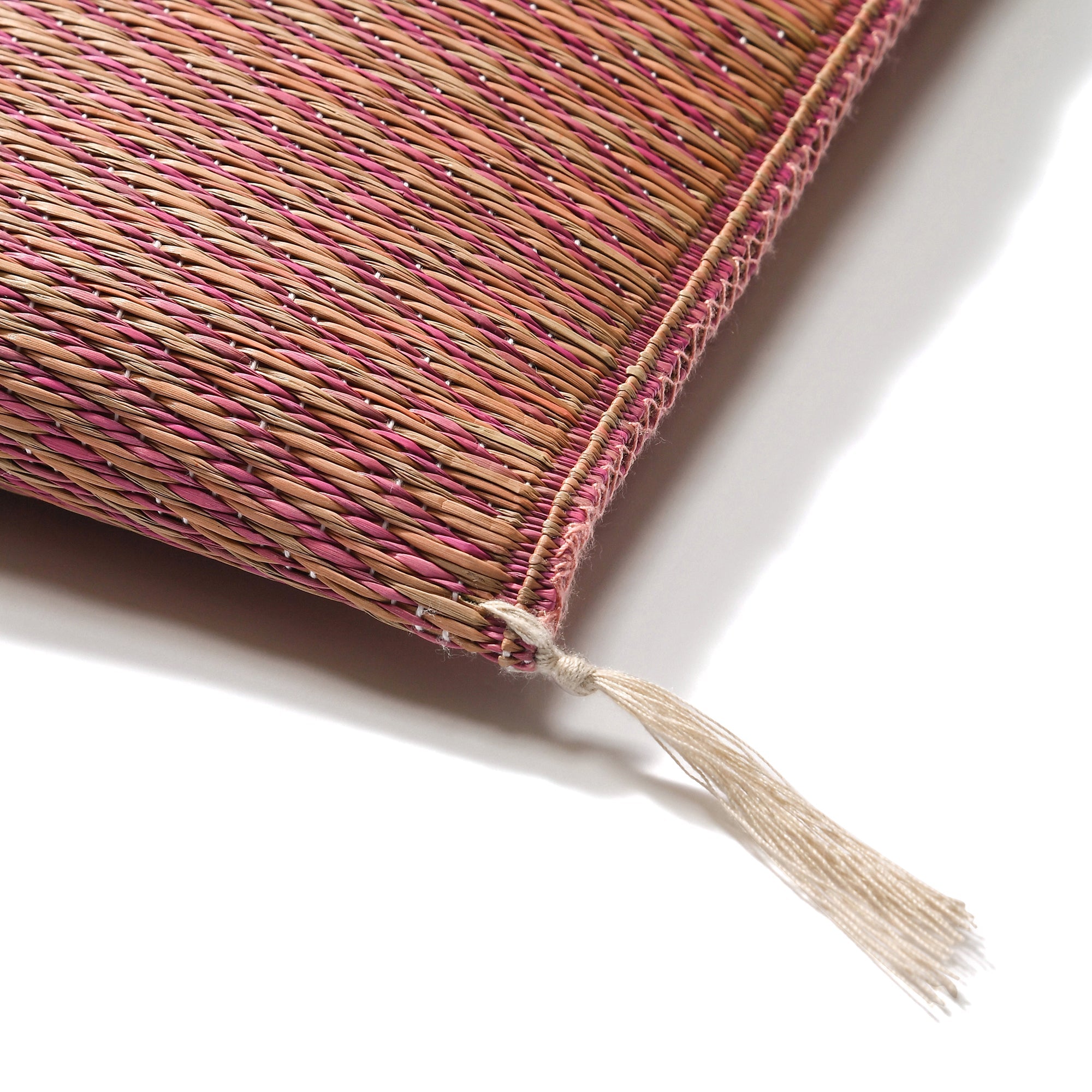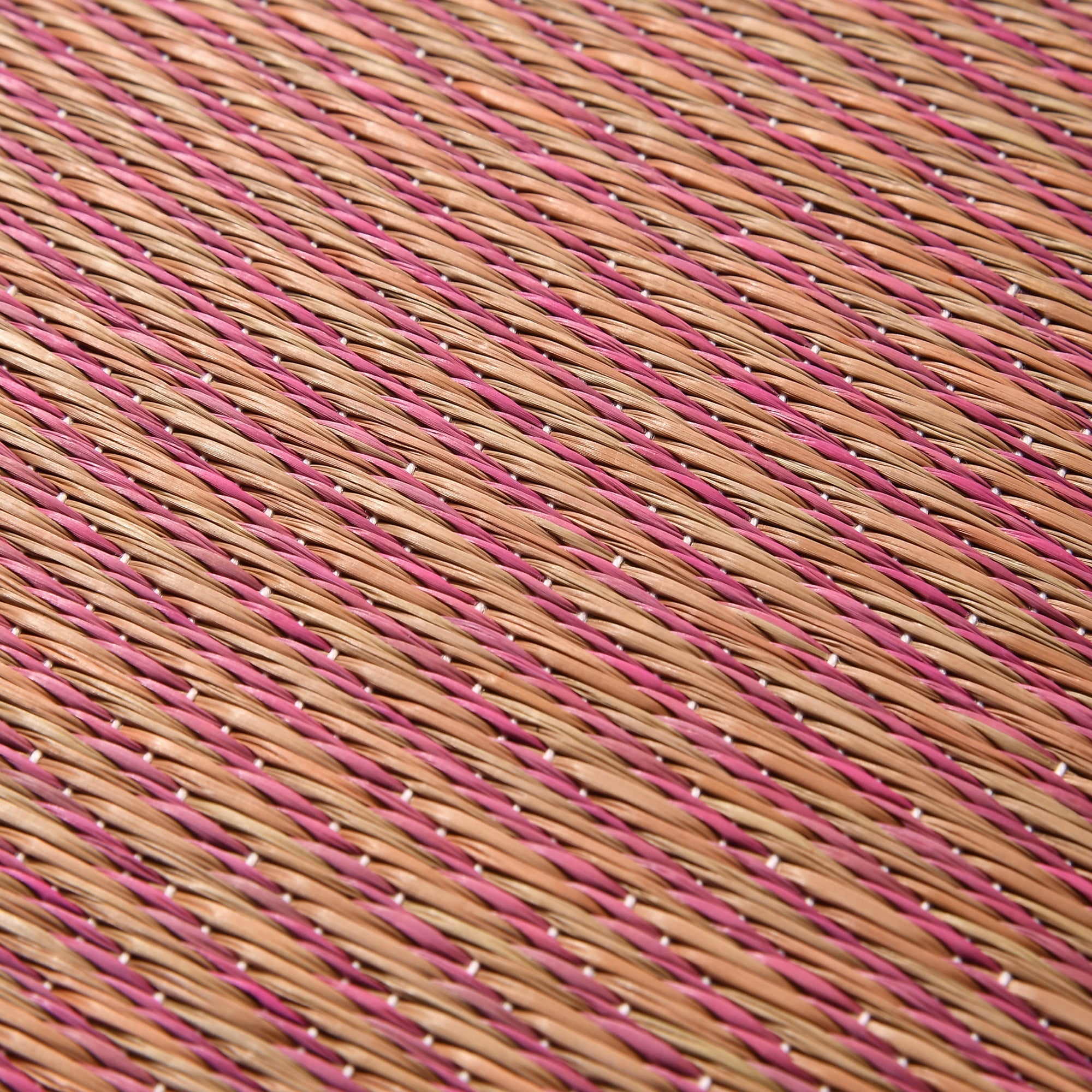 2色のい草を斜めストライプに編み込んだバイカラー仕様のい草座布団です。本物のい草は通気性が良く涼やかな踏み心地で、夏を快適にお過ごしいただけます。中材はウレタン入りで底付がなく床座りに最適です。防カビ加工により、カビなどの発生をおさえ清潔に使用できるのも嬉しいポイント。ポップでモダンなお部屋にもコーディネートいただけるビビットカラーのピンク・グリーン、落ち着いたベージュ系のトーンでどんなお部屋にも合わせやすいナチュラルの3色展開なので、お部屋に合わせてお選びいただけます。