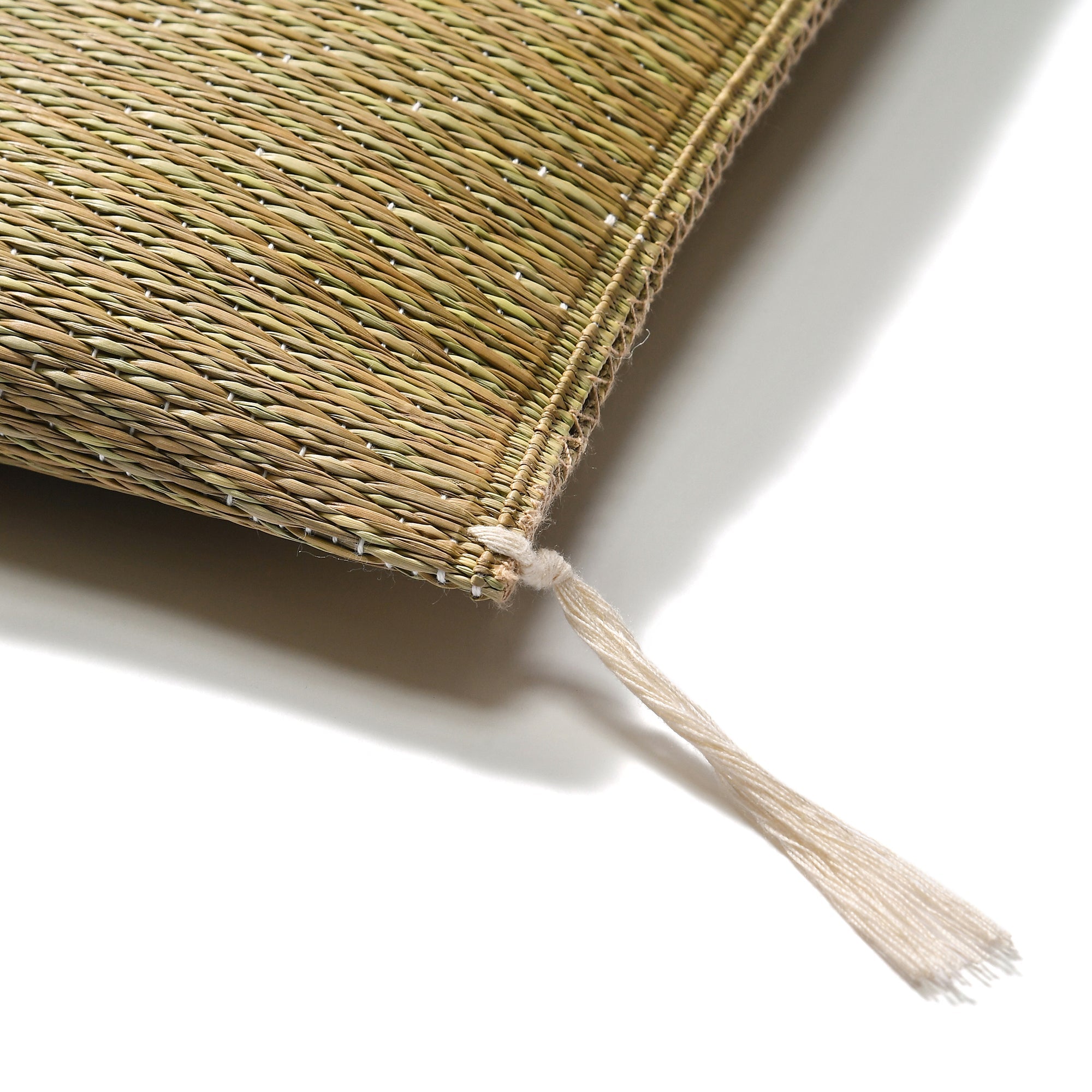 2色のい草を斜めストライプに編み込んだバイカラー仕様のい草座布団です。本物のい草は通気性が良く涼やかな踏み心地で、夏を快適にお過ごしいただけます。中材はウレタン入りで底付がなく床座りに最適です。防カビ加工により、カビなどの発生をおさえ清潔に使用できるのも嬉しいポイント。ポップでモダンなお部屋にもコーディネートいただけるビビットカラーのピンク・グリーン、落ち着いたベージュ系のトーンでどんなお部屋にも合わせやすいナチュラルの3色展開なので、お部屋に合わせてお選びいただけます。