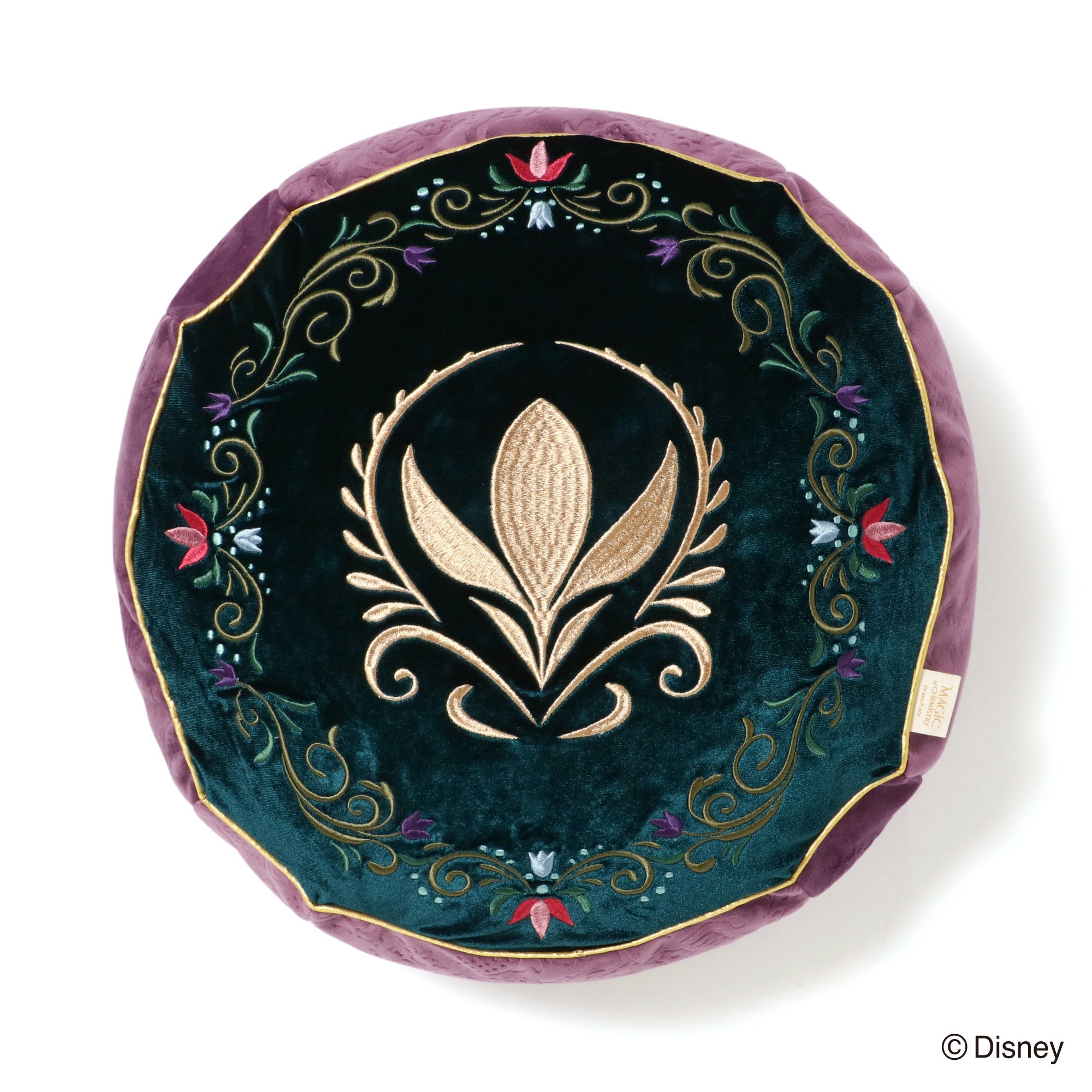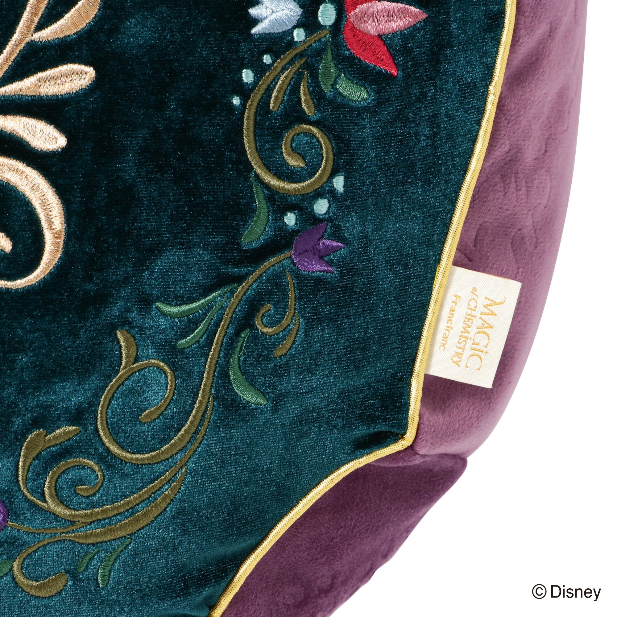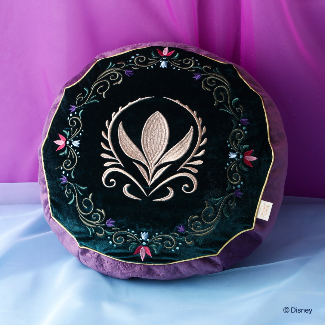 「MAGIC of CHEMISTRY」 5つのディズニー作品からインスパイアされた「MAGIC of CHEMISTRY(マジック オブ ケミストリー)」シリーズ。 親友、相棒、大切な家族、そして運命の人。特別な二人が出会い、日常に魔法がかかる瞬間の心の高鳴りを、Francfrancならではのデザインでお届けします。 『アナと雪の女王』をイメージしたクッションです。 アレンデール王国の国旗であるクロッカスの紋章と、繊細な花々の刺繍を施した、北欧の雰囲気が感じられるデザイン。 「エルサ」と「アナ」の戴冠式の衣装をイメージして両面をパープルとグリーンのリバーシブルに仕上げました。 インテリアの主役になる重厚感たっぷりなアイテムです。