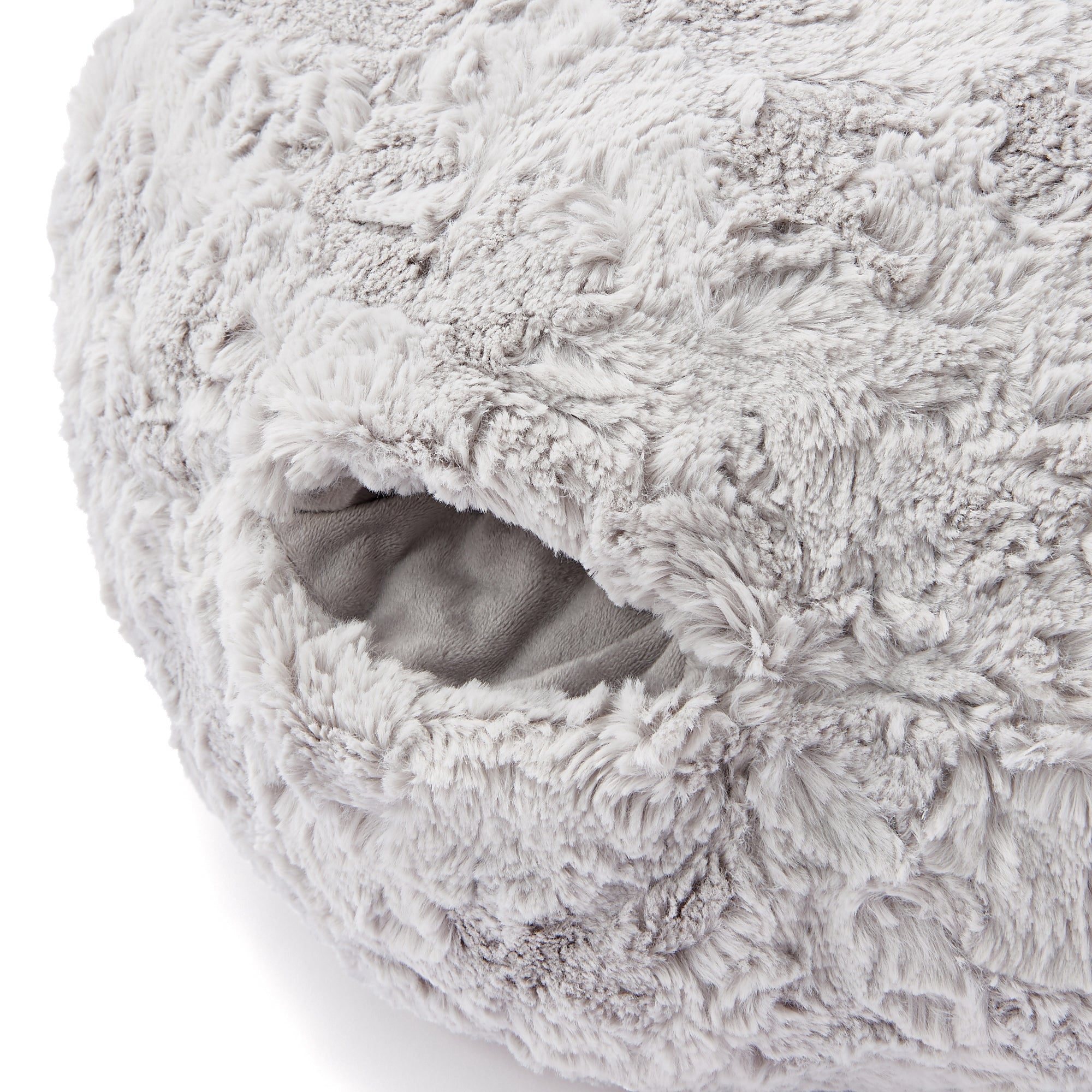 手足を入れて温められる機能的なクッションです。 表面にファー生地、ポケット部分にはマイクロファイバー生地を使用してふわふわとした触感をお楽しみいただける仕上がりに。 左右両側にポケット、中央に足や湯たんぽを入れられるジッパー付のポケットが付いています。 動きのあるふわふわとしたファーが冬のインテリアをぬくもりたっぷり華やかに演出します。