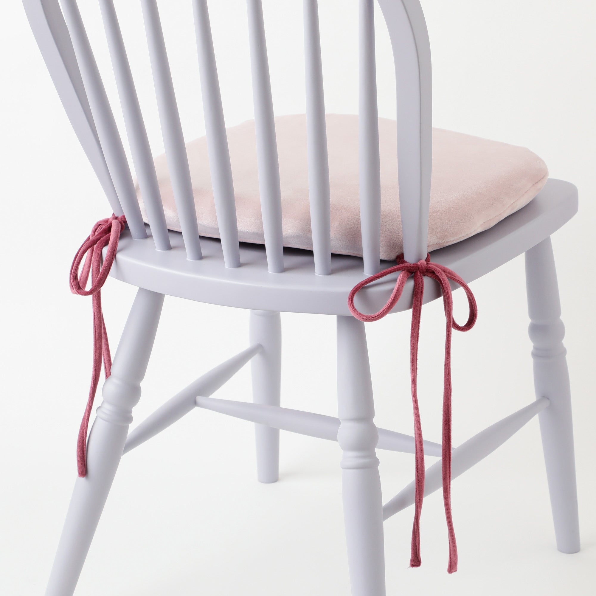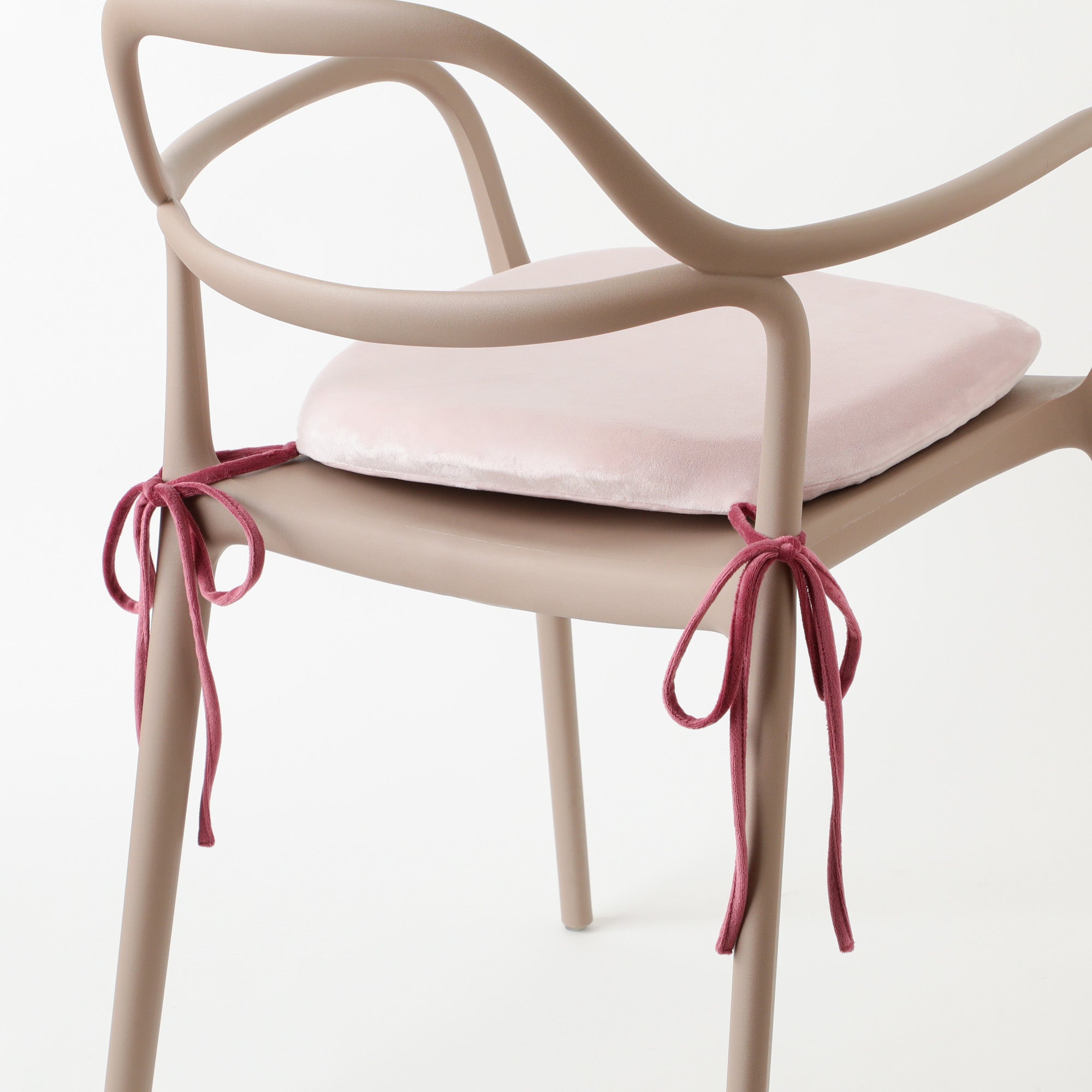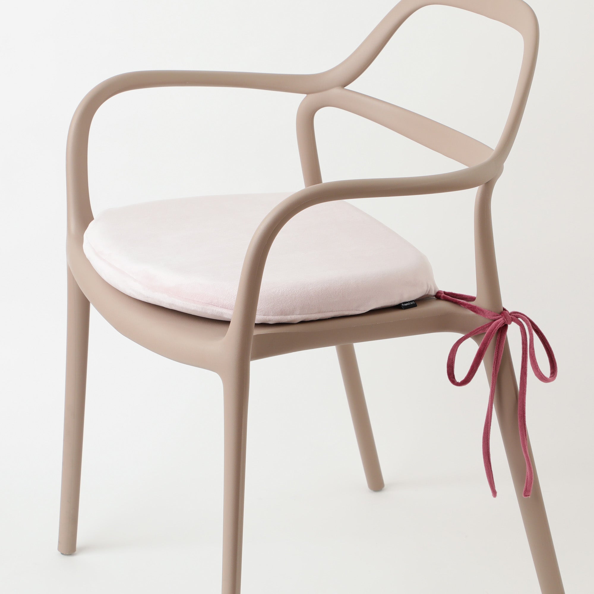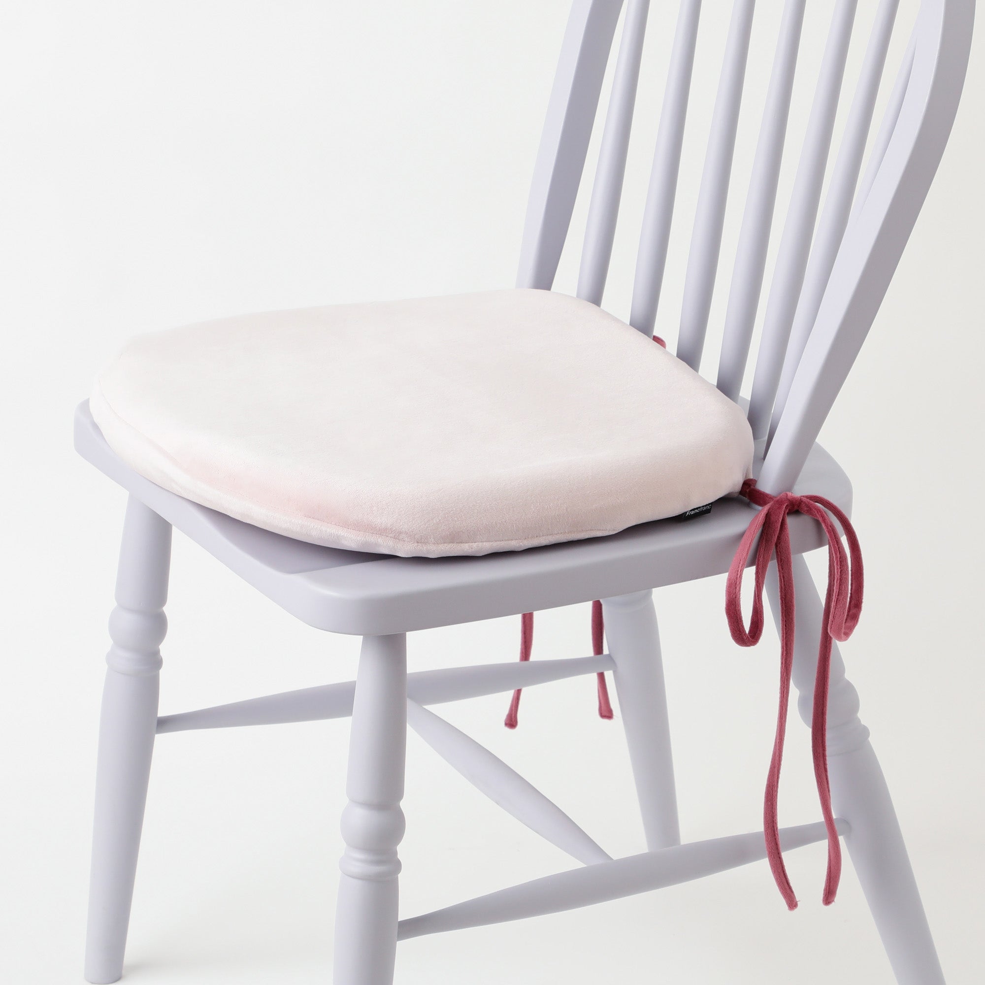 椅子用の低反発シートクッションですクッションを椅子の背もたれに結び付けるリボンが付いているので、椅子とクッションがずれることなく快適に使用できます。ほっそりとした繊細なリボンを長めにデザインして、どんな背もたれにも結びやすく仕上げました。
