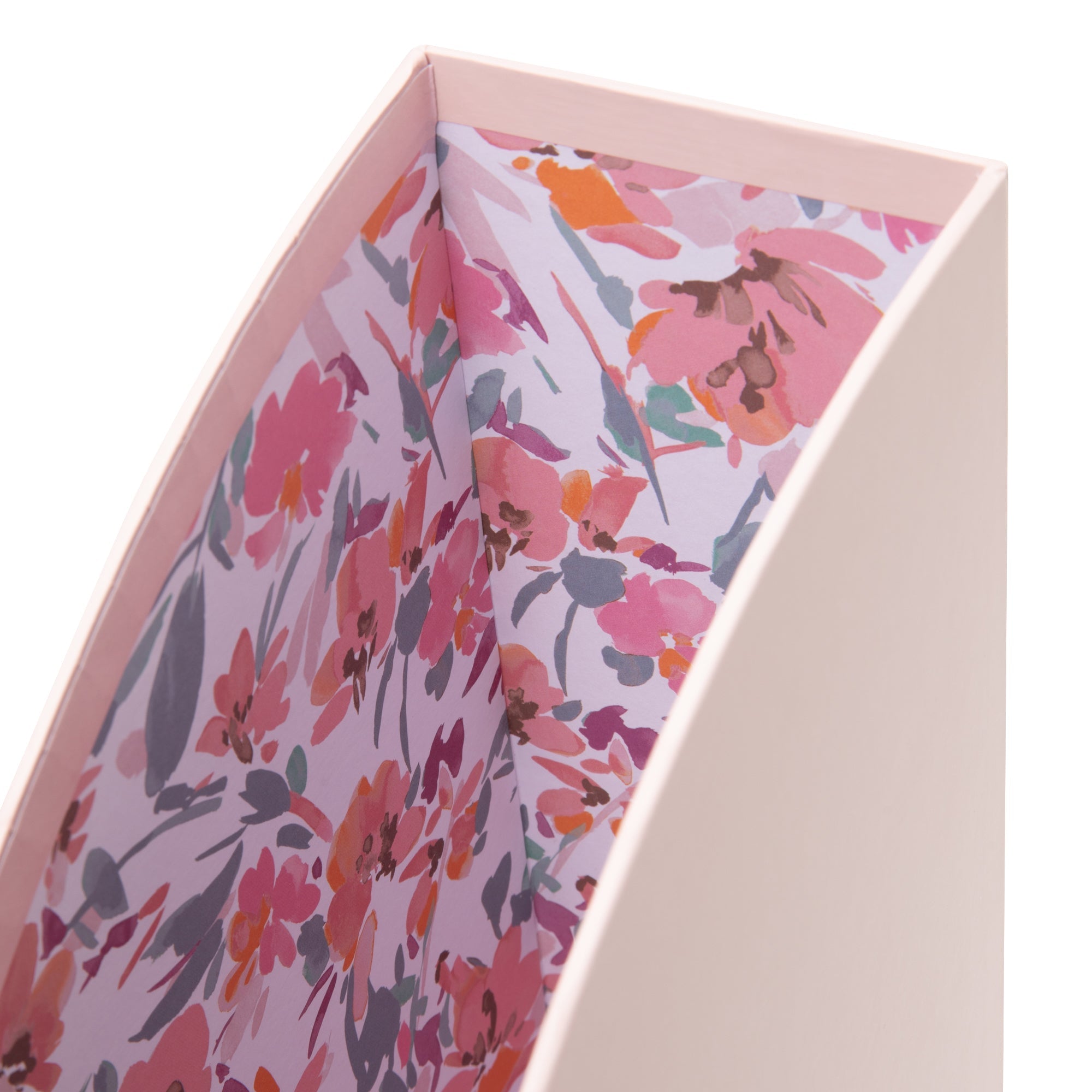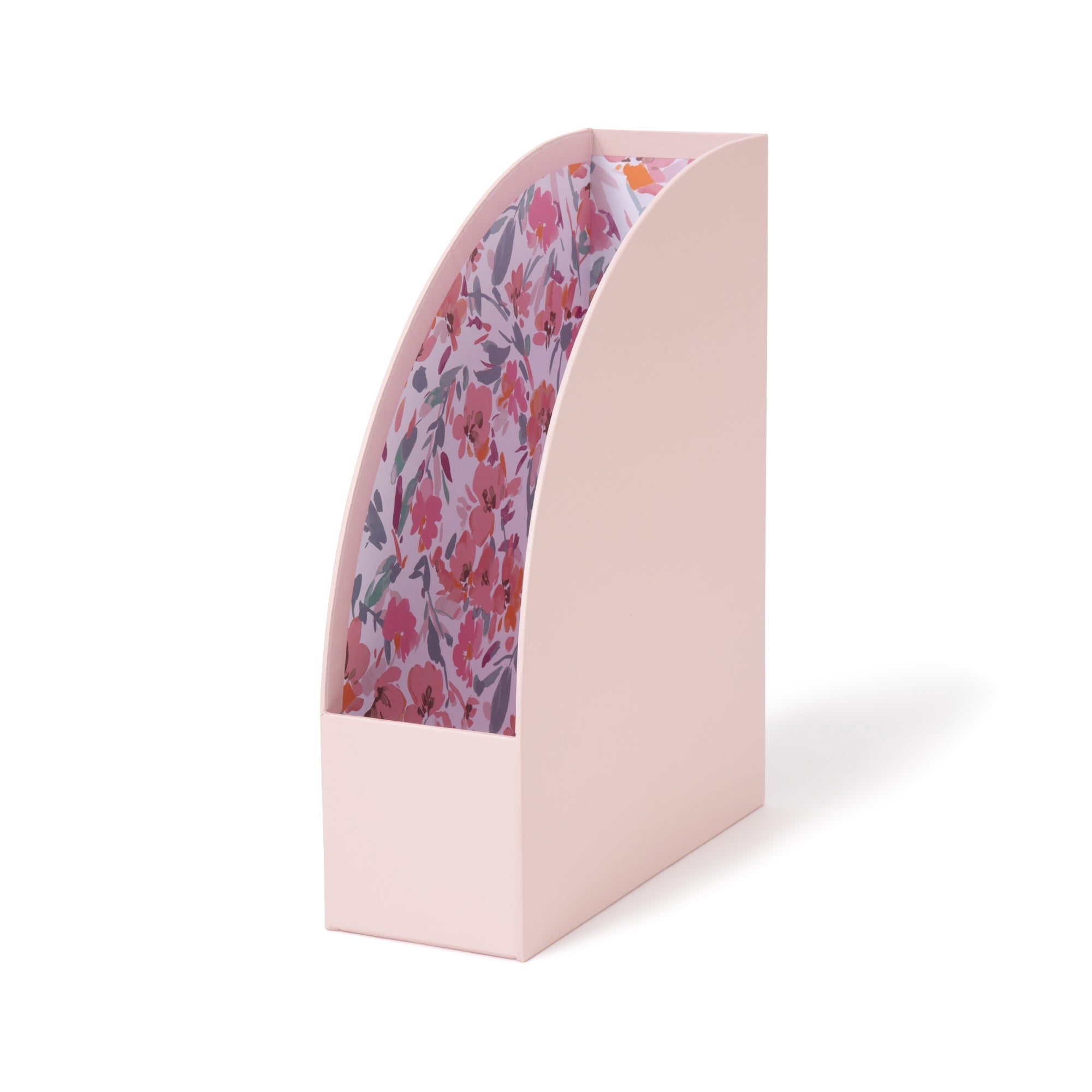 鮮やかな花柄が気持ちを明るくしてくれるマガジンホルダーです。A4サイズの書類やファイルが収納いただけます。カーブを描いたフォルムがフェミニンでかわいいアイテム。フロレシアシリーズには他にもステーショナリーBOXやティッシュボックスがあり組み合わせてお使いいただけます。・ティッシュボックス:横幅と同じサイズで、ティッシュボックスの奥行きは少し余ります。・ステーショナリーBOX:奥行きと同じサイズで横に2つ並べられます。そろえてお使いいただくと統一感がでて、デスク周りが華やかになり快適にお過ごしいただけます。