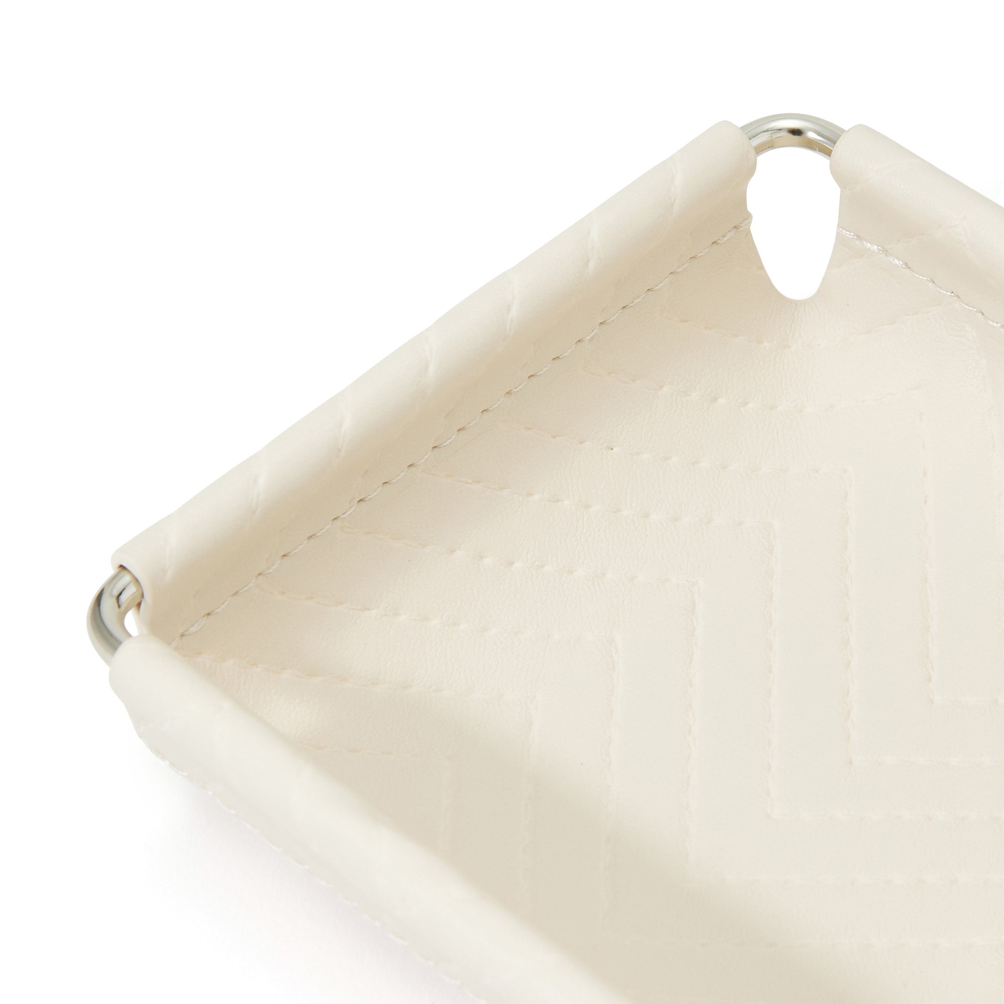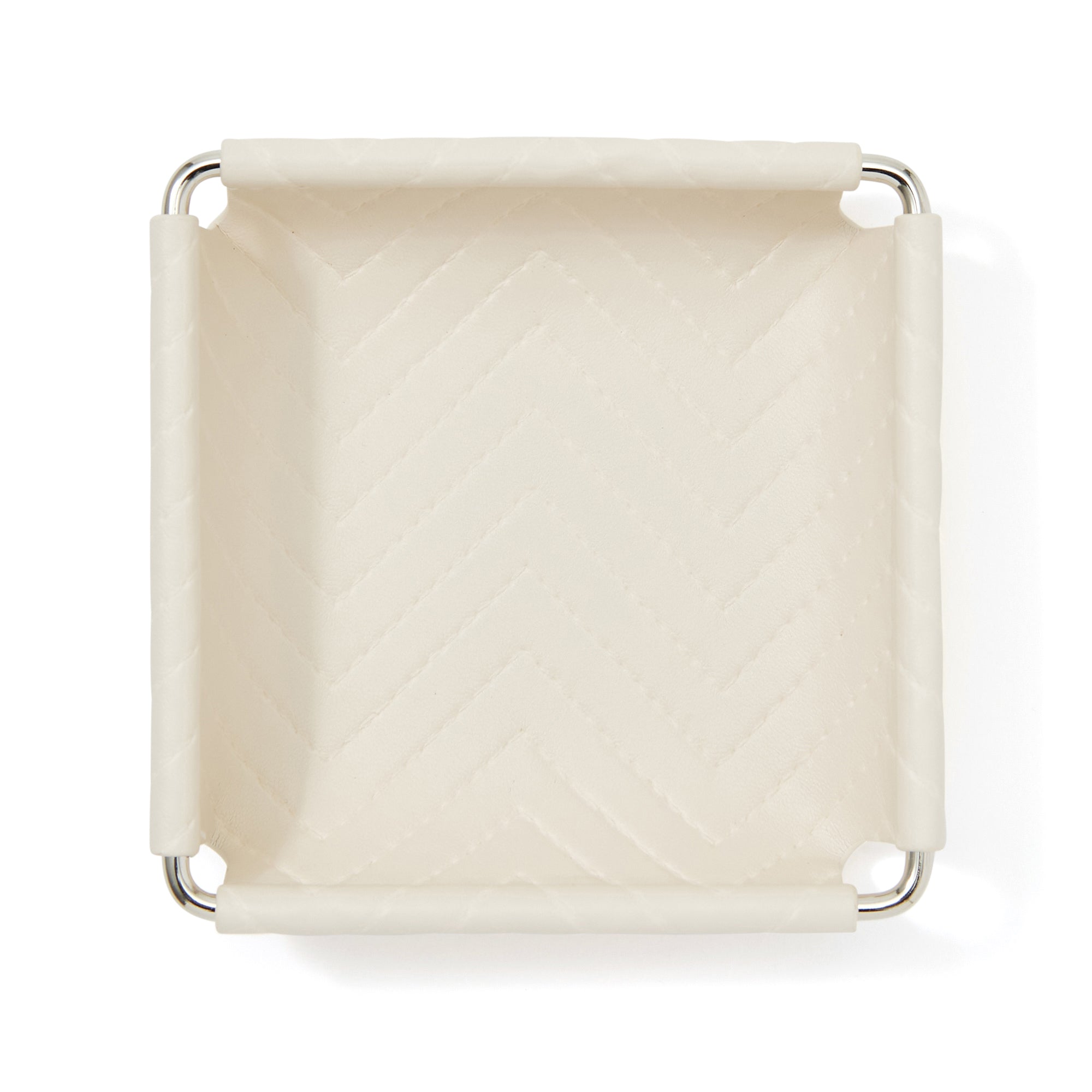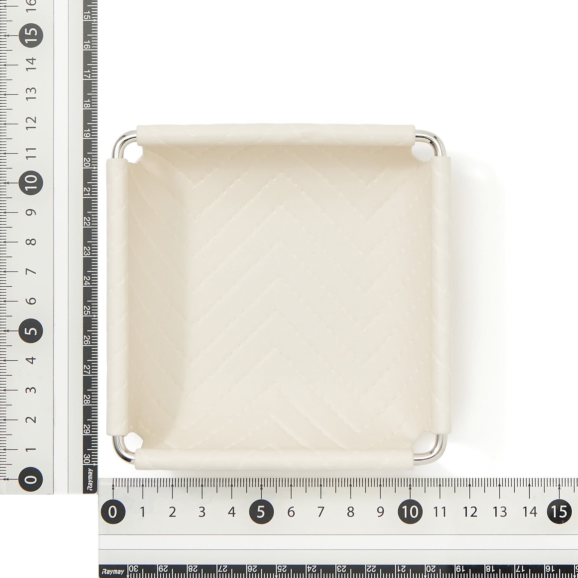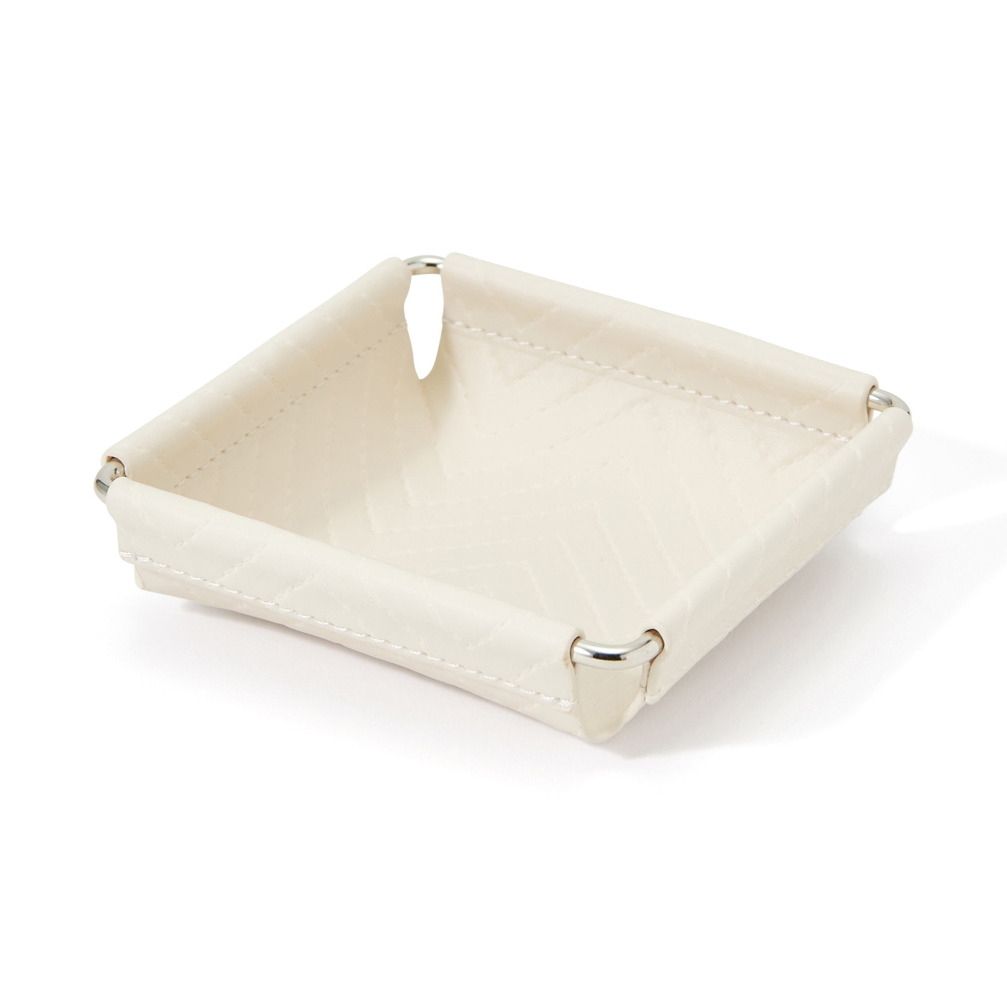 上品な合皮と金具を組み合わせた、高級感のあるトレイです。腕時計やデスク周りの小物置き、お気に入りのコスメやアクセサリーを入れていただくのにも適したサイズ。関に置いて鍵の定位置にするのもおすすめです。