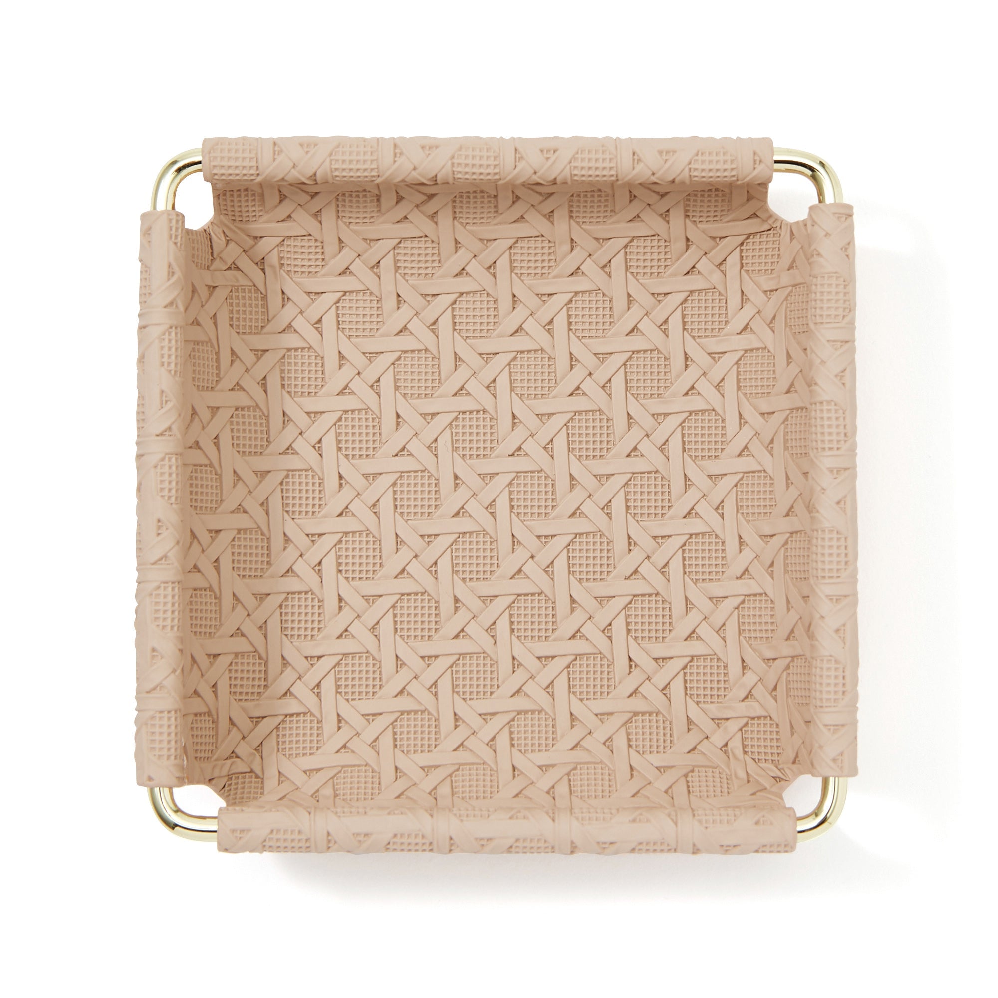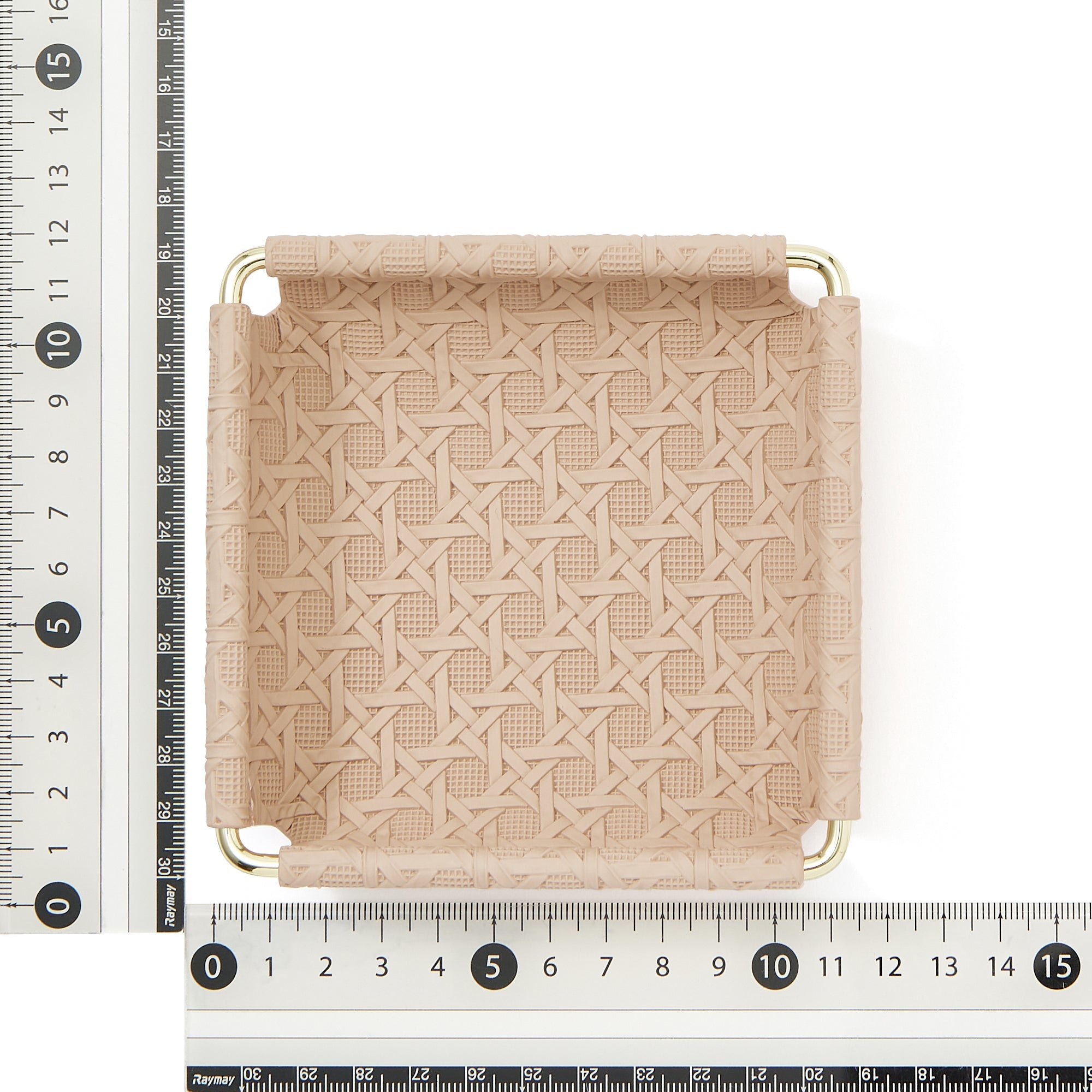 上品な合皮と金具を組み合わせた、高級感のあるトレイです。腕時計やデスク周りの小物置き、お気に入りのコスメやアクセサリーを入れていただくのにも適したサイズ。玄関に置いて鍵の定位置にするのもおすすめです。