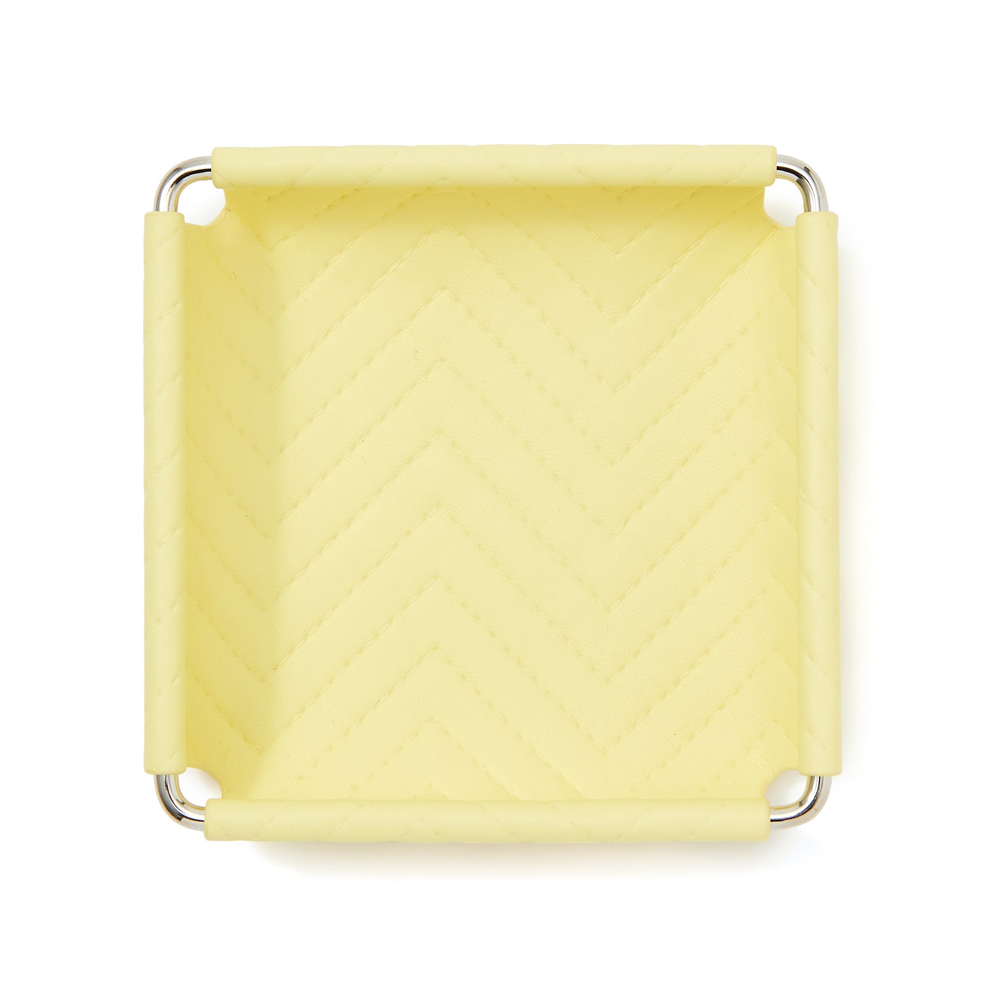 上品な合皮と金具を組み合わせた、高級感のあるトレイです。腕時計やデスク周りの小物置き、お気に入りのコスメやアクセサリーを入れていただくのにも適したサイズ。関に置いて鍵の定位置にするのもおすすめです。
