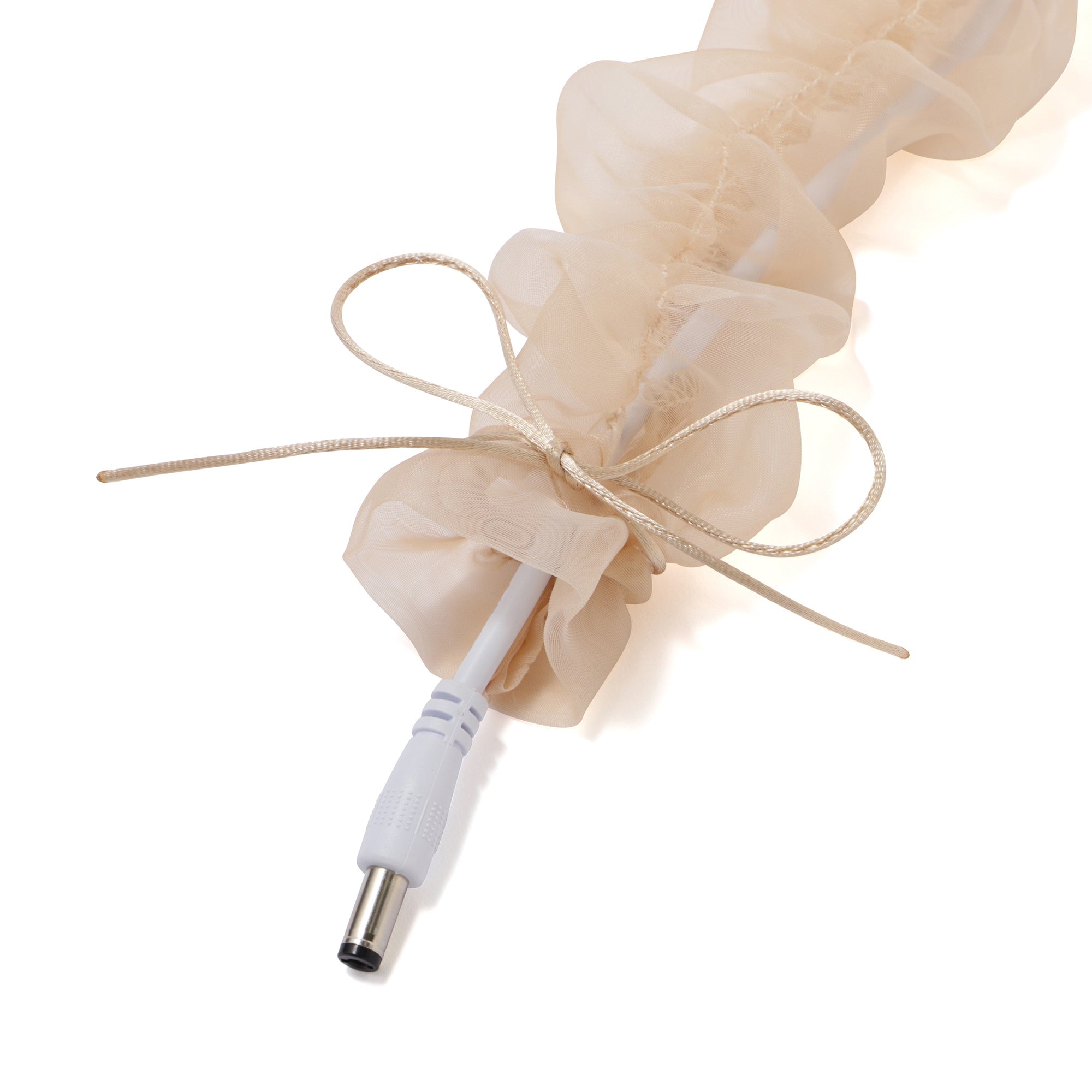 電気コードをかわいく隠すことができるコードジュエリーです。コードが通ればどんなコードにでも使用可能。たっぷりギャザーがよってるので、最長1.8mのコードに対応できます。