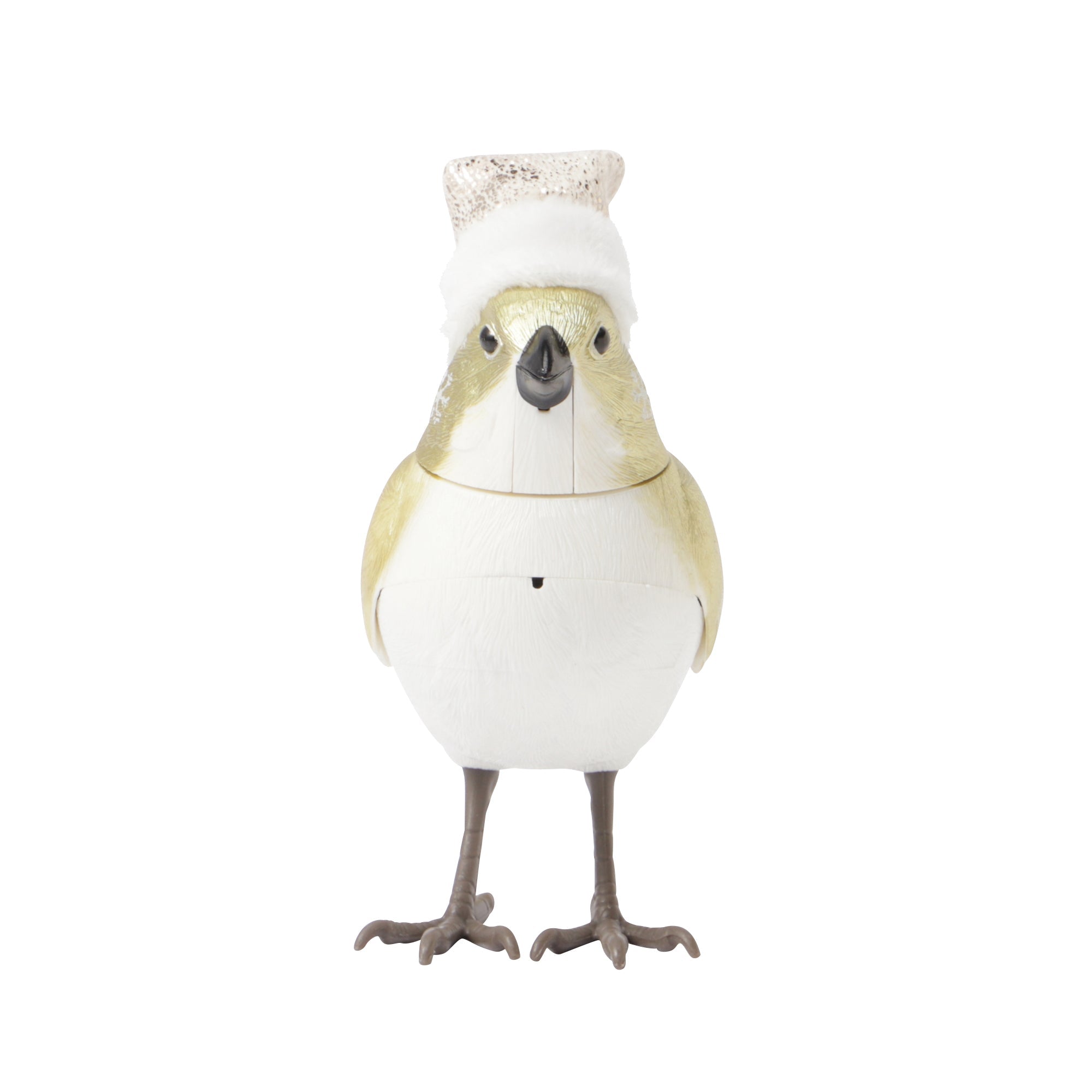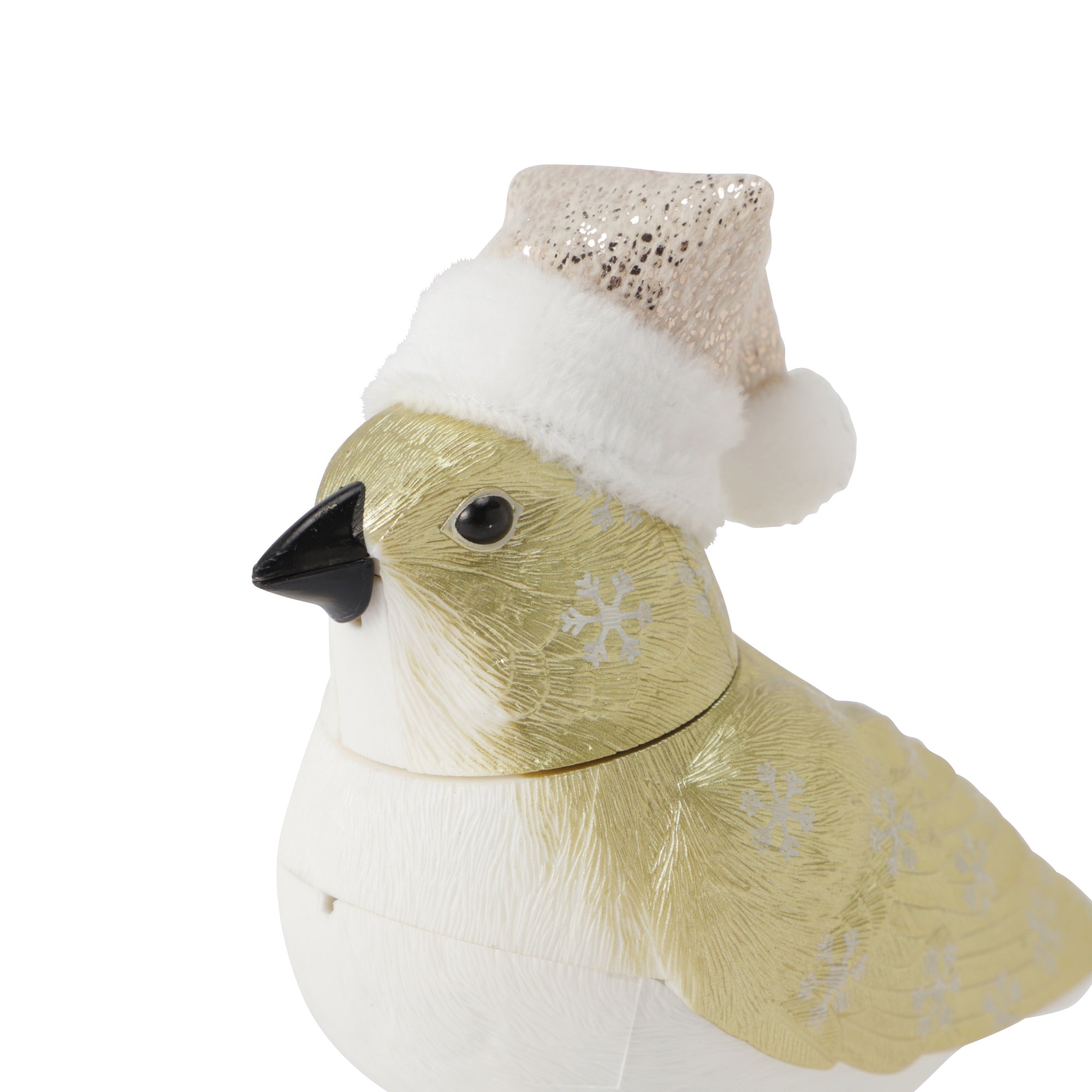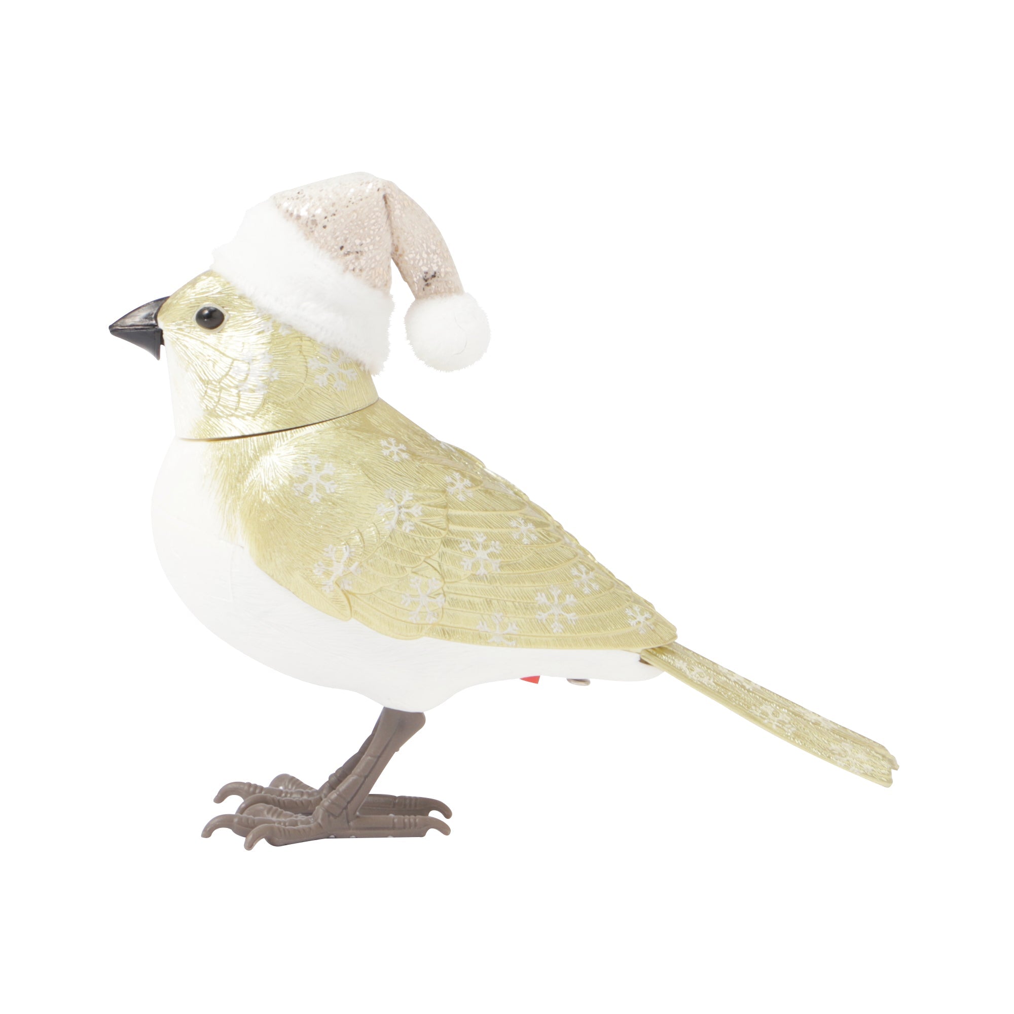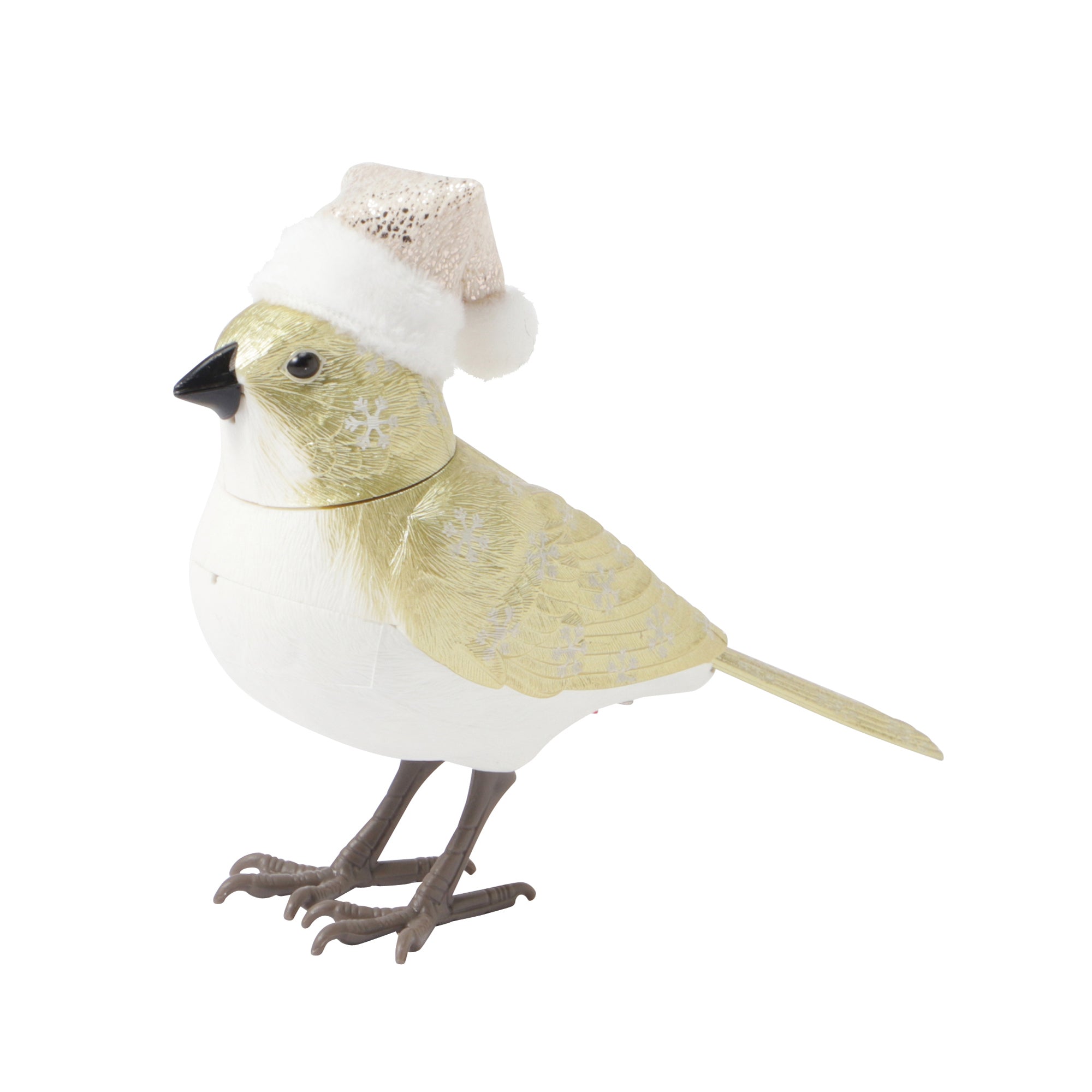 人気のミュージックバードのクリスマス限定バージョンです。 人感センサーが反応して鳥がさえずり、首が動きます。 輝くゴールドカラーのボディに雪の結晶柄をあしらい、サンタの帽子をかぶったスペシャル感たっぷりのデザイン。オブジェとしてデスクに飾ったり、クリップを使ってお好きな場所にとめたり、自由な楽しみ方ができるアイテムです。 クリスマスにちなんだ歌を6曲収録しました。 ■収録曲(全6曲、順不同) 1.ジングルベル 2.We Wish You A Merry Christmas 3.サンタが街にやってくる 4.winter wonderland 5.赤鼻のトナカイ 6.Joy to the World