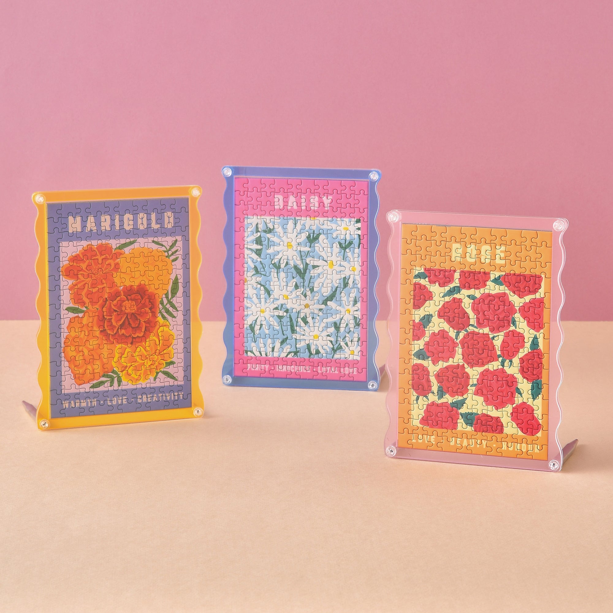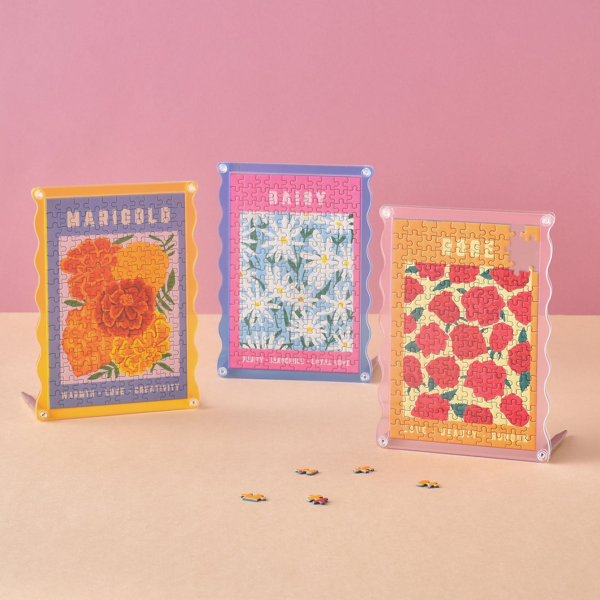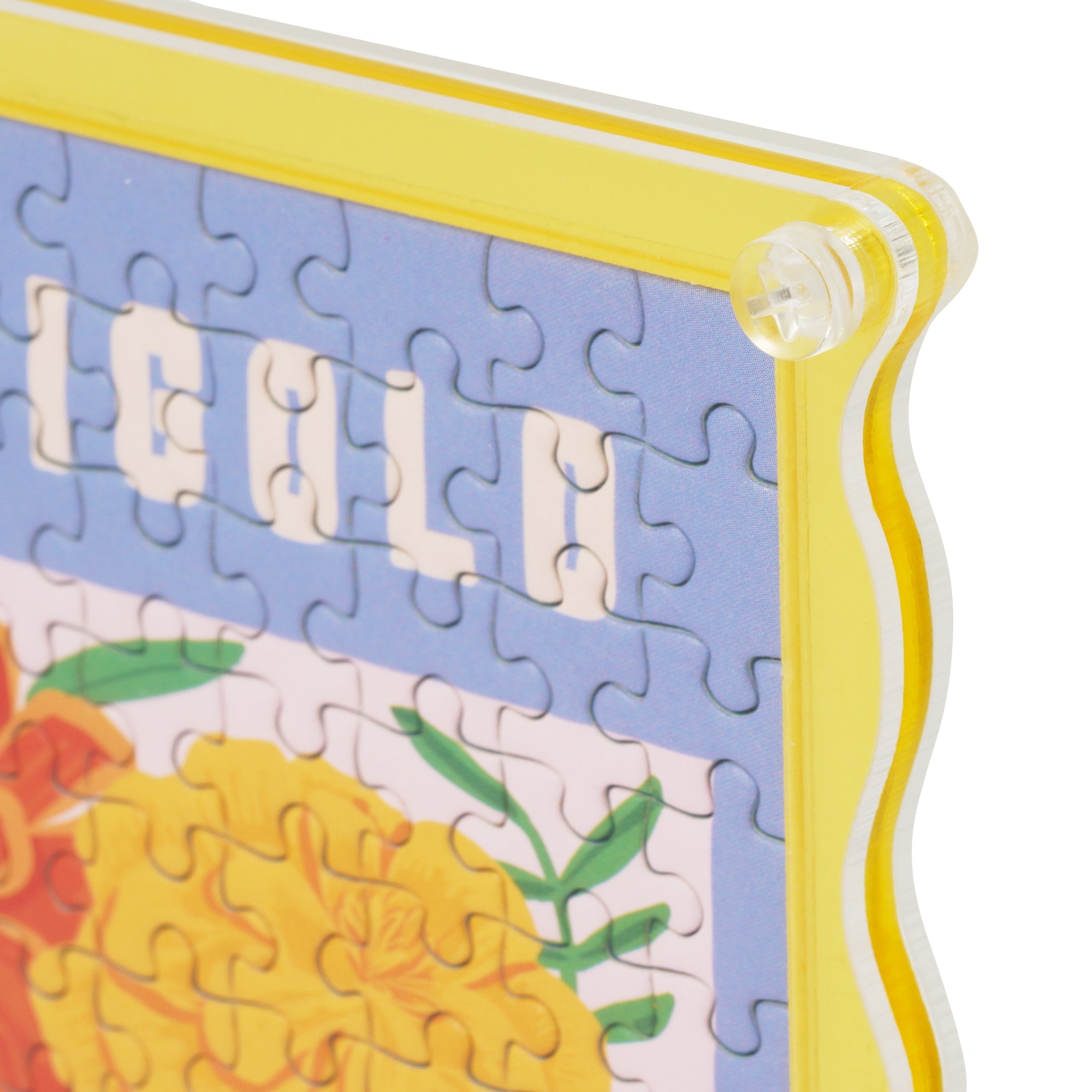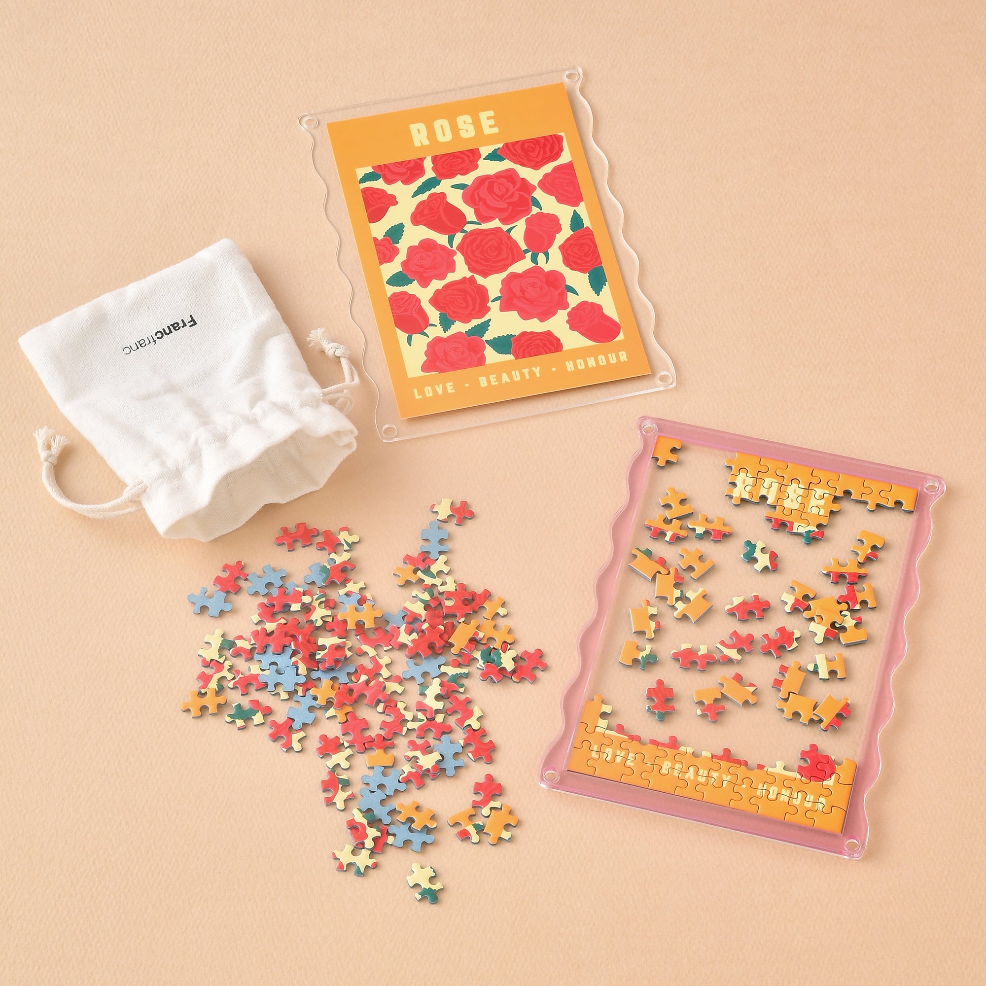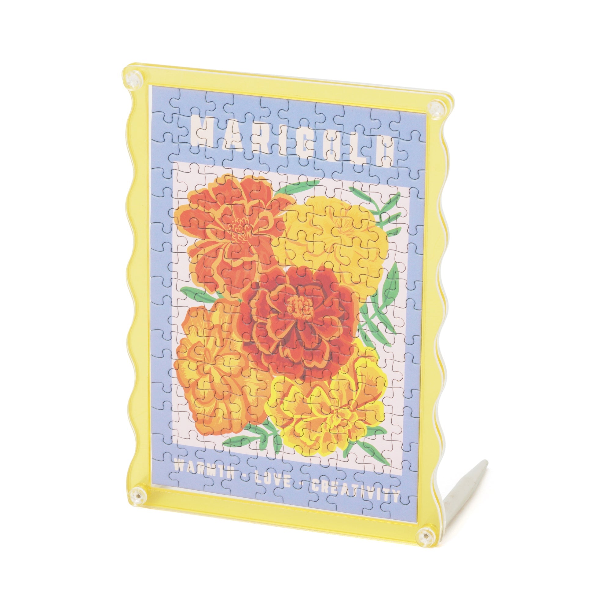 遊んで飾れるパズルとフレームのセットです。温かみのあるタッチで花を描いた150ピースのパズル。楽しく組み立てた後はアクリルフレームに入れて飾ることができます。トレンド感あふれる鮮やかなカラーリングが空間に彩りを与えます。ユニークなギフトとしてもおすすめです。