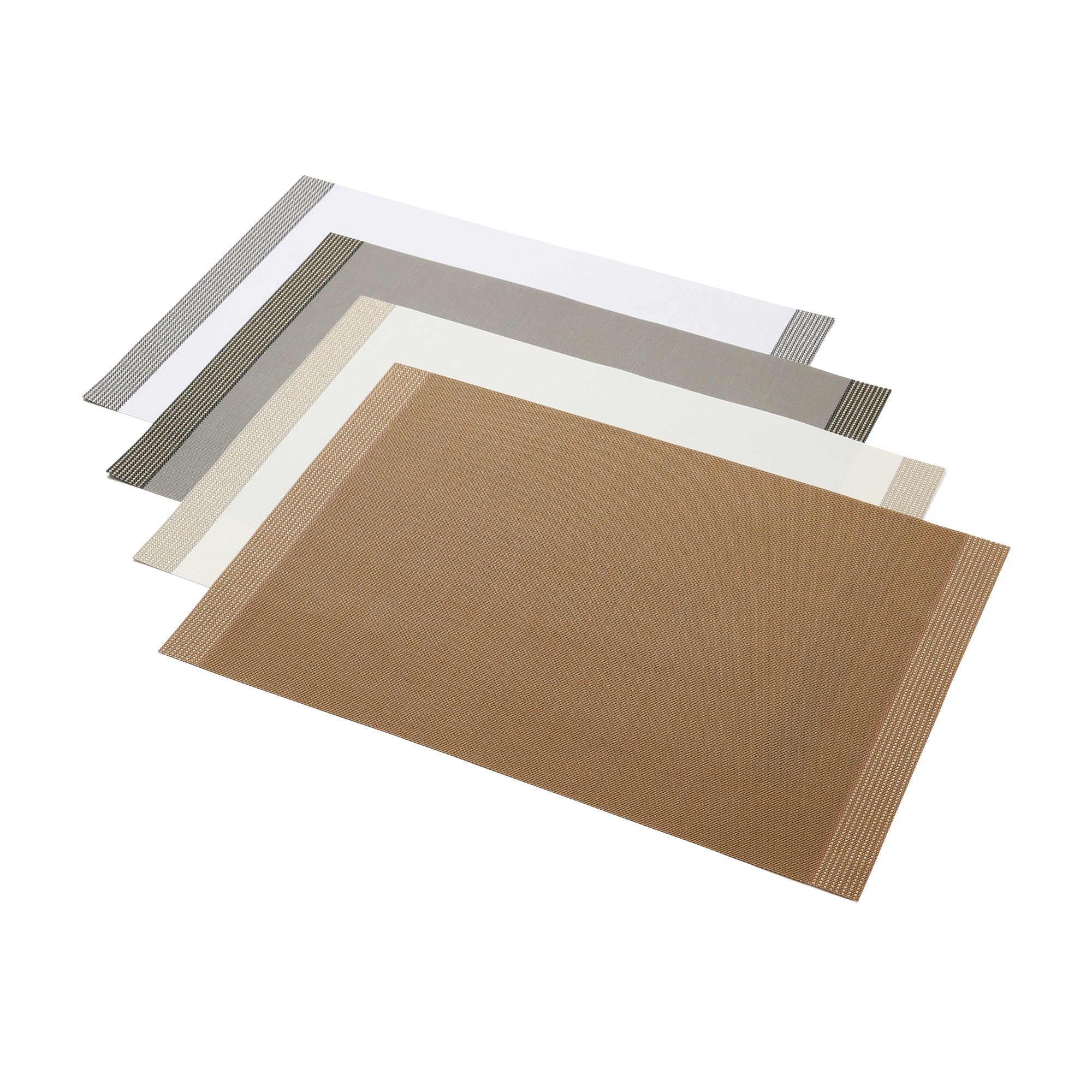 落ち着いた色味で大人っぽく上品なランチマットです。大事なゲストをおもてなしするときにぴったりです。シンプルなデザインなので、食事や食器も引き立たせます。またランチョンマットはテーブルのコーディネートだけでなくテーブルの傷や汚れから保護するのにも役立ちます。柔軟な素材で撥水性があり、使用後はさっと拭き取るだけでなのでお手入れも簡単です。洗濯はできませんが、水洗いができてカビも生えにくいので清潔に保つことができます。使用しないときは、くるくると巻いて簡単に保管することができます。シンプルなデザインながら織り込んだメタリック糸で光沢があり、華やかなデザインのアクセントとなっています。