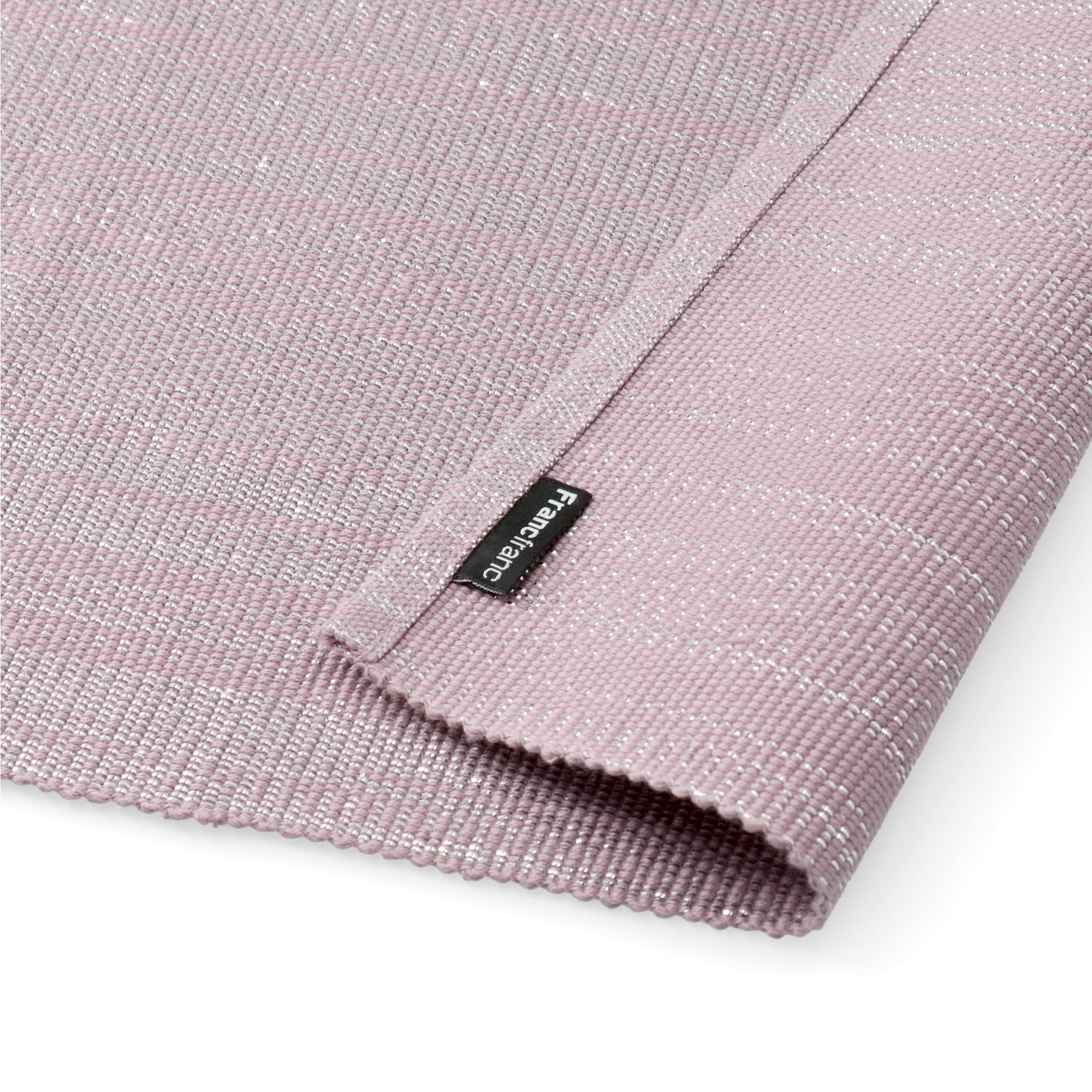 ラメ入りのシンプルなランチマットです。落ち着いたカラーリングに上品な輝きを添えて、どんな食器とも合わせやすいすっきりとしたデザインに仕上げました。メインの素材はコットンなので柔らかく、折りたたんで保管できます。持ち運んで使用するときにも便利です。手洗いができるので、衛生面的にも安心して繰り返し使うことができます。さりげなくFrancfrancのロゴが入っているのもポイントです。キラキラが派手すぎないので大人っぽいく、さっと敷くだけでテーブルコーディネートが華やぐ一枚です。