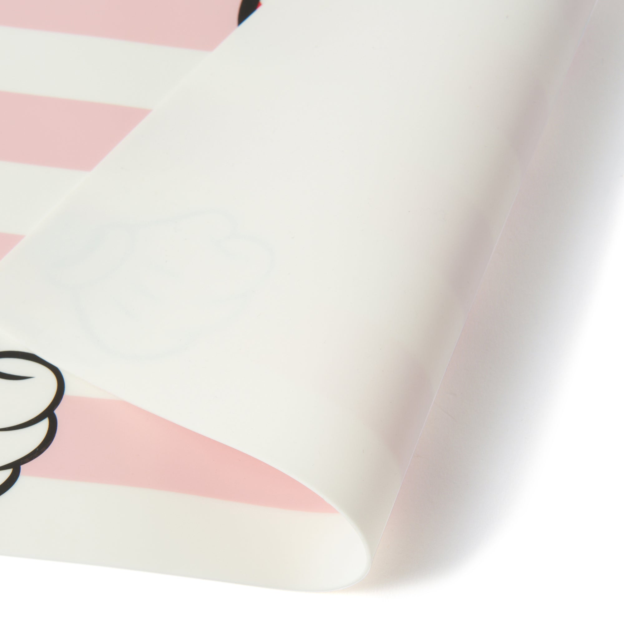 使い勝手がいいシリコン製のランチマットです。ディズニー ミッキー メラミンセパレートプレートを置くとリボンがついたように見えてキュートです。素材がシリコンなので、食器を置いてもすべりにくく、汚れても丸洗いできて便利。お子様とのお食事の時間も楽しくなります。