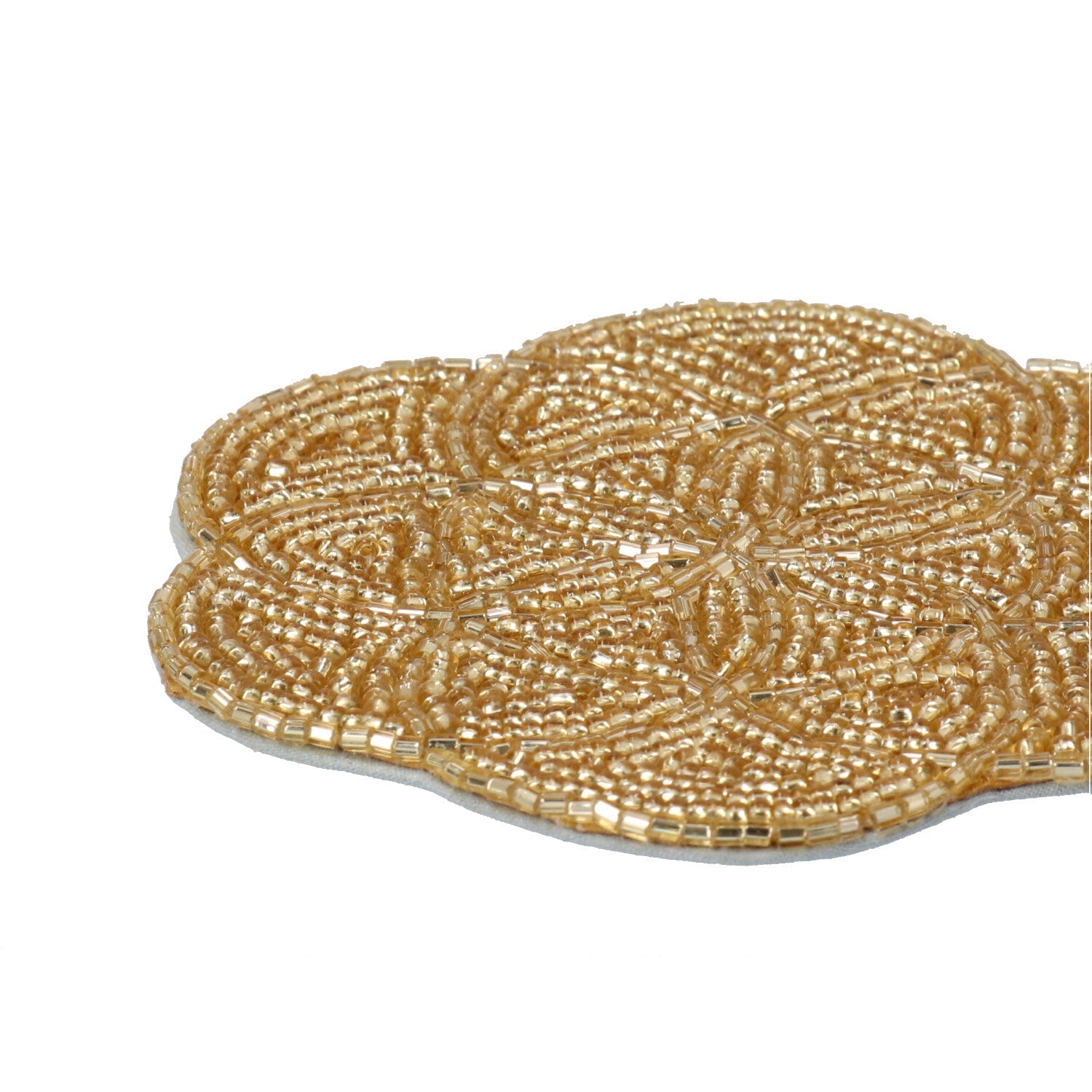 キラキラ輝くビーズのローズモチーフがフェミニンなコースターです。ティータイムを華やかに彩ってくれます。